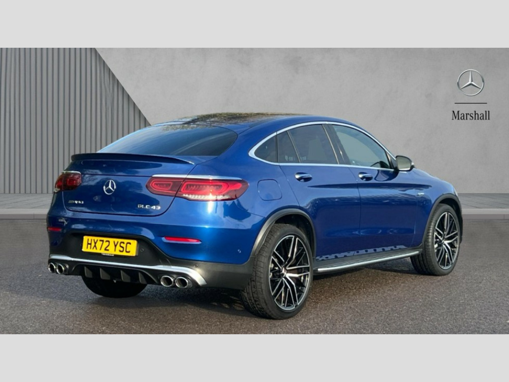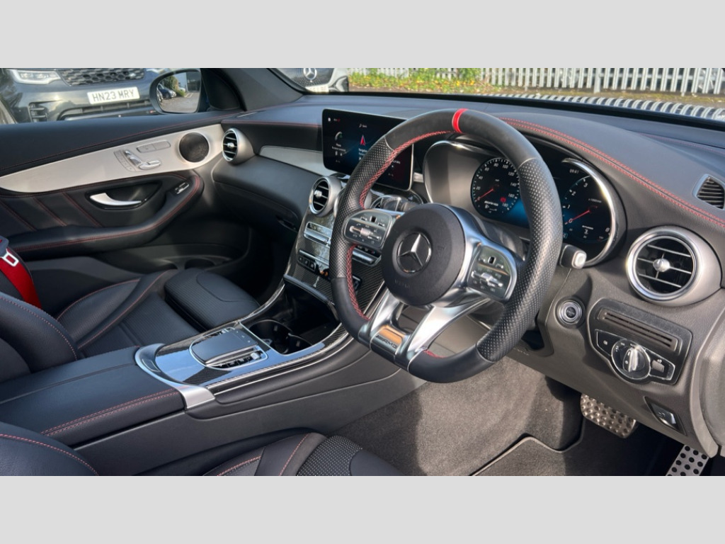 Mercedes-Benz Glc Coupe GLC 43 4Matic Premium plus 5dr TCT 360 degree camera, Active parking assist with parktronic system, Attention assist, Bluetooth interface for hands free telephone, Collision prevention assist plus, Cruise control with speedtronic variable speed limiter, Direct steer speed sensitive steering, DYNAMIC SELECT with a choice of driving modes (ECO, Comfort, Sport, Sport+ and Individual), Easy pack automatic powered tailgate, eCall emergency call system, ECO start/stop function, Hard disk navigation, Hey Mercedes Voice activation, Instrument cluster with12.3-inch digital instrument cluster display. High resolution instrument cluster screen with choice of three display styles, MBUX Interior assistant, Mercedes connect me with remote online services, Multi function trip computer, Outside temperature display, rear seatbelt status indicator, Remote boot release, Service indicator (ASSYST), Smartphone integration with Apple CarPlay and Android auto, Traffic sign assist, 66 litre fuel tank, AMG electronic rear axle limited slip differential lock, AMG performance 4MATIC+, AMG ride control air suspension for front and rear axles with continuously adjustable damping, AMG SPEEDSHIFT TCT 9G 9-speed automatic transmission with steering column gear selector, DIRECT SELECT steering wheel gearshift paddles, Petrol Particulate Filter (PPF), Advanced sound system, MBUX multimedia system with DAB digital radio and touchpad, Media display 10.25-inch touchscreen display, Pre installation for Mercedes Benz Link, USB ports x 2 in centre console, Adaptive brake lights, Adaptive high beam assist, AMG bodystyling front apron in jet wing design with silver chrome front splitter, AMG bodystyling with 2 black louvres in outer air intakes, AMG bodystyling with rear apron and diffuser fins, AMG bodystyling with side sill panels, AMG Performance exhaust, AMG radiator grille with black vertical louvres and trim strip in high gloss chrome, AMG spoiler lip, Body colour door mirrors, Body coloured bumpers, Electric sliding glass sunroof, Electric windows one touch open/close, Electrically adjustable and heated door mirrors, Front, side and rear exterior chrome trim, Headlamp assist automatic headlamp activation, High level LED brake light, LED high performance headlamps with integrated LED daytime running lights, LED tail lamp, Motor way mode function and locator lighting, Privacy glass with dark glass from B pillar backwards, Rain sensor windscreen wipers, Range adjustable headlights, Rear side wing doors, Rear wiper, Roof spoiler, Running boards, Tinted glass all round with single layer safety glass, Tinted rear windows, Two chrome plated tailpipe trim elements, Variable front intermittent wipers, 2 way rear head restraints, 3 seat bench in 2nd row, 40:20:40 split folding rear seats, Ambient lighting, AMG floor mats with edging and embroidered AMG lettering, AMG illuminated door sills, AMG sports seats, Artico man-made leather upper dashboard with contrast topstitching, Automatic child seat recognition sensor, Black roof lining, Dividing net - rear, Double cup holder in centre console, Easy-pack removable load compartment cover, Electric height/reach adjustable steering column, Flat bottomed multifunction sports steering wheel in black nappa leather, embossed in central grip, with silver chrome steering with red topstitching, Front armrest with storage box, Front door sills with Mercedes Benz lettering, Front head restraints, Front passenger seat, Heated front seats, Heated steering wheel, Illuminated and lockable glove compartment, Leather upholstery, Rear top tether child seat ISOFIX attachment, Sports pedals with stainless steel surfaces and rubber studs, Steering wheel with touch control buttons, THERMOTRONIC 3 zone automatic climate control, Interior lighting pack - GLC, Memory pack - GLC, Mirror pack - GLC, Storage pack - GLC, 3 rear 3 point seatbelts, Active bonnet, Adaptive brake system with HOLD function and brake drying in the wet, ASR, Brake calipers with Mercedes-Benz lettering + perforated brake discs, Child proof door locks, Dual-stage airbags - driver and front passenger, driver knee bag and window bags for driver, front passenger and rear passengers, Electronic parking brake, Electronic stability programme (ESP) with curve dynamic assist and cross wind assist, Front and rear seatbelt reminder, Front passenger seat occupancy sensor, Hill hold function, MANUFAKTUR seat belts in red, Tyre pressure monitoring system, Warning triangle and first aid kit, Alarm system/interior protection/immobiliser, Automatic door locking, Keyless Go entry and starting function, Remote central locking, AMG carbon-fibre with light longitudinal grain aluminium trim, 21" AMG 5 twin spoke design alloy wheels painted in black with high sheen finish, Summer tyres, Tirefit tyre sealant kit