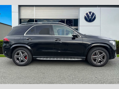 Have a look at this Mercedes-Benz GLE300d that is now available to purchase at Wrexham Volkswagen. This Mercedes is powered by a 2.0L diesel engine that produces 242 BHP with automatic transmission and 4MATIC all wheel drive. The exterior, which is finished in a lovely black paintwork, has a range of features on offer. To the front of the vehicle you'll find the LED High Performance headlights that provide exceptional visibility, and to the side the rear tinted windows for passenger privacy, running boards, and 20in AMG 5-Twin-Spoke alloy wheels. For added convenience this Mercedes also features a set of roof rails, electric tailgate, and parking sensors that assist with maneuvering alongside the area view cameras.