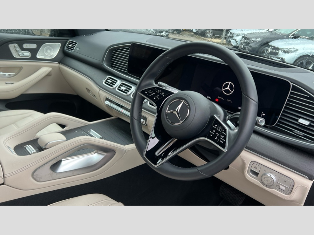Mercedes-Benz GLE GLE 300d 4Matic AMG Line Prem 5dr 9G-Tronic [7 St] 12.3 High resolution wide screen cockpit display with choice of three display styles Classic, Progressive or Sport and unique ambient lighting setting, 360 degree view camera, Active parking assist with PARKTRONIC, Attention assist, Brake wear warning display, Direct steer speed sensitive steering, DYNAMIC SELECT with a choice of driving modes (ECO, Comfort, Sport and Individual), Easy-pack tailgate - Powered opening/closing automatically, ECO start/stop function, Hard-disk navigation, Head up Display, MBUX augmented reality for navigation, MBUX voice control activated by keywords "Hey Mercedes", Mercedes Benz emergency call system, Mercedes me connect - vehicle set up and monitoring, Outside temperature display, Pre-installation for digital key transfer, Service indicator (ASSYST), Status display for rear seat belts in instrument cluster, Traffic sign assist, Trip computer in multifunction display showing current fuel consumption, Wireless charging, Wireless smartphone integration including Apple CarPlay and Android auto, 48V Technology, 4MATIC all wheel drive system for all weather traction, 85 litre fuel tank, 9G TRONIC 9 speed automatic transmission, Airmatic air suspension with adaptive damping system, Diesel particulate filter (DPF), Mild Hybrid starter alternator, Additional USB connection, Bluetooth interface for hands free and audio streaming, Burmester surround sound system, DAB digital radio tuner, Front and rear USB ports, Sound personalisation, Adaptive brake lights, Aluminium look, illuminated running boards with rubber studs, AMG bodystyling front and rear aprons and side skirts in polished aluminium, AMG Line exterior, Auto headlights, Automatically dimming rear view mirror and driver's exterior mirror, Beltlline in polished aluminium, Body colour door mirrors, Body coloured bumpers, Bright trim elements, Electric windows with one touch opening/closing and obstruction sensors, Electrically adjustable, heated, folding exterior mirrors, Exterior styling - front bumper, radiator grille and front air intakes, Heat insulating privacy glass, Heated windscreen washers, LED 3rd brake light, LED daytime running light signet, LED rear lights, Magic vision control, Multibeam LED headlights with adaptive highbeam assist plus, Panoramic sliding sunroof, Radiator grille with integrated star and single louvre in matt iridium silver with chrome trim, Radio aerial integrated into rear window, Rain sensing windscreen wipers, Rear side wing doors, Rear wiper, Roof rail system, Roof rails in polished aluminium, Transparent Bonnet, Visible twin pipe exhaust system integrated into bumper, Window surround in polished aluminium, 3 seat bench in 2nd row, 3 spoke round bottomed multifunction steering wheel in nappa leather, 3rd row of seats for 2 people, 4 way adjustable front head restraints, 4 way lumbar support for driver and front passenger, 40:20:40 split folding rear seats, AMG line interior, Black fabric roof liner, Dividing net for luggage compartment partitioning and occupant protection, Electric height/reach adjustable steering column, Electrically adjustable front seats with memory function, Front centre armrest with stowage compartment and illuminated grab handles, Gearshift paddles on steering wheel, Glove compartment - lockable, air conditioned and illuminated, Heated front seats, Heated steering wheel, Illuminated front door sill with Mercedes Benz lettering, Illuminated vanity mirrors, Interior lighting - 64 colour Ambient lighting, Leather upholstery, Luggage compartment cover, Luxury AVANTGARDE Interior, Seat occupancy sensor for front passenger seat, Single front passenger seat, Steering column gear selector, Sunvisors, Thermotronic automatic 4 zone climate control, Touchpad, Velour floor mats, Exclusive Trim package - GLE, Keyless go comfort package - GLE, Active bonnet, Anti-lock braking system (ABS), Black seat belts, Childproof locks manually operated for rear doors and electrically operated for rear power windows, Drivers knee airbag, Dual stage airbags - driver and front passenger, sidebag, and front and rear window airbags, Electronic parking brake, Electronic stability programme (ESP) with curve dynamic assist and cross wind assist, First aid kit, warning triangle and high visibility jacket, ISOFIX child seat points with automatic child seat recognition, Perforated front brake discs and brake calipers with Mercedes-Benz lettering, Pre-Safe anticipatory safety system, Three point rear seat belts, Tyre pressure monitoring system, Alarm system/interior protection/immobiliser, Central locking with interior switch, automatic locking and crash sensor with emergency opening function, Chrome surround in electric key, Dashcam, Guard 360 degree vehicle protection plus, Anthracite open pore oak wood trim, Dashboard and door beltlines in ARTICO man made leather with contrast top stitching, 21" AMG multi spoke light alloy wheels painted in himalayas grey with a high sheen finish, TIREFIT with tyre inflation compressor