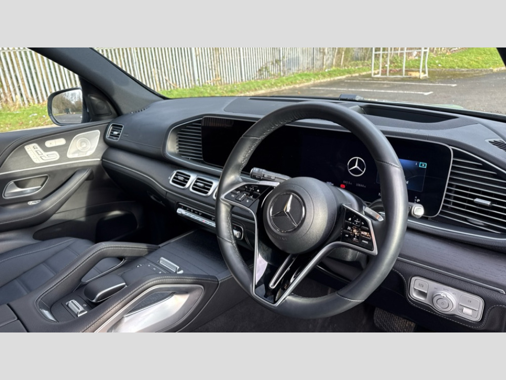 Mercedes-Benz GLE GLE 400e 4Matic AMG Line Premium 5dr 9G-Tronic 12.3 High resolution wide screen cockpit display with choice of three display styles Classic, Progressive or Sport and unique ambient lighting setting, 360 degree view camera, Acoustic presence indicator, Active parking assist with PARKTRONIC, Attention assist, Brake wear warning display, Direct steer speed sensitive steering, DYNAMIC SELECT with a choice of driving modes (ECO, Comfort, Sport and Individual), Easy-pack tailgate - Powered opening/closing automatically, ECO start/stop function, Hard-disk navigation, Head up Display, MBUX voice control activated by keywords "Hey Mercedes", Mercedes Benz emergency call system, Mercedes me connect - vehicle set up and monitoring, Outside temperature display, Pre-installation for digital key transfer, Remote boot release, Service indicator (ASSYST), Status display for rear seat belts in instrument cluster, Traffic sign assist, Trip computer in multifunction display showing current fuel consumption, Wireless charging, Wireless smartphone integration including Apple CarPlay and Android auto, 65 litre fuel tank, 9G TRONIC 9 speed automatic transmission, AC charging, Airmatic air suspension with adaptive damping system, Charging cable for household socket, Charging cable for wallbox and public charging stations 8m straight, DC charging, Petrol Particulate Filter (PPF), Additional USB connection, Bluetooth interface for hands free and audio streaming, Burmester surround sound system, DAB digital radio tuner, Front and rear USB ports, Sound personalisation, Adaptive brake lights, Aluminium look, illuminated running boards with rubber studs, AMG bodystyling front and rear aprons, Auto headlights, Automatically dimming rear view mirror, Body colour door mirrors, Body coloured bumpers, Electric windows with one touch opening/closing and obstruction sensors, Electrically adjustable, heated, folding exterior mirrors, EQ badging, Exterior styling - front bumper, radiator grille and front air intakes, Heat insulating dark tinted glass, LED 3rd brake light, LED daytime running light signet, LED rear lights, Magic vision control, Multibeam LED headlights with adaptive highbeam assist plus, Panoramic sliding sunroof, Radio aerial integrated into rear window, Rain sensing windscreen wipers, Rear side wing doors, Rear wiper, Roof rail system, Top surround of side windows in polished aluminium, Transparent Bonnet, Visible twin pipe exhaust system integrated into bumper, Waistline in polished aluminium, 3 spoke round bottomed multifunction steering wheel in nappa leather, 4 way adjustable front head restraints and 2 way rear head restraints, 4 way lumbar support for driver and front passenger, 40:20:40 split folding rear seats, Automatic child seat recognition sensor, Electric height/reach adjustable steering column, Electrically adjustable front seats with memory function, Front centre armrest with stowage compartment and illuminated grab handles, Gearshift paddles on steering wheel, Glove compartment - lockable, air conditioned and illuminated, Heated front seats, Illuminated front door sill with Mercedes Benz lettering, Interior lighting - 64 colour Ambient lighting, Leather upholstery, Luggage compartment cover, Luxury AVANTGARDE Interior, Seat occupancy sensor for front passenger seat, Second row three seats, Single front passenger seat, Sunvisors with illuminated vanity mirrors, Thermotronic automatic 4 zone climate control, Touchpad, Velour floor mats, Exclusive Trim package - GLE, Keyless go comfort package - GLE, Active bonnet, Airbags - driver and front passenger, front sidebag, pelvis bag and window airbags, Anti-lock braking system (ABS), Black seat belts, Childproof locks manually operated for rear doors and electrically operated for rear power windows, Drivers knee airbag, Electronic parking brake, Electronic Stability Programme (ESP), ISOFIX child seat points with automatic child seat recognition, Perforated front brake discs and brake calipers with Mercedes-Benz lettering, Pre safe impulse side, Three point rear seat belts, Tyre pressure monitoring system, Warning triangle and first aid kit, Alarm system/interior protection/immobiliser, Central locking with interior switch, automatic locking and crash sensor with emergency opening function, Chrome surround in electric key, Guard 360 degree vehicle protection plus, Dashboard and door beltlines in ARTICO man made leather with contrast top stitching, Trim - Centre console, anthracite open pore oak wood trim, 21" AMG multi spoke light alloy wheels, TIREFIT with tyre inflation compressor