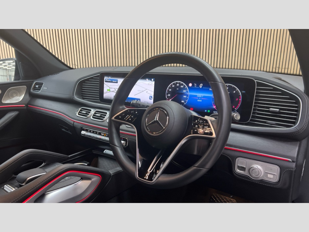 Mercedes-Benz GLE GLE 450d 4Matic AMG Line 5dr 9G-Tronic [7 Seat] 12.3 High resolution wide screen cockpit display with choice of three display styles Classic, Progressive or Sport and unique ambient lighting setting, 360 degree view camera, Active lane keeping assist, Active parking assist with PARKTRONIC, Attention assist, Blind spot assist, Brake wear warning display, Direct steer speed sensitive steering, DYNAMIC SELECT with a choice of driving modes (ECO, Comfort, Sport and Individual), Easy-pack tailgate - Powered opening/closing automatically, ECO start/stop function, Geofencing, Hard-disk navigation, MBUX augmented reality for navigation and live traffic, MBUX voice control activated by keywords "Hey Mercedes", Mercedes Benz emergency call system, Mercedes me connect - vehicle set up and monitoring, Outside temperature display, Pre-installation for digital key transfer, Remote boot release, Service indicator (ASSYST), Smartphone integration with Apple CarPlay and Android auto, Speedtronic cruise control with speed limiter, Status display for rear seat belts in instrument cluster, Traffic sign assist, Trip computer in multifunction display showing current fuel consumption, Wireless charging, 85 litre fuel tank, 9G TRONIC 9 speed automatic transmission, Airmatic air suspension with adaptive damping system, Diesel particulate filter (DPF), Mild Hybrid starter alternator, Additional USB connection, Bluetooth interface for hands free and audio streaming, Burmester surround sound system, DAB digital radio tuner, Front and rear USB ports, Sound personalisation, Adaptive brake lights, Aluminium look, illuminated running boards with rubber studs, AMG bodystyling front and rear aprons, Auto headlights, Automatically dimming rear view mirror, Body colour door mirrors, Body coloured bumpers, Electric windows with one touch opening/closing and obstruction sensors, Electrically adjustable, heated, folding exterior mirrors, Exterior styling - front bumper, radiator grille and front air intakes, Heat insulating dark tinted glass, LED 3rd brake light, LED daytime running light signet, LED rear lights, Multibeam LED headlights with adaptive highbeam assist plus, Radio aerial integrated into rear window, Rain sensing windscreen wipers, Rear side wing doors, Rear wiper, Roof rail system, Top surround of side windows in polished aluminium, Transparent Bonnet, Visible twin pipe exhaust system integrated into bumper, Waistline in polished aluminium, 3 spoke nappa leather multifunction sports steering wheel, 3rd row of seats for 2 people, 4 way adjustable front head restraints and 2 way rear head restraints, 40:20:40 split folding rear seats, AMG floor mats with AMG lettering, Automatic child seat recognition sensor, Black fabric roof liner, Electric height/reach adjustable steering column, Electrically adjustable rear seats, Front centre armrest with stowage compartment and illuminated grab handles, Gearshift paddles on steering wheel, Glove compartment - lockable, air conditioned and illuminated, Heated front seats, Illuminated front door sill with Mercedes Benz lettering, Interior lighting - 64 colour Ambient lighting, Leather upholstery, Luggage compartment cover, Seat occupancy sensor for front passenger seat, Second row three seats, Single front passenger seat, Sports pedals in brushed stainless steel with rubber studs, Sunvisors with illuminated vanity mirrors, THERMATIC 2 zone automatic climate control, Touchpad, Keyless go comfort package with comfort opening - GLE, Memory package with 4 way lumbar support - GLE, Active bonnet, Active brake assist with HOLD function and brake e-drying function, Airbags - driver and front passenger, front sidebag, pelvis bag and window airbags, Anti-lock braking system (ABS), Black seat belts, Childproof locks manually operated for rear doors and electrically operated for rear power windows, Drivers knee airbag, Electronic parking brake, Electronic Stability Programme (ESP), ISOFIX child seat points with automatic child seat recognition, Perforated front brake discs and brake calipers with Mercedes-Benz lettering, Pre safe impulse side, Three point rear seat belts, Tyre pressure monitoring system, Warning triangle and first aid kit, Alarm system/interior protection/immobiliser, Central locking with interior switch, automatic locking and crash sensor with emergency opening function, Chrome surround in electric key, Dashcam, Guard 360 degree vehicle protection plus, Dashboard and door beltlines in ARTICO man made leather with contrast top stitching, Trim - Centre console, anthracite open pore oak wood trim, 20" AMG 5 twin spoke light alloy wheels, TIREFIT with tyre inflation compressor
