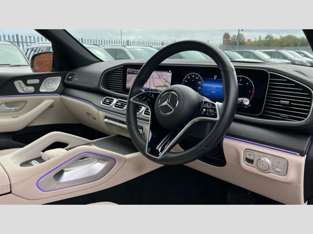 Mercedes-Benz GLE GLE 450d 4Matic AMG Line Prem + 5dr 9G-Tron [7 St] 12.3 High resolution wide screen cockpit display with choice of three display styles Classic, Progressive or Sport and unique ambient lighting setting, 360 degree camera, Active parking assist with PARKTRONIC, Attention assist, Brake wear warning display, Direct steer speed sensitive steering, DYNAMIC SELECT with a choice of driving modes (ECO, Comfort, Sport and Individual), Easy-pack tailgate - Powered opening/closing automatically, ECO start/stop function, Hard-disk navigation, Head up Display, MBUX augmented reality for navigation and live traffic, MBUX Interior assistant, MBUX voice control activated by keywords "Hey Mercedes", Mercedes Benz emergency call system, Mercedes me connect - vehicle set up and monitoring, Outside temperature display, Pre-installation for digital key transfer, Remote boot release, Service indicator (ASSYST), Status display for rear seat belts in instrument cluster, Traffic sign assist, Trip computer in multifunction display showing current fuel consumption, Wireless charging, Wireless smartphone integration including Apple CarPlay and Android auto, 85 litre fuel tank, 9G TRONIC 9 speed automatic transmission, Airmatic air suspension with adaptive damping system, Diesel particulate filter (DPF), Mild Hybrid starter alternator, Additional USB connection, Bluetooth interface for hands free and audio streaming, Burmester surround sound system, DAB digital radio tuner, Front and rear USB ports, Sound personalisation, Adaptive brake lights, Aluminium look, illuminated running boards with rubber studs, AMG bodystyling front and rear aprons, Auto headlights, Automatically dimming rear view mirror, Body colour door mirrors, Body coloured bumpers, Electric windows with one touch opening/closing and obstruction sensors, Electrically adjustable, heated, folding exterior mirrors, Exterior styling - front bumper, radiator grille and front air intakes, Heat insulating dark tinted glass, Heated windscreen washers, LED 3rd brake light, LED daytime running light signet, LED rear lights, Multibeam LED headlights with adaptive highbeam assist plus, Panoramic sliding sunroof, Radio aerial integrated into rear window, Rain sensing windscreen wipers, Rear side wing doors, Rear wiper, Roof rail system, Top surround of side windows in polished aluminium, Transparent Bonnet, Visible twin pipe exhaust system integrated into bumper, Waistline in polished aluminium, 3 spoke round bottomed multifunction steering wheel in nappa leather, 3rd row of seats for 2 people, 4 way adjustable front head restraints and 2 way rear head restraints, 40:20:40 split folding rear seats, Automatic child seat recognition sensor, Black fabric roof liner, Climatised front seats, Double sunvisor, Electric height/reach adjustable steering column, Front centre armrest with stowage compartment and illuminated grab handles, Gearshift paddles on steering wheel, Glove compartment - lockable, air conditioned and illuminated, Heated steering wheel, Illuminated door sill with Mercedes Benz lettering, Leather upholstery, Luggage compartment cover, Luxury AVANTGARDE Interior, Seat occupancy sensor for front passenger seat, Second row three seats, Single front passenger seat, Soft close doors, Sunvisors with illuminated vanity mirrors, Temperature controlled cupholder, Thermotronic automatic 4 zone climate control, Touchpad, Velour floor mats, Air balance package - GLE, Energizing package - GLE, Exclusive Trim package - GLE, Keyless go comfort package - GLE, Memory package with 4 way lumbar support - GLE, Active bonnet, Airbags - driver and front passenger, front sidebag, pelvis bag and window airbags, Anti-lock braking system (ABS), Black seat belts, Childproof locks manually operated for rear doors and electrically operated for rear power windows, Drivers knee airbag, Electronic parking brake, Electronic Stability Programme (ESP), ISOFIX child seat points with automatic child seat recognition, Perforated front brake discs and brake calipers with Mercedes-Benz lettering, Pre safe impulse side, Three point rear seat belts, Tyre pressure monitoring system, Warning triangle and first aid kit, Alarm system/interior protection/immobiliser, Central locking with interior switch, automatic locking and crash sensor with emergency opening function, Chrome surround in electric key, Guard 360 degree vehicle protection plus, Dashboard and door beltlines in ARTICO man made leather, Trim - Centre console, anthracite open pore oak wood trim, TIREFIT with tyre inflation compressor