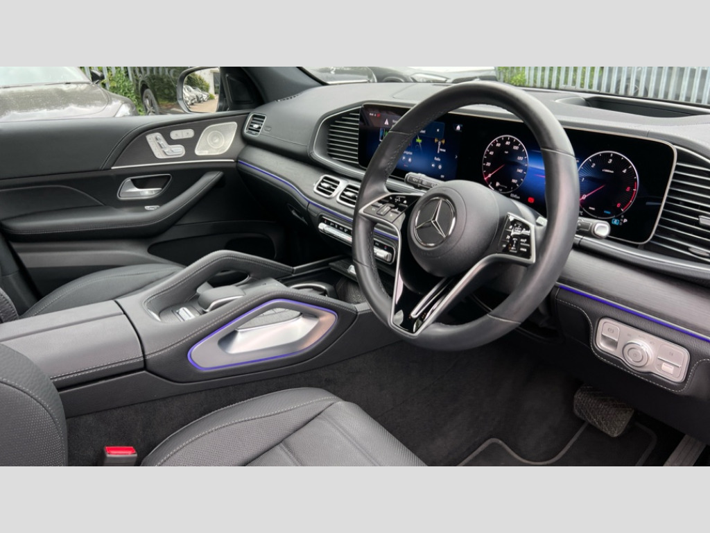 Mercedes-Benz GLE GLE 450d 4Matic AMG Line Prem 5dr 9G-Tronic [7 St] 12.3 High resolution wide screen cockpit display with choice of three display styles Classic, Progressive or Sport and unique ambient lighting setting, 360 degree camera, Active parking assist with PARKTRONIC, Attention assist, Brake wear warning display, Direct steer speed sensitive steering, DYNAMIC SELECT with a choice of driving modes (ECO, Comfort, Sport and Individual), Easy-pack tailgate - Powered opening/closing automatically, ECO start/stop function, Hard-disk navigation, Head up Display, MBUX augmented reality for navigation and live traffic, MBUX voice control activated by keywords "Hey Mercedes", Mercedes Benz emergency call system, Mercedes me connect - vehicle set up and monitoring, Outside temperature display, Pre-installation for digital key transfer, Remote boot release, Service indicator (ASSYST), Status display for rear seat belts in instrument cluster, Traffic sign assist, Trip computer in multifunction display showing current fuel consumption, Wireless charging, Wireless smartphone integration including Apple CarPlay and Android auto, 85 litre fuel tank, 9G TRONIC 9 speed automatic transmission, Airmatic air suspension with adaptive damping system, Diesel particulate filter (DPF), Mild Hybrid starter alternator, Additional USB connection, Bluetooth interface for hands free and audio streaming, Burmester surround sound system, DAB digital radio tuner, Front and rear USB ports, Sound personalisation, Adaptive brake lights, Aluminium look, illuminated running boards with rubber studs, AMG bodystyling front and rear aprons, Auto headlights, Automatically dimming rear view mirror, Body colour door mirrors, Body coloured bumpers, Electric windows with one touch opening/closing and obstruction sensors, Electrically adjustable, heated, folding exterior mirrors, Exterior styling - front bumper, radiator grille and front air intakes, Heat insulating dark tinted glass, LED 3rd brake light, LED daytime running light signet, LED rear lights, Magic vision control, Multibeam LED headlights with adaptive highbeam assist plus, Panoramic sliding sunroof, Radio aerial integrated into rear window, Rain sensing windscreen wipers, Rear side wing doors, Rear wiper, Roof rail system, Top surround of side windows in polished aluminium, Transparent Bonnet, Visible twin pipe exhaust system integrated into bumper, Waistline in polished aluminium, 3 spoke round bottomed multifunction steering wheel in nappa leather, 3rd row of seats for 2 people, 4 way adjustable front head restraints and 2 way rear head restraints, 40:20:40 split folding rear seats, Automatic child seat recognition sensor, Black fabric roof liner, Electric height/reach adjustable steering column, Front centre armrest with stowage compartment and illuminated grab handles, Gearshift paddles on steering wheel, Glove compartment - lockable, air conditioned and illuminated, Heated front seats, Illuminated door sill with Mercedes Benz lettering, Interior lighting - 64 colour Ambient lighting, Leather upholstery, Luggage compartment cover, Luxury AVANTGARDE Interior, Seat occupancy sensor for front passenger seat, Second row three seats, Single front passenger seat, Sunvisors with illuminated vanity mirrors, Thermotronic automatic 4 zone climate control, Touchpad, Velour floor mats, Exclusive Trim package - GLE, Keyless go comfort package - GLE, Memory package with 4 way lumbar support - GLE, Active bonnet, Airbags - driver and front passenger, front sidebag, pelvis bag and window airbags, Anti-lock braking system (ABS), Black seat belts, Childproof locks manually operated for rear doors and electrically operated for rear power windows, Drivers knee airbag, Electronic parking brake, Electronic Stability Programme (ESP), ISOFIX child seat points with automatic child seat recognition, Perforated front brake discs and brake calipers with Mercedes-Benz lettering, Pre safe impulse side, Three point rear seat belts, Tyre pressure monitoring system, Warning triangle and first aid kit, Alarm system/interior protection/immobiliser, Central locking with interior switch, automatic locking and crash sensor with emergency opening function, Chrome surround in electric key, Guard 360 degree vehicle protection plus, Dashboard and door beltlines in ARTICO man made leather, Trim - Centre console, anthracite open pore oak wood trim, 21" AMG multi spoke light alloy wheels, TIREFIT with tyre inflation compressor