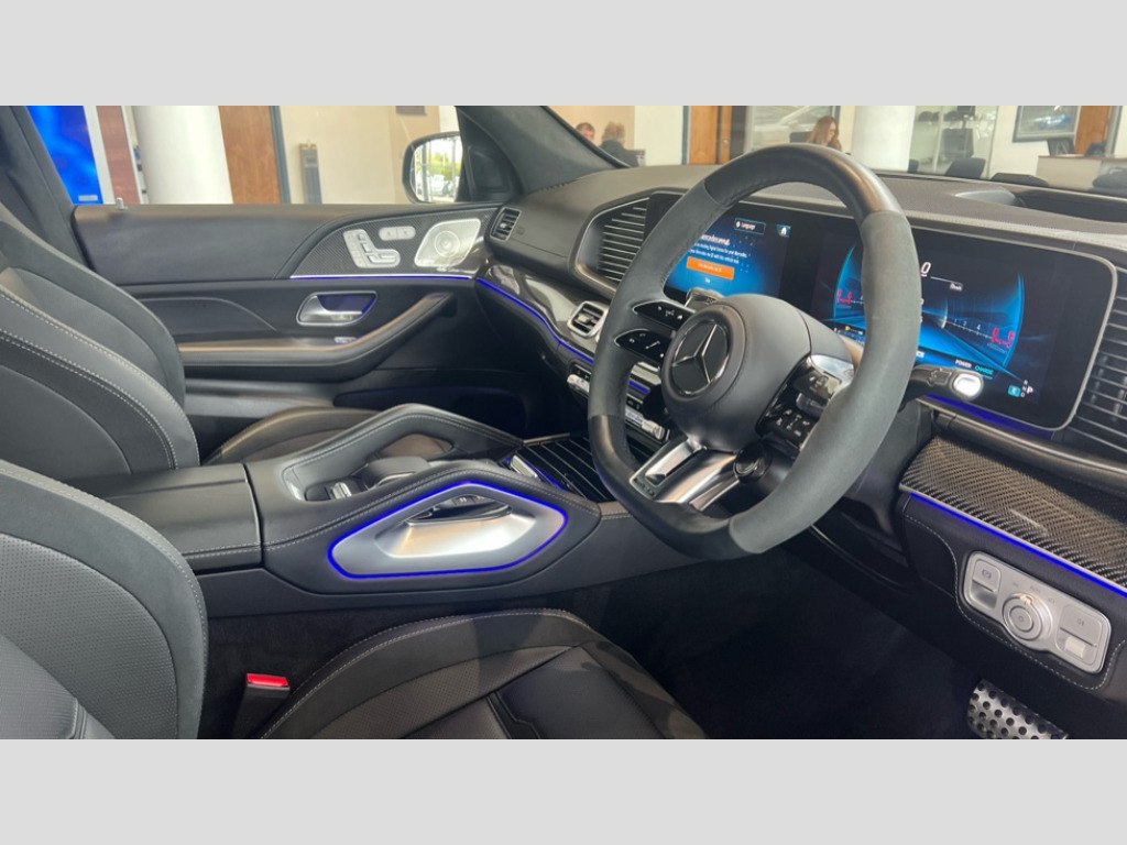 Mercedes-Benz GLE GLE 53 4Matic+ Night Ed Premium+ 5dr TCT [7 Seats] 12.3 High resolution wide screen cockpit display with choice of three display styles Classic, Progressive or Sport and unique ambient lighting setting, 360 degree camera, Active parking assist with PARKTRONIC, Attention assist, Brake wear warning display, Direct steer speed sensitive steering, DYNAMIC SELECT with a choice of driving modes (ECO, Comfort, Sport and Individual), Easy-pack tailgate - Powered opening/closing automatically, ECO start/stop function, Hard-disk navigation, Head up Display, MBUX augmented reality for navigation and live traffic, MBUX voice control activated by keywords "Hey Mercedes", Mercedes Benz emergency call system, Mercedes me connect - vehicle set up and monitoring, Outside temperature display, Pre-installation for digital key transfer, Remote boot release, Service indicator (ASSYST), Status display for rear seat belts in instrument cluster, Traffic sign assist, Trip computer in multifunction display showing current fuel consumption, Wireless charging, Wireless smartphone integration including Apple CarPlay and Android auto, 85 litre fuel tank, AMG ride control + with adaptive dampers, AMG Speedshift TCT 9 speed transmission, Mild Hybrid starter alternator, Petrol Particulate Filter (PPF), Additional USB connection, Bluetooth interface for hands free and audio streaming, Burmester surround sound system, DAB digital radio tuner, Front and rear USB ports, Sound personalisation, Adaptive brake lights, Aluminium look, illuminated running boards with rubber studs, AMG bodystyling front and rear aprons, AMG exhaust system with two black chrome round twin tailpipes, AMG performance exhaust system, Auto headlights, Automatically dimming rear view mirror, Body coloured bumpers, Electric windows with one touch opening/closing and obstruction sensors, Electrically adjustable, heated, folding exterior mirrors, Exterior styling - front bumper, radiator grille and front air intakes, Heated windscreen washers, LED 3rd brake light, LED daytime running light signet, LED rear lights, Magic vision control, Matt black roof rails, Multibeam LED headlights with adaptive highbeam assist plus, Panoramic sliding sunroof, Radio aerial integrated into rear window, Rain sensing windscreen wipers, Rear side wing doors, Rear wiper, Roof rail system, Top surround of side windows in polished aluminium, Transparent Bonnet, Visible twin pipe exhaust system integrated into bumper, Waistline in polished aluminium, 3 seat bench in 2nd row, 3 spoke AMG Performance multifunction steering wheel in nappa leather/MICROCUT, 3rd row of seats for 2 people, 4 way adjustable front head restraints and 2 way rear head restraints, 40:20:40 split folding rear seats, AMG floor mats, AMG steering wheel buttons, Automatic child seat recognition sensor, Black MICROCUT Headlining, Climatised front seats, Dinamica microfibre roof liner in black, Double sunvisor, Electric height/reach adjustable steering column, Electrically adjustable front seats with memory function, Electrically adjustable rear seats, Front centre armrest with stowage compartment and illuminated grab handles, Gearshift paddles on steering wheel, Glove compartment - lockable, air conditioned and illuminated, Heated rear seats, Heated steering wheel, Illuminated door sill with AMG lettering, Interior lighting - 64 colour Ambient lighting, Luggage compartment cover, Luxury head restraints in front, Multicontour front seats with massage, Seat occupancy sensor for front passenger seat, Single front passenger seat, Sports pedals in brushed stainless steel with rubber studs, Sunvisors with illuminated vanity mirrors, Temperature controlled cupholder, Thermotronic automatic 4 zone climate control, Touchpad, Air balance package - GLE, AMG night package - GLE, Energizing package - GLE, Exclusive Trim package - GLE, Keyless go comfort package - GLE, Active bonnet, Airbags - driver and front passenger, front sidebag, pelvis bag and window airbags, Anti-lock braking system (ABS), Black seat belts, Childproof locks manually operated for rear doors and electrically operated for rear power windows, Drivers knee airbag, Electronic parking brake, Electronic Stability Programme (ESP), High performance perforated front brake discs and brake calipers with AMG lettering, ISOFIX child seat points with automatic child seat recognition, Pre safe impulse side, Three point rear seat belts, Tyre pressure monitoring system, Warning triangle and first aid kit, Alarm system/interior protection/immobiliser, Central locking with interior switch, automatic locking and crash sensor with emergency opening function, Chrome surround in electric key, Dashcam, Guard 360 degree vehicle protection plus, Carbon fibre trim elements, Dashboard and door beltlines in ARTICO man made leather, 22" AMG cross spoke forged alloy wheels in matte black, TIREFIT with tyre inflation compressor