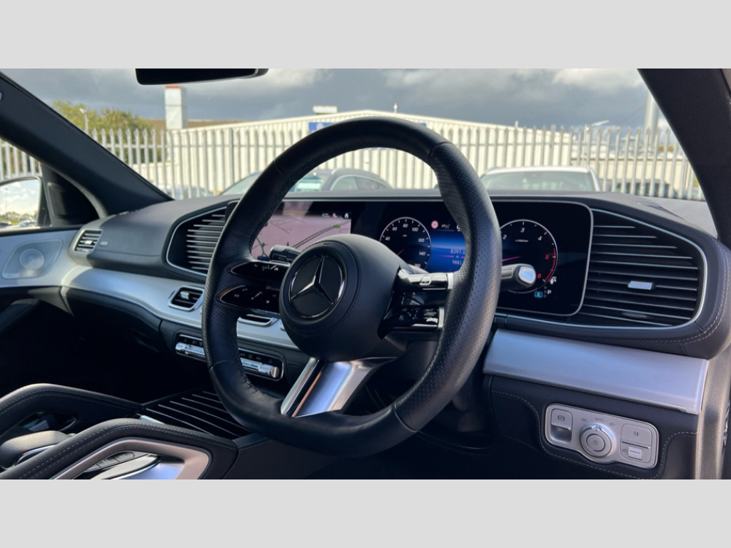 Mercedes-Benz GLE Coupe GLE 450d 4Matic Urban Edition 5dr 9G-Tronic 12.3 High resolution wide screen cockpit display with choice of three display styles Classic, Progressive or Sport and unique ambient lighting setting, 360 degree camera, Active parking assist with PARKTRONIC, Attention assist, Brake wear warning display, Direct steer speed sensitive steering, DYNAMIC SELECT with a choice of driving modes (ECO, Comfort, Sport and Individual), Easy-pack tailgate - Powered opening/closing automatically, ECO start/stop function, Hard-disk navigation, MBUX augmented reality for navigation and live traffic, MBUX voice control activated by keywords "Hey Mercedes", Mercedes Benz emergency call system, Mercedes me connect - vehicle set up and monitoring, Outside temperature display, Pre-installation for digital key transfer, Service indicator (ASSYST), Status display for rear seat belts in instrument cluster, Traffic sign assist, Trip computer in multifunction display showing current fuel consumption, Wireless charging, Wireless smartphone integration including Apple CarPlay and Android auto, 85 litre fuel tank, 9G TRONIC 9 speed automatic transmission, Airmatic air suspension with adaptive damping system, Diesel particulate filter (DPF), Mild Hybrid starter alternator, Additional USB connection, Bluetooth interface for hands free and audio streaming, Burmester surround sound system, DAB digital radio tuner, Front and rear USB ports, Sound personalisation, Adaptive brake lights, AMG bodystyling front and rear aprons, Auto headlights, Automatically dimming rear view mirror, Body colour door mirrors, Body coloured bumpers, Electric windows with one touch opening/closing and obstruction sensors, Electrically adjustable, heated, folding exterior mirrors, Exterior styling - front bumper, radiator grille and front air intakes, Heat insulating dark tinted glass, LED 3rd brake light, LED daytime running light signet, LED rear lights, Magic vision control, Multibeam LED headlights with adaptive highbeam assist plus, Radio aerial integrated into rear window, Rain sensing windscreen wipers, Rear side wing doors, Rear wiper, Roof rail system, Top surround of side windows in polished aluminium, Transparent Bonnet, Visible twin pipe exhaust system integrated into bumper, Waistline in polished aluminium, 3 spoke flat bottomed Multifunction sports steering wheel in nappa leather, 4 way adjustable front head restraints and 2 way rear head restraints, 40:20:40 split folding rear seats, AMG floor mats, Artico/Microcut microfibre upholstery, Automatic child seat recognition sensor, Black fabric roof liner, Electric height/reach adjustable steering column, Front centre armrest with stowage compartment and illuminated grab handles, Gearshift paddles on steering wheel, Glove compartment - lockable, air conditioned and illuminated, Heated front seats, Interior lighting - 64 colour Ambient lighting, Luggage compartment cover, Seat occupancy sensor for front passenger seat, Second row three seats, Single front passenger seat, Sports pedals in brushed stainless steel with rubber studs, Sunvisors with illuminated vanity mirrors, THERMATIC 2 zone automatic climate control, Touchpad, Energizing package - GLE, Keyless go comfort package - GLE, Memory package with 4 way lumbar support - GLE, Night package - GLE, Active bonnet, Airbags - driver and front passenger, front sidebag, pelvis bag and window airbags, Anti-lock braking system (ABS), Black seat belts, Childproof locks manually operated for rear doors and electrically operated for rear power windows, Drivers knee airbag, Electronic parking brake, Electronic Stability Programme (ESP), ISOFIX child seat points with automatic child seat recognition, Perforated front brake discs and brake calipers with Mercedes-Benz lettering, Pre safe impulse side, Three point rear seat belts, Tyre pressure monitoring system, Warning triangle and first aid kit, Alarm system/interior protection/immobiliser, Central locking with interior switch, automatic locking and crash sensor with emergency opening function, Chrome surround in electric key, Guard 360 degree vehicle protection plus, Brushed aluminium trim elements, Dashboard and door beltlines in ARTICO man made leather, 21" AMG 5 twin spoke light alloy wheels painted in bi colour, TIREFIT with tyre inflation compressor