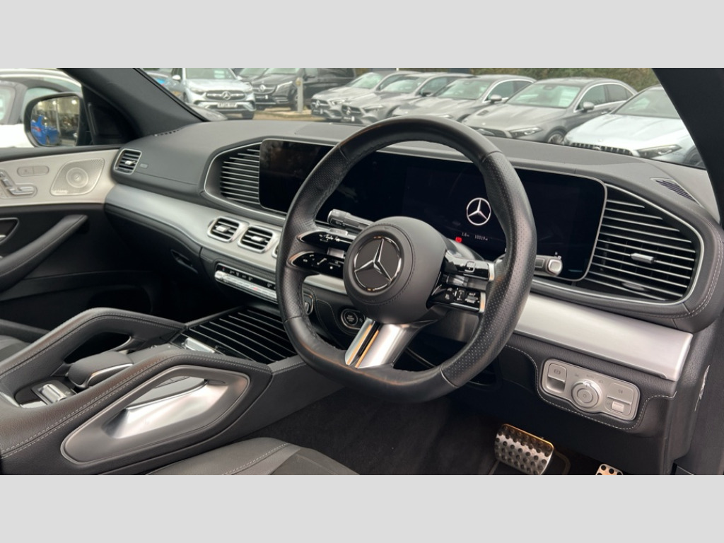 Mercedes-Benz GLE Coupe GLE 450d 4Matic Urban Edition 5dr 9G-Tronic 12.3 High resolution wide screen cockpit display with choice of three display styles Classic, Progressive or Sport and unique ambient lighting setting, 360 degree view camera, Active parking assist with PARKTRONIC, Attention assist, Brake wear warning display, Direct steer speed sensitive steering, DYNAMIC SELECT with a choice of driving modes (ECO, Comfort, Sport and Individual), Easy-pack tailgate - Powered opening/closing automatically, ECO start/stop function, Hard-disk navigation, MBUX augmented reality for navigation and live traffic, MBUX voice control activated by keywords "Hey Mercedes", Mercedes Benz emergency call system, Mercedes me connect - vehicle set up and monitoring, Outside temperature display, Pre-installation for digital key transfer, Service indicator (ASSYST), Status display for rear seat belts in instrument cluster, Traffic sign assist, Trip computer in multifunction display showing current fuel consumption, Wireless charging, Wireless smartphone integration including Apple CarPlay and Android auto, 85 litre fuel tank, 9G TRONIC 9 speed automatic transmission, Airmatic air suspension with adaptive damping system, Diesel particulate filter (DPF), Mild Hybrid starter alternator, Additional USB connection, Bluetooth interface for hands free and audio streaming, Burmester surround sound system, DAB digital radio tuner, Front and rear USB ports, Sound personalisation, Adaptive brake lights, AMG bodystyling front and rear aprons, Auto headlights, Automatically dimming rear view mirror, Body colour door mirrors, Body coloured bumpers, Electric windows with one touch opening/closing and obstruction sensors, Electrically adjustable, heated, folding exterior mirrors, Exterior styling - front bumper, radiator grille and front air intakes, Heat insulating dark tinted glass, LED 3rd brake light, LED daytime running light signet, LED rear lights, Magic vision control, Multibeam LED headlights with adaptive highbeam assist plus, Radio aerial integrated into rear window, Rain sensing windscreen wipers, Rear side wing doors, Rear wiper, Roof rail system, Top surround of side windows in polished aluminium, Transparent Bonnet, Visible twin pipe exhaust system integrated into bumper, Waistline in polished aluminium, 3 spoke flat bottomed Multifunction sports steering wheel in nappa leather, 4 way adjustable front head restraints and 2 way rear head restraints, 40:20:40 split folding rear seats, AMG floor mats, Artico/Microcut microfibre upholstery, Automatic child seat recognition sensor, Black fabric roof liner, Electric height/reach adjustable steering column, Front centre armrest with stowage compartment and illuminated grab handles, Gearshift paddles on steering wheel, Glove compartment - lockable, air conditioned and illuminated, Heated front seats, Interior lighting - 64 colour Ambient lighting, Luggage compartment cover, Seat occupancy sensor for front passenger seat, Second row three seats, Single front passenger seat, Sports pedals in brushed stainless steel with rubber studs, Sunvisors with illuminated vanity mirrors, THERMATIC 2 zone automatic climate control, Touchpad, Energizing package - GLE, Keyless go comfort package - GLE, Memory package with 4 way lumbar support - GLE, Night package - GLE, Active bonnet, Airbags - driver and front passenger, front sidebag, pelvis bag and window airbags, Anti-lock braking system (ABS), Black seat belts, Childproof locks manually operated for rear doors and electrically operated for rear power windows, Drivers knee airbag, Electronic parking brake, Electronic Stability Programme (ESP), ISOFIX child seat points with automatic child seat recognition, Perforated front brake discs and brake calipers with Mercedes-Benz lettering, Pre safe impulse side, Three point rear seat belts, Tyre pressure monitoring system, Warning triangle and first aid kit, Alarm system/interior protection/immobiliser, Central locking with interior switch, automatic locking and crash sensor with emergency opening function, Chrome surround in electric key, Guard 360 degree vehicle protection plus, Brushed aluminium trim elements, Dashboard and door beltlines in ARTICO man made leather with contrast top stitching, 21" AMG 5 twin spoke light alloy wheels painted in bi colour, TIREFIT with tyre inflation compressor