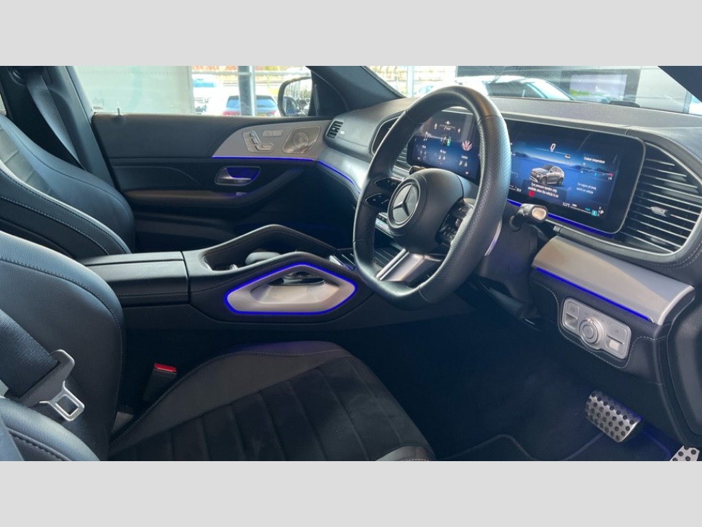 Mercedes-Benz GLE Coupe GLE 450d 4Matic Urban Edition 5dr 9G-Tronic 12.3 High resolution wide screen cockpit display with choice of three display styles Classic, Progressive or Sport and unique ambient lighting setting, 360 degree view camera, Active parking assist with PARKTRONIC, Attention assist, Brake wear warning display, Direct steer speed sensitive steering, DYNAMIC SELECT with a choice of driving modes (ECO, Comfort, Sport and Individual), Easy-pack tailgate - Powered opening/closing automatically, ECO start/stop function, Hard-disk navigation, MBUX augmented reality for navigation and live traffic, MBUX voice control activated by keywords "Hey Mercedes", Mercedes Benz emergency call system, Mercedes me connect - vehicle set up and monitoring, Outside temperature display, Pre-installation for digital key transfer, Service indicator (ASSYST), Status display for rear seat belts in instrument cluster, Traffic sign assist, Trip computer in multifunction display showing current fuel consumption, Wireless charging, Wireless smartphone integration including Apple CarPlay and Android auto, 85 litre fuel tank, 9G TRONIC 9 speed automatic transmission, Airmatic air suspension with adaptive damping system, Diesel particulate filter (DPF), Mild Hybrid starter alternator, Additional USB connection, Bluetooth interface for hands free and audio streaming, Burmester surround sound system, DAB digital radio tuner, Front and rear USB ports, Sound personalisation, Adaptive brake lights, AMG bodystyling front and rear aprons, Auto headlights, Automatically dimming rear view mirror, Body colour door mirrors, Body coloured bumpers, Electric windows with one touch opening/closing and obstruction sensors, Electrically adjustable, heated, folding exterior mirrors, Exterior styling - front bumper, radiator grille and front air intakes, Heat insulating dark tinted glass, LED 3rd brake light, LED daytime running light signet, LED rear lights, Magic vision control, Multibeam LED headlights with adaptive highbeam assist plus, Radio aerial integrated into rear window, Rain sensing windscreen wipers, Rear side wing doors, Rear wiper, Roof rail system, Top surround of side windows in polished aluminium, Transparent Bonnet, Visible twin pipe exhaust system integrated into bumper, Waistline in polished aluminium, 3 spoke flat bottomed Multifunction sports steering wheel in nappa leather, 4 way adjustable front head restraints and 2 way rear head restraints, 40:20:40 split folding rear seats, AMG floor mats, Artico/Microcut microfibre upholstery, Automatic child seat recognition sensor, Black fabric roof liner, Electric height/reach adjustable steering column, Front centre armrest with stowage compartment and illuminated grab handles, Gearshift paddles on steering wheel, Glove compartment - lockable, air conditioned and illuminated, Heated front seats, Interior lighting - 64 colour Ambient lighting, Luggage compartment cover, Seat occupancy sensor for front passenger seat, Second row three seats, Single front passenger seat, Sports pedals in brushed stainless steel with rubber studs, Sunvisors with illuminated vanity mirrors, THERMATIC 2 zone automatic climate control, Touchpad, Energizing package - GLE, Keyless go comfort package - GLE, Memory package with 4 way lumbar support - GLE, Night package - GLE, Active bonnet, Airbags - driver and front passenger, front sidebag, pelvis bag and window airbags, Anti-lock braking system (ABS), Black seat belts, Childproof locks manually operated for rear doors and electrically operated for rear power windows, Drivers knee airbag, Electronic parking brake, Electronic Stability Programme (ESP), ISOFIX child seat points with automatic child seat recognition, Perforated front brake discs and brake calipers with Mercedes-Benz lettering, Pre safe impulse side, Three point rear seat belts, Tyre pressure monitoring system, Warning triangle and first aid kit, Alarm system/interior protection/immobiliser, Central locking with interior switch, automatic locking and crash sensor with emergency opening function, Chrome surround in electric key, Guard 360 degree vehicle protection plus, Brushed aluminium trim elements, Dashboard and door beltlines in ARTICO man made leather with contrast top stitching, 21" AMG 5 twin spoke light alloy wheels painted in bi colour, TIREFIT with tyre inflation compressor