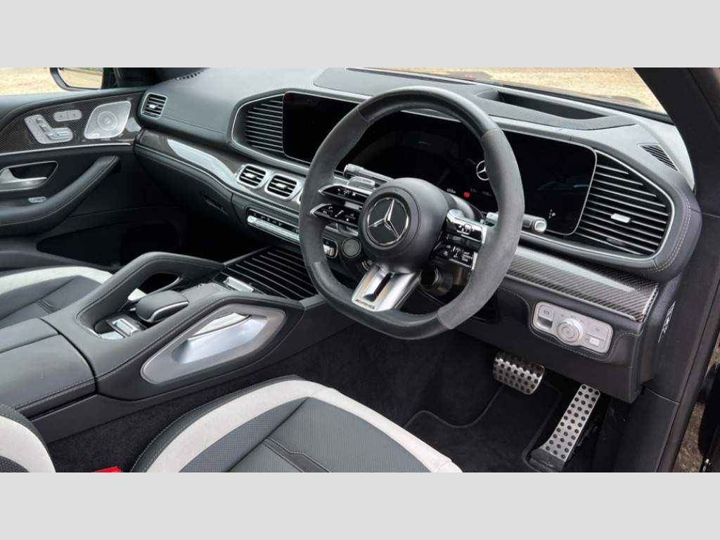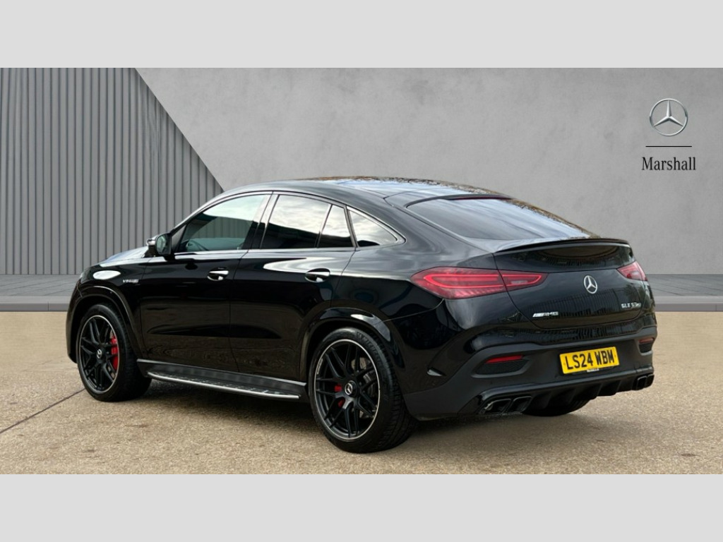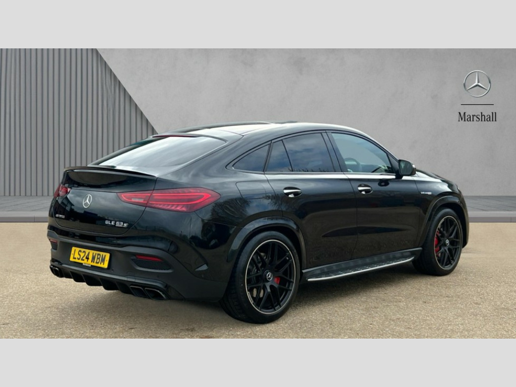 Mercedes-Benz GLE Coupe GLE 63 S 4Matic+ Night Edition Premium + 5dr TCT 12.3 High resolution wide screen cockpit display with choice of three display styles Classic, Progressive or Sport and unique ambient lighting setting, 360 degree view camera, Active parking assist with PARKTRONIC, AMG track pace, Attention assist, Brake wear warning display, Direct steer speed sensitive steering, DYNAMIC SELECT with a choice of driving modes (ECO, Comfort, Sport and Individual), Easy-pack tailgate - Powered opening/closing automatically, ECO start/stop function, Hard-disk navigation, Head up Display, MBUX augmented reality for navigation and live traffic, MBUX Interior assistant, MBUX voice control activated by keywords "Hey Mercedes", Mercedes Benz emergency call system, Mercedes me connect - vehicle set up and monitoring, Outside temperature display, Pre-installation for digital key transfer, Service indicator (ASSYST), Smartphone integration with Apple CarPlay and Android auto, Status display for rear seat belts in instrument cluster, Trip computer in multifunction display showing current fuel consumption, Wireless charging, 85 litre fuel tank, AMG active ride control suspension with adaptive dampers, AMG rear axle limited slip differential lock, AMG Speedshift TCT 9 speed transmission, Petrol Particulate Filter (PPF), Additional USB connection, Bluetooth interface for hands free and audio streaming, Burmester surround sound system, DAB Digital radio, Front and rear USB ports, Sound personalisation, Adaptive brake lights, Aerial for GPS, Aluminium look, illuminated running boards with rubber studs, AMG bodystyling front and rear aprons and side skirts in polished aluminium, AMG exhaust system with two black chrome rectangular twin tailpipes, AMG performance exhaust system, Auto headlights, Automatically dimming rear view mirror, Body coloured bumpers, Electric windows with one touch opening/closing and obstruction sensors, Electrically adjustable, heated, folding exterior mirrors, Exterior styling - front bumper, radiator grille and front air intakes, Heated windscreen washers, LED 3rd brake light, LED daytime running light signet, LED rear lights, Multibeam LED headlights with adaptive highbeam assist plus, Panoramic sliding sunroof, Rain sensing windscreen wipers, Rear side wing doors, Rear wiper, Surround lighting with animated projection of the AMG logo, Top surround of side windows in polished aluminium, Transparent Bonnet, Visible twin pipe exhaust system integrated into bumper, Waistline in polished aluminium, 2 rear head restraints, 3 seat bench in 2nd row, 3 spoke AMG performance nappa leather multifunction sports steering wheel with buttons and paddles, 4 way adjustable front head restraints and 2 way rear head restraints, 40:20:40 split folding rear seats, AMG floor mats, Automatic child seat recognition sensor, Dinamica microfibre roof liner in black, Double sunvisor, Electrically adjustable rear seats, Front centre armrest with stowage compartment and illuminated grab handles, Glove compartment - lockable, air conditioned and illuminated, Illuminated front door sill with AMG lettering, Interior lighting - 64 colour Ambient lighting, Luggage compartment cover, Luxury head restraints in front, Seat occupancy sensor for front passenger seat, Single front passenger seat, Soft close doors, Sports pedals in brushed stainless steel with rubber studs, Sunvisors with illuminated vanity mirrors, Temperature controlled cupholder, Thermotronic automatic 4 zone climate control, Touchpad, AMG Drivers package - GLE 63, AMG night pack - GLE Coupe, Driving assistance plus pack with Distronic cruise control - GLE, Energizing plus package - GLE, Keyless go comfort package with comfort opening - GLE, Memory package with 4 way lumbar support - GLE, Active bonnet, Adaptive brake system with HOLD function and brake drying in the wet, Airbags - driver and front passenger, front sidebag, pelvis bag and window airbags, AMG high performance composite braking system, Anti-lock braking system (ABS), Childproof locks manually operated for rear doors and electrically operated for rear power windows, Downhill speed regulation (DSR) with switch and variable speed control, Drivers knee airbag, Electronic four wheel traction control, Electronic parking brake, Electronic stability programme with acceleration skid control, High performance perforated front brake discs and silver brake calipers with AMG lettering, ISOFIX child seat points with automatic child seat recognition, Three point rear seat belts, Tyre pressure monitoring system, Warning triangle and first aid kit, Alarm system/interior protection/immobiliser, Central locking with interior switch, automatic locking and crash sensor with emergency opening function, Chrome surround in electric key, Dashcam, Guard 360 degree vehicle protection plus, Dashboard and door beltlines in nappa leather, Dashboard and door, AMG carbon fibre, 22" AMG cross spoke forged alloy wheels in matte black, TIREFIT with tyre inflation compressor