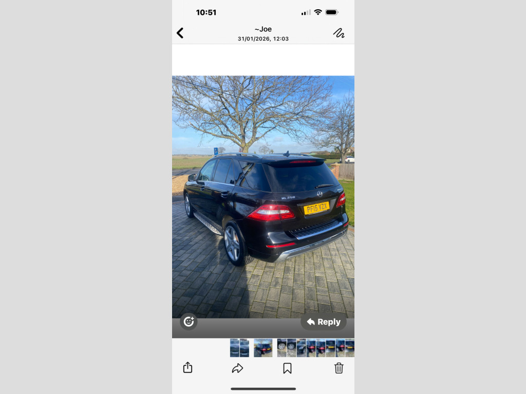 This 2015 Mercedes-Benz M Class 2.1 ML250 BlueTEC AMG Line SUV with 81000 miles on the clock is a stylish and reliable option for anyone in need of a practical yet luxurious SUV. With 5 seats and 5 doors, there's plenty of space for the whole family, and the powerful Diesel engine ensures a smooth and efficient driving experience. The MOT is valid until 04/01/2027, making it a worry-free choice for the years to come, and it's ULEZ compliant for peace of mind in urban areas. The vehicle comes with features such as 10GB Music Register and MP3 Compatibility, 12V Sockets throughout, and 3 Years Free European Map Updates, making every journey a pleasure. This G-Tronic 4WD Euro 6 (s/s) (204 ps) model is a true standout in the SUV market and is ready to tackle any adventure with style and sophistication., gb music register and mp3 compatibility, 12v socket, 12v socket in load compartment, 12v socket in rear passenger compartment, 3 years free european map updates, 7-inch colour display, bluetooth interface for hands-free telephone, cd-dvd radio, comand online system with media interface, cable included for ipod connectivity, media interface, sd memory card slot, satellite navigation - hdd - hard disk drive map system with traffic information, speakers x8, telephone keypad, usb port in centre armrest, ecall - emergency call system, 20in alloy wheels - amg 5-spoke design, amg bodystyling - front and rear apron and side skirts, courtesy lighting on underside of door mirrors, door mirrors - automatically dimming, door mirrors - electrically adjustable-folding-heated, front and rear apron trim - chrome style, heated windscreen washer system, privacy glass - from b-pillar backwards, radiator grille with three chromed louvres, rear bumper with integrated reflectors, roof rails - aluminium finish, simulated underguard - front and rear in stainless steel finish, tirefit, tinted glass - green, windows - electric x4, abs - anti-lock braking system, asr - acceleration skid control, active bonnet - pedestrian safety measure, adaptive brake lights, airbag - driver, airbag - front passenger, airbags - front sidebags, airbags - windowbags, alarm system with interior protection, automatic child seat recognition sensor, bas - brake assist, collision prevention assist, dsr - downhill speed regulation with switch and variable speed control, esp - electronic stability programme, esp trailer stability assist, electric parking brake, first aid kit, four-wheel electronic traction system - 4ets, hill start assist, isofix and top-tether child seat fixing points in rear - two outer seats, immobiliser, pre-safe anticipatory safety system, rear screen wash-wiper, remote central locking, seat belt force limiters - front and outer rear seats, seat belt pre-tensioners - front and outer rear seats, speed limit assist, warning triangle, attention assist, active park assist with parktronic, central controller dial to operate audio and telephone functions, direct steering, linguatronic voice control in centre console, outside temperature gauge, parking sensor - front, parking sensor - rear, speedtronic cruise control, service indicator assyst, steel suspension - lowered, tyre pressure monitoring system, active light system, automatic headlight range adjustment, cornering light function, daytime running lights - led, headlight assist - automatic headlight activation, headlight wash, headlights - bi-xenon, headlights - intelligent light system, high level third brake light, rear tail lights - led, auto dimming rear view mirror, automatic climate control, centre armrest - front with storage, centre armrest - rear, cup holder - twin, cup holder - twin rear, door centre panels with ribbed design in artico artificial leather, easy-pack powered tailgate, floor mats - velour - black with nubuck leather edging - mercedes-benz brushed metal badge with matt finish, front seats - full electric adjustment - backrest-height and longitude, head restraints - manually adjustable - front and rear, load-securing rings in luggage compartment, luggage compartment cover, luxury front head restraints, pollen filter, rain-sensing windscreen wipers, reading lights - front and rear, rear seats - split folding 1-3 2-3 with manual back adjustment, scratch guard on load compartment sill - chrome, seats - cushion depth adjustment, seats - front four-way electric lumbar support, seats - heated front, seats - massage function, seats - sports, sports pedals - stainless steel with rubber studs, steering column - manually adjustable for height and reach, steering column gear selector, steering wheel - 4-spoke-trimmed in nappa leather with perforated grip areas, steering wheel - gear shift paddles, steering wheel - multi-function, steering wheel - sports, sun visors with illuminated vanity mirrors, trim - brushed light aluminium