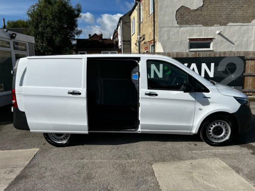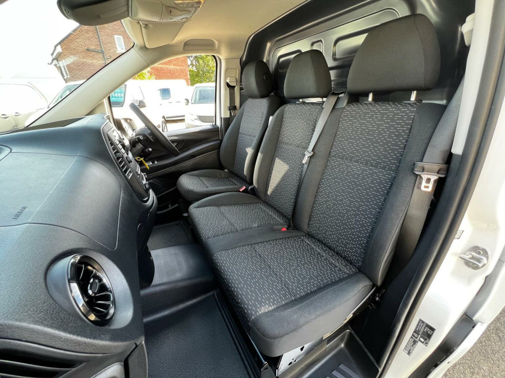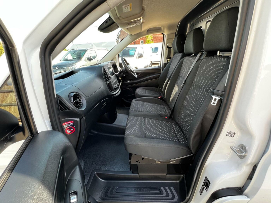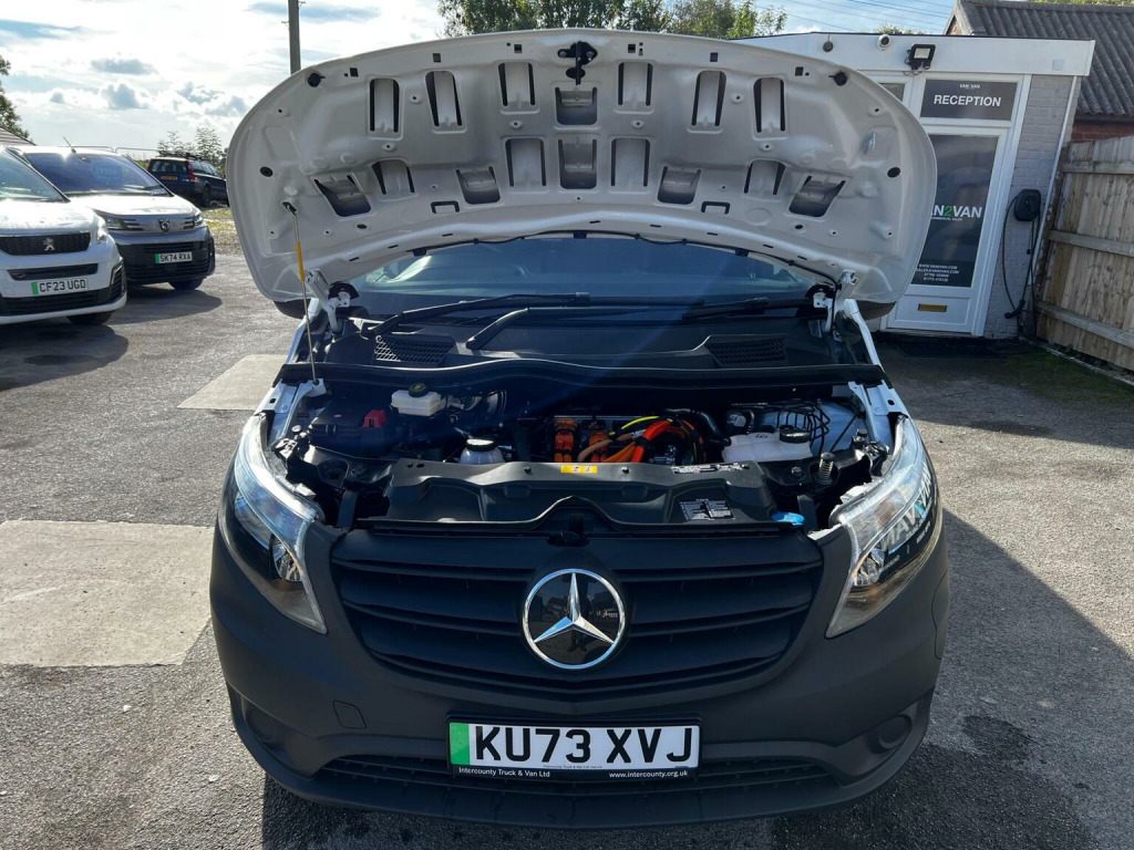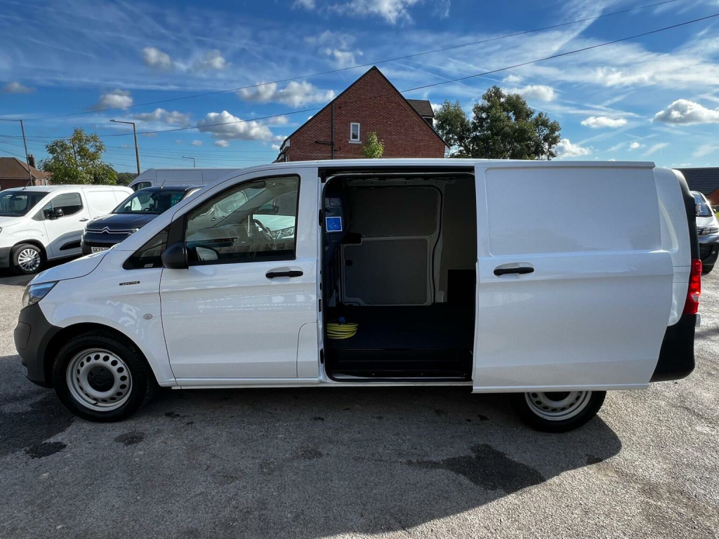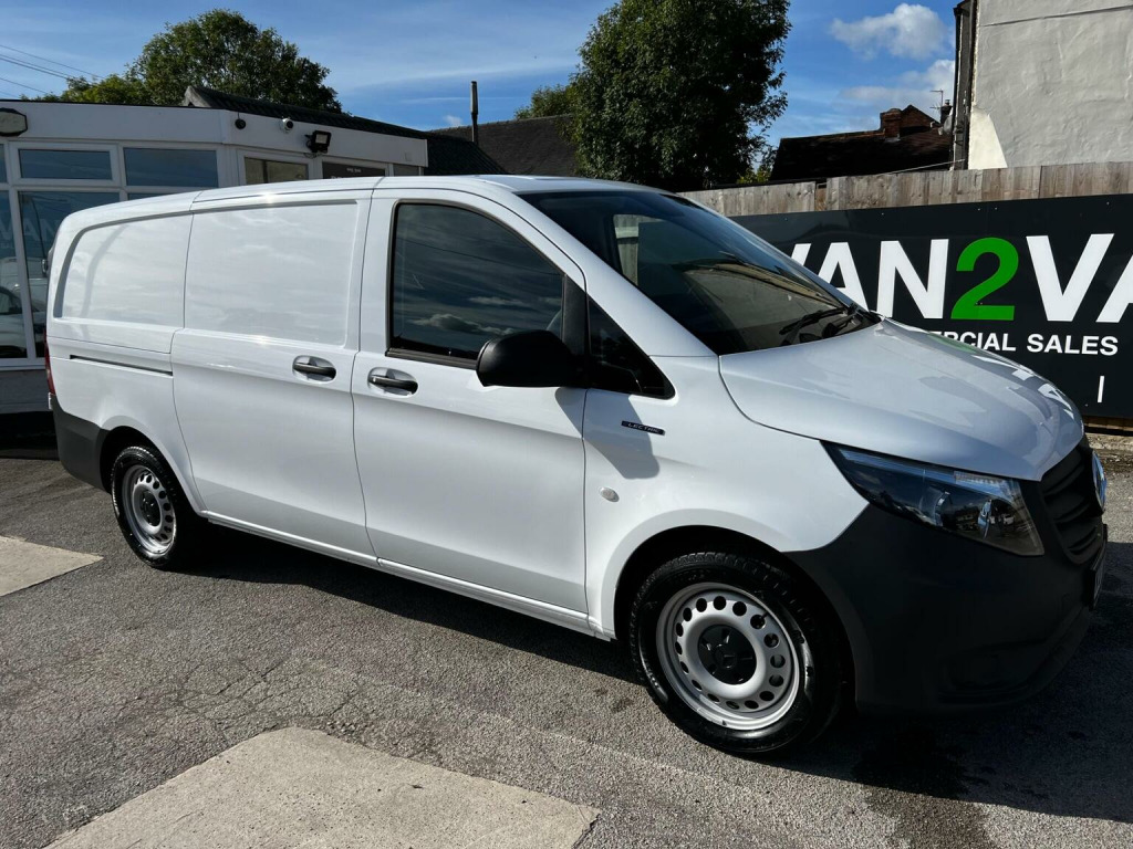 Mercedes-Benz eVito 116 e 66kWh Progressive Auto FWD L2 6dr (LWB) 1 OWNER, 3 SEATS, AIR CONDITIONING, MEDIA, BLUETOOTH, CARPLAY, DAB, HEATED DRIVERS SEAT, RADIO, REVERSING CAMERA, MULTI FUNCTION STEERING WHEEL, BOOK PACK, TYPE 2 CHARGING CABLE, Next MOT due 27/09/2026, Excellent bodywork, Black Cloth interior - Excellent Condition, Tyre condition Excellent, Long wheel-base, 3 seats, White, 1 owner, 17in Steel Wheels, 6 Tie-Down points in Floor, ABS - Anti-Lock Braking System, AC Charging 11KW - DC Charging 80KW, ATTENTION Assist, Acoustic Presence Indicator, Active Brake ASSIST, Adaptive Brake Lights, Adaptive Speed Limitation Function, Airbag - Co-Driver, Airbag - Driver, Android Auto, Anti-Theft Protection Package, Apple CarPlay, Audio 30, Basic Suspension, Bulkhead - Full-Length Partition, Charging Cable - Mode 3 - Type 2 - 3x32A - 8m, Comfort Driver Seat, Comfort Overhead Control Panel, Communication Module - LTE - For Digital Services, Crosswind Assist, Cruise Control and Hill Start Assist, DAB Digital Radio Tuner, Daytime Running Lights, Door Mirrors - Electrically Adjustable and Heated, Double Co-Driver Seat, Double Locks, Dynamic Select, Electric Windows, Gross Vehicle Weight Uprate - 3.2t, Headlights - Halogen, Heated Driver Seat, Heavy Duty Battery, Instrument Cluster with Pixel-Matrix Display, Interior Panelling in Load compartment - Side, Lighting - Headlight Assistant, Mercedes Me Services, Mercedes-Benz Emergency Call System, Multifunction Steering Wheel, Plastic Floor Covering, Pre-Installation for Roof loading Systems, Rear- Barn Style Doors - 180 Degree Opening, Reversing Camera, Rolling Resistance Optimised Braking System, Seat Belt Reminder - Driver, Seat Belt Reminder for Co-Driver Seat, Smartphone Integration, Speed Limiter 75mph - 120kmh, Steering Wheel - Rake and Reach Adjustment, Summer Tyres, TEMPMATIC Semi-Automatic Air Conditioning, Tail Lamps - Halogen, Terminal Strip for Electrical Connection, Towing Points Front and Rear, Twin Side Loading Doors, Tyre Pressure Monitoring - Wireless.