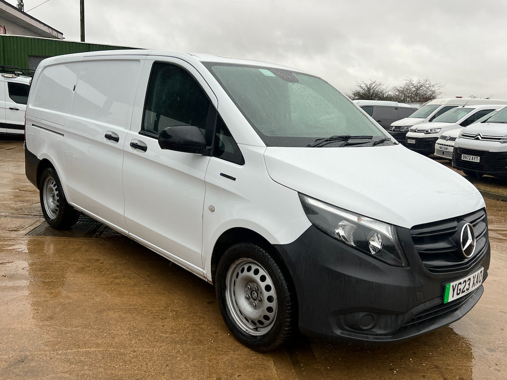 3 doors, 3 seats, Electric, panel van, Automatic, 18,000 Miles, white, FULLY HPI CLEAR, ULEZ+EURO 6 COMPLIANT, 1 OWNER FROM NEW,LONG WHEEL BASE, PARKING SENSORS, REAR CAMERA, AIR CON, Brake assist system, Central door locking, Connection to ext.entertainment devices, Cup holders, Electric windows, Electronic brake distribution, Electronic traction control, Front airbag, Front seat centre armrest, Power steering, Remote audio controls, Stability control, Start/Stop, service history BUY FROM HOME- DELIVER TO YOUR DOOR, WATCH A WALK AROUND VIDEO ON OUR WEBSITE. We offer up to 3 years warranty per vehicle! WE ACCEPT ALL MAJOR DEBIT AND CREDIT CARDS! ALWAYS AROUND 100 VEHICLES IN STOCK! 17in Steel Wheels,6 Tie-Down points in Floor,ABS - Anti-Lock Braking System,AC Charging 11KW - DC Charging 80KW,ATTENTION Assist,Acoustic Presence Indicator,Active Brake ASSIST,Adaptive Brake Lights,Adaptive Speed Limitation Function,Airbag - Co-Driver,Airbag - Driver,Android Auto,Anti-Theft Protection Package,Apple CarPlay,Audio 30,Basic Suspension,Bulkhead - Full-Length Partition,Charging Cable - Mode 3 - Type 2 - 3x32A - 8m,Comfort Driver Seat,Comfort Overhead Control Panel,Communication Module - LTE - For Digital Services,Crosswind Assist,Cruise Control and Hill Start Assist,DAB Digital Radio Tuner,Daytime Running Lights,Door Mirrors - Electrically Adjustable and Heated,Double Co-Driver Seat,Double Locks,Dynamic Select,Electric Windows - Front,Electromechanical Steering,Energy-Saving Mode for Climate Control,Front and Rear Bumpers - Painted,Gross Vehicle Weight Uprate - 3.2t,Headlights - Halogen,Heated Driver Seat,Heavy Duty Battery,Instrument Cluster with Pixel-Matrix Display,Interior Panelling in Load compartment - Side,Lighting - Headlight Assistant,Mercedes Me Services,Mercedes-Benz Emergency Call System,Multifunction Steering Wheel,Plastic Floor Covering,Pre-Installation for Roof loading Systems,Rear- Barn Style Doors - 180 Degree Opening,Reversing Camera,Rolling Resistance Optimised Braking System,Seat Belt Reminder - Driver,Seat Belt Reminder for Co-Driver Seat,Smartphone Integration,Speed Limiter 75mph - 120kmh,Steering Wheel - Rake and Reach Adjustment,Summer Tyres,TEMPMATIC Semi-Automatic Air Conditioning,Tail Lamps - Halogen,Terminal Strip for Electrical Connection,Towing Points Front and Rear,Twin Side Loading Doors,Tyre Pressure Monitoring - Wireless,VIN Visible from Outside,Weld Nuts in the Sidewall for Conversions