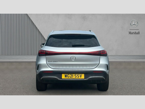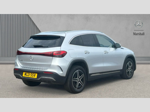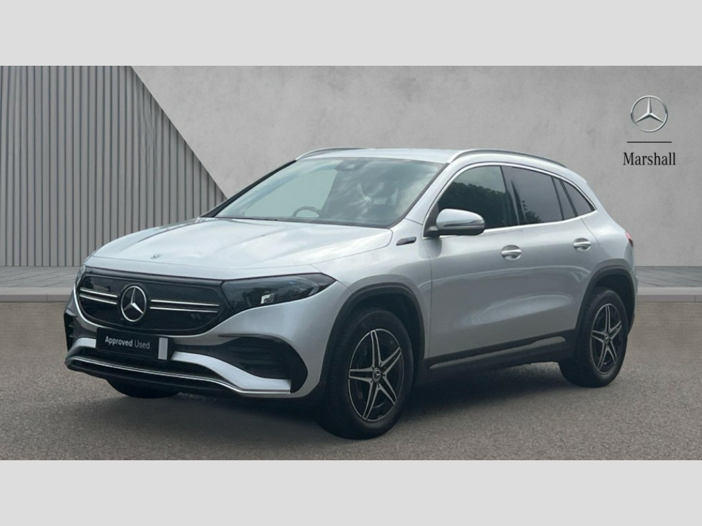 Mercedes-Benz Eqa EQA 250 140kW AMG Line 66.5kWh 5dr Auto Cruise control, DYNAMIC SELECT with a choice of driving modes (max range, ECO, comfort and sport), Easy-pack tailgate, EQ navigation services - map (range display), display charging stations, programming of charging settings and pre entry climate control, Hard-disk navigation, Mercedes Benz emergency call system, Mercedes me connect, Smartphone integration with Apple CarPlay and Android auto, 100KW DC onboard charger, 11KW onboard charger, Charging cable for domestic plug socket, Type G (Mode 2) 5m, Charging cable for wall box and public charging station - Type 2(mode 3) 5m, Combined charging system CCS-2 connector, Comfort suspension, DAB Digital radio, MBUX multimedia system with 10" Digital instrument cluster and 10" media display with touchscreen, Mercedes benz sound system, AMG Line bodystyling including AMG front apron with integrated air curtain and AMG rear apron with diffusor optics, Auto dimming interior mirror, Black panel radiator grille with twin blade design in chrome, LED High performance headlamps with adaptive highbeam assist, Polished aluminium roof rails, Privacy glass - heat insulating dark tinted glass, Rain sensor windscreen wipers, Surround lighting with projection of brand logo, 3 spoke AMG multifunction sports flat bottom steering wheel in nappa leather with galvanised shift paddles, 40:20:40 split folding rear seats, Aluminium with rubber studs stainless steel sports pedals, Ambient lighting with choice of 64 colour settings, AMG sports seats, Artico man-made leather/ Dinamica microfiber upholstery, Double Cupholder, Front and rear head restraints, Heated front seats, Illuminated door sills with EQA lettering, Rear armrest with storage + through load, Roof lining - Black fabric, Stowage compartment with retractable cover, THERMOTRONIC automatic climate control, Velour floor mats with AMG lettering, Interior light package - EQA, Mirror package - EQA, Parking package with reversing camera - EQA, Seat comfort pack - EQA, Stowage package - EQA, 3 rear seatbelts, 6 airbags - Driver, front passenger, curtain and side airbags, ABS, Knee bags, Urban guard vehicle protection, Light longitudinal grain aluminium trim painted, 18" AMG 5 spoke light alloy wheels, Summer tyres, Tirefit