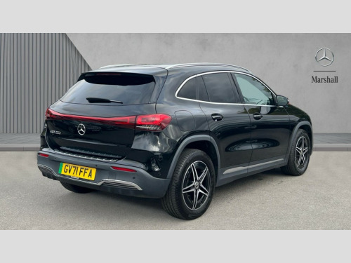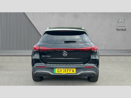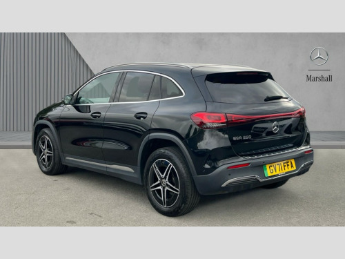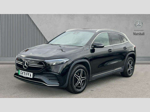 Mercedes-Benz Eqa EQA 250 140kW AMG Line 66.5kWh 5dr Auto Acoustic ambient protection, DYNAMIC SELECT with a choice of driving modes (max range, ECO, comfort and sport), Easy-pack tailgate, EQ navigation services - map (range display), display charging stations, programming of charging settings and pre entry climate control, Hard-disk navigation, Mercedes Benz emergency call system, Mercedes me connect, Service indicator, Smartphone integration with Apple CarPlay and Android auto, Trip computer, 100KW DC onboard charger, 11KW onboard charger, Charging cable for domestic plug socket, Type G (Mode 2) 5m, Charging cable for wall box and public charging station - Type 2(mode 3) 5m, Combined charging system CCS-2 connector, Comfort suspension, DAB Digital radio, MBUX multimedia system with 10" Digital instrument cluster and 10" media display with touchscreen, Mercedes benz sound system, 3rd brake light, AMG Line bodystyling including AMG front apron with integrated air curtain and AMG rear apron with diffusor optics, Black panel radiator grille with twin blade design in chrome, Body colour bumpers, Daytime running lights, Electric front windows, Electric rear windows, Front and rear LED light band, Front fog lights, LED High performance headlamps with adaptive highbeam assist, Polished aluminium roof rails, Privacy glass - heat insulating dark tinted glass, Rain sensor windscreen wipers, Rear wing door, Rear wiper, Surround lighting with projection of brand logo, 3 seat bench in 2nd row, 3 spoke AMG multifunction sports flat bottom steering wheel in nappa leather with galvanised shift paddles, 40:20:40 split folding rear seats, Ambient lighting with choice of 64 colour settings, AMG brushed stainless steel sports pedals with aluminium rubber studs, AMG sports seats, Artico man-made leather/ Dinamica microfiber upholstery, Double Cupholder, Front and rear head restraints, Heated front seats, Illuminated door sills with EQA lettering, Reach and rake adjustable steering column, Rear armrest with storage + through load, Roof lining - Black fabric, Single front passenger seat, Stowage compartment with retractable cover, THERMOTRONIC automatic climate control, Velour floor mats with AMG lettering, Interior light package - EQA, Mirror package - EQA, Parking package with reversing camera - EQA, Seat comfort pack - EQA, Stowage package - EQA, 3 rear seatbelts, 6 airbags - Driver, front passenger, curtain and side airbags, ABS, Child locks on rear doors, ESP, Isofix child seat anchor points on outer rear seats, Knee bags, Radar-based recuperation, Remote central locking, Urban guard vehicle protection, Light longitudinal grain aluminium trim painted, 18" AMG 5 spoke light alloy wheels, Summer tyres, Tirefit