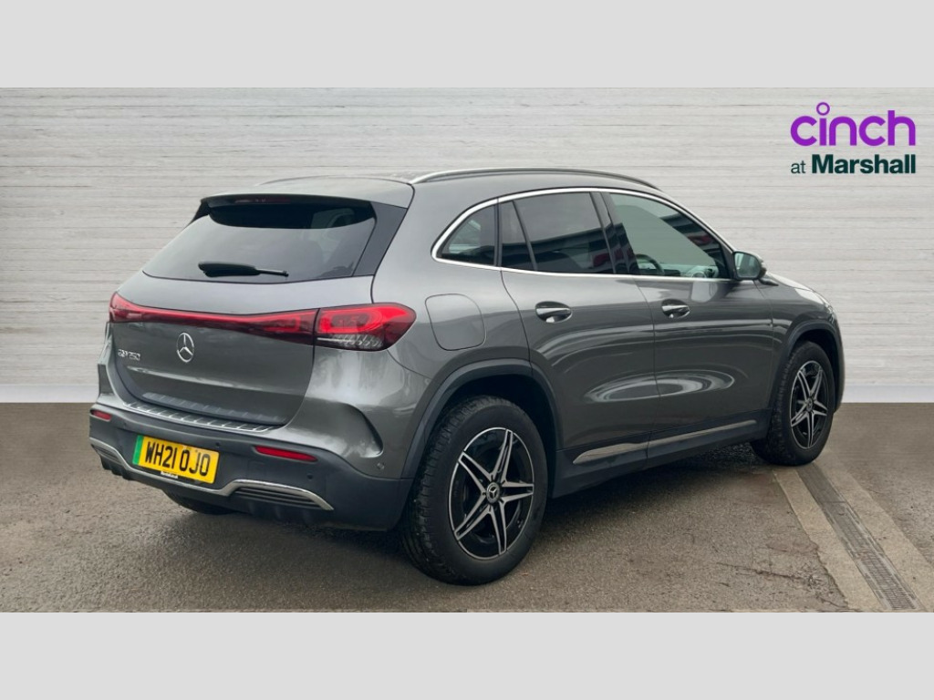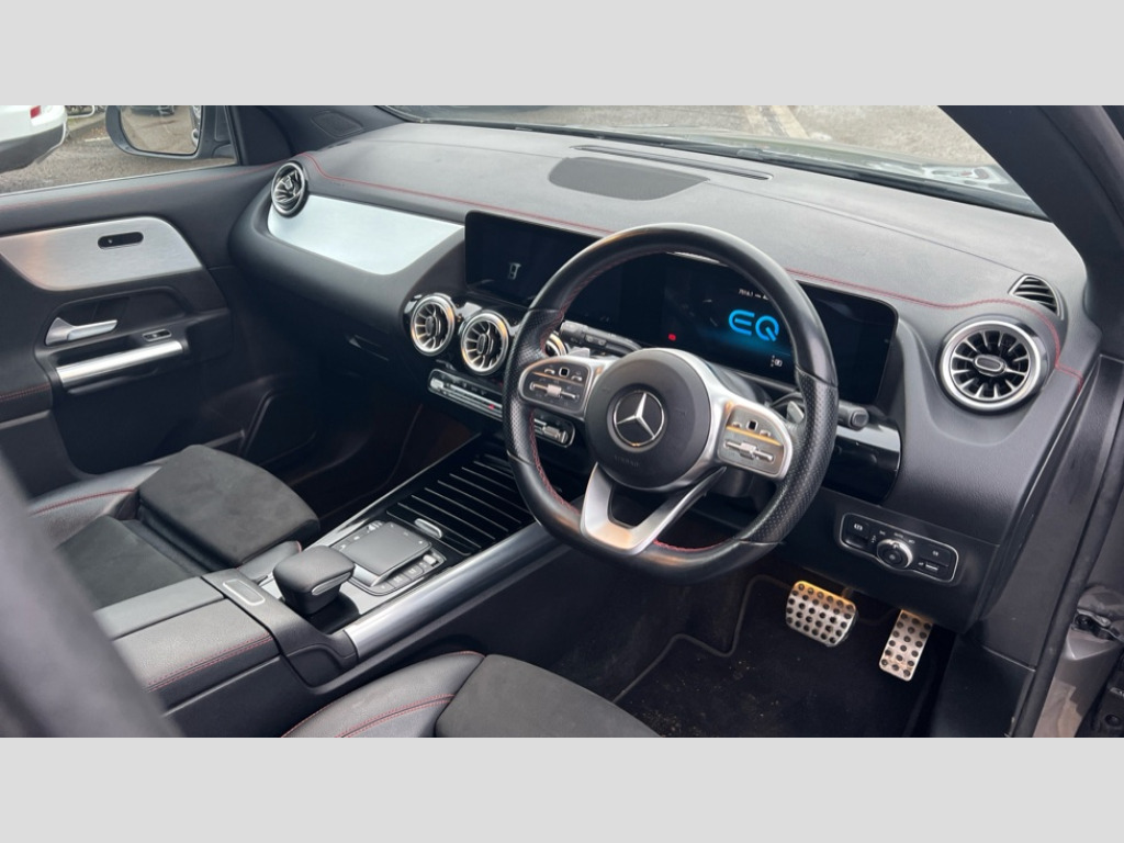 Mercedes-Benz Eqa EQA 250 140kW AMG Line 66.5kWh 5dr Auto Acoustic ambient protection, DYNAMIC SELECT with a choice of driving modes (max range, ECO, comfort and sport), Easy-pack tailgate, EQ navigation services - map (range display), display charging stations, programming of charging settings and pre entry climate control, Hard-disk navigation, Mercedes Benz emergency call system, Mercedes me connect, Service indicator, Smartphone integration with Apple CarPlay and Android auto, Trip computer, 100KW DC onboard charger, 11KW onboard charger, Charging cable for domestic plug socket, Type G (Mode 2) 5m, Charging cable for wall box and public charging station - Type 2(mode 3) 5m, Combined charging system CCS-2 connector, Comfort suspension, DAB Digital radio, MBUX multimedia system with 10" Digital instrument cluster and 10" media display with touchscreen, Mercedes benz sound system, AMG Line bodystyling including AMG front apron with integrated air curtain and AMG rear apron with diffusor optics, Auto dimming interior mirror, Badge on the wing in high-gloss black with blue EQA lettering, Black panel radiator grille with twin blade design in chrome, Body colour bumpers, Electric front windows, Electric rear windows, Front and rear LED light band, Front fog lights, LED High performance headlamps with adaptive highbeam assist, Polished aluminium roof rails, Privacy glass - heat insulating dark tinted glass, Rain sensor windscreen wipers, Rear wiper, Surround lighting with projection of brand logo, 3 spoke AMG multifunction sports flat bottom steering wheel in nappa leather with galvanised shift paddles, 40:20:40 split folding rear seats, Ambient lighting with choice of 64 colour settings, AMG brushed stainless steel sports pedals with aluminium rubber studs, AMG sports seats, Artico man-made leather/ Dinamica microfiber upholstery, Double Cupholder, Front and rear head restraints, Heated front seats, Illuminated door sills with EQA lettering, Reach and rake adjustable steering column, Rear armrest with storage + through load, Roof lining - Black fabric, Stowage compartment with retractable cover, THERMOTRONIC automatic climate control, Velour floor mats with AMG lettering, Interior light package - EQA, Mirror package - EQA, Parking package with reversing camera - EQA, Seat comfort pack - EQA, Stowage package - EQA, 3 rear seatbelts, 6 airbags - Driver, front passenger, curtain and side airbags, ABS, ESP, Isofix child seat anchor points on outer rear seats, Knee bags, Radar-based recuperation, Remote central locking, Urban guard vehicle protection, Light longitudinal grain aluminium trim painted, 18" AMG 5 spoke light alloy wheels, Summer tyres, Tirefit