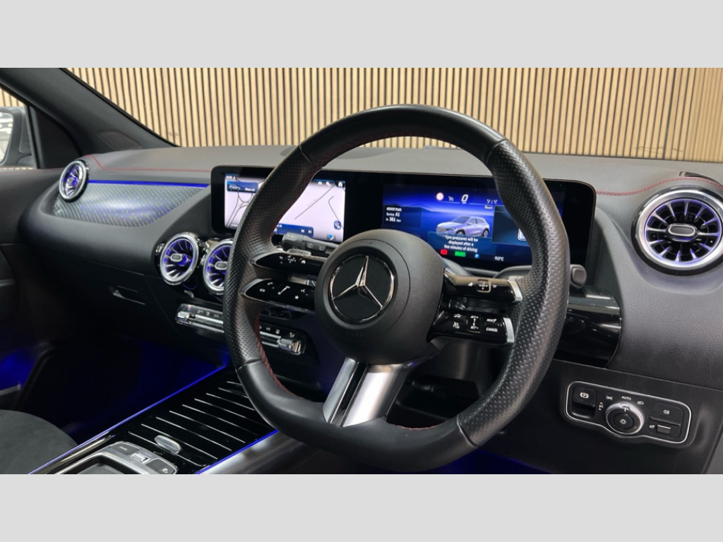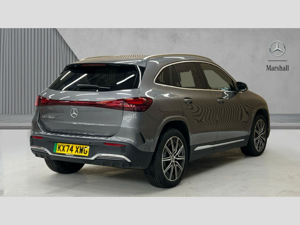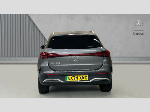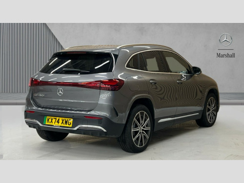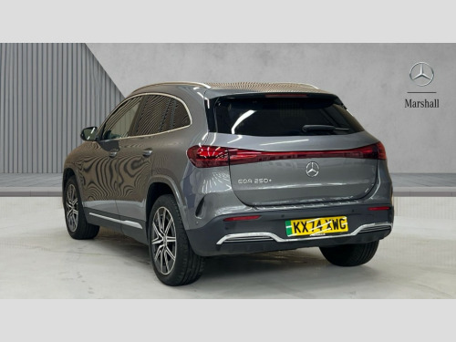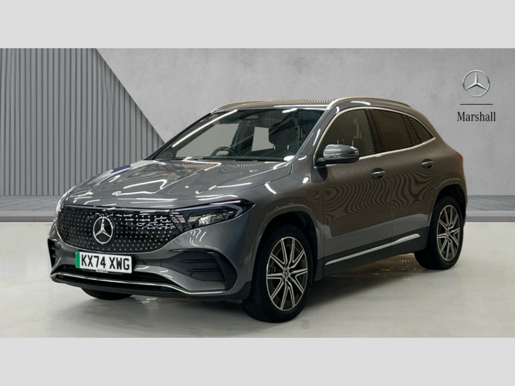 Mercedes-Benz Eqa EQA 250+ 140kW AMG Line Executive 70.5kWh 5dr Auto Acoustic ambient protection, DYNAMIC SELECT with a choice of driving modes (max range, ECO, comfort and sport), Easy-pack tailgate, EQ navigation services - map (range display), display charging stations, programming of charging settings and pre entry climate control, Hard-disk navigation, Mercedes Benz emergency call system, Mercedes me connect, PAS, Service indicator, Smartphone integration with Apple CarPlay and Android auto, Trip computer, 100KW DC onboard charger, 11KW onboard charger, Charging cable for wall box and public charging station - Type 2(mode 3) 5m, Combined charging system CCS-2 connector, Comfort suspension with ride height lowering, DAB Digital radio, MBUX multimedia system with 10" Digital instrument cluster and 10" media display with touchscreen, Mercedes-Benz sound system, 3rd brake light, AMG Line bodystyling including AMG front apron with integrated air curtain and AMG rear apron with diffusor optics, Body colour bumpers, Daytime running lights, Electric front windows, Electric rear windows, Electrically adjustable door mirrors, Front and rear LED light band, Front fog lights, Grille with star pattern in chrome, Heated door mirrors, LED High performance headlamps with adaptive highbeam assist, Polished aluminium roof rails, Privacy glass - heat insulating dark tinted glass, Rain sensor windscreen wipers, Rear side wing doors, Rear wiper, Wheel arch liners in the colour of the vehicle, 3 seat bench in 2nd row, 3 spoke AMG multifunction sports flat bottom steering wheel in nappa leather with galvanised shift paddles, 40:20:40 split folding rear seats, Ambient lighting with choice of 64 colour settings, AMG brushed stainless steel sports pedals with aluminium rubber studs, AMG floor mats, AMG sports seats, Double Cupholder, Fluorescent jacket, Front and rear head restraints, Heated front seats, Illuminated door sills with EQA lettering, Reach and rake adjustable steering column, Rear armrest with storage + through load, Roof lining - Black fabric, Single front passenger seat, Stowage compartment with retractable cover, THERMATIC automatic climate control, Interior light package - EQA, Mirror package without dimming interior and drivers exterior mirrors- EQA, Parking package with reversing camera - EQA, Seat comfort pack - EQA, Stowage package - EQA, 3 rear seatbelts, 6 airbags - Driver, front passenger, curtain and side airbags, ABS, Child locks on rear doors, Electric parking brake, ESP, Front passenger airbag deactivation, Isofix child seat anchor points on outer rear seats, Knee bags, Radar-based recuperation, Guard 360 degree vehicle protection, Keyless entry, Remote central locking, Backlit star pattern trim, 19" AMG 10 spoke light alloy wheels aerodynamically optimised painted in high gloss black with high sheen finish, Summer tyres, Tirefit