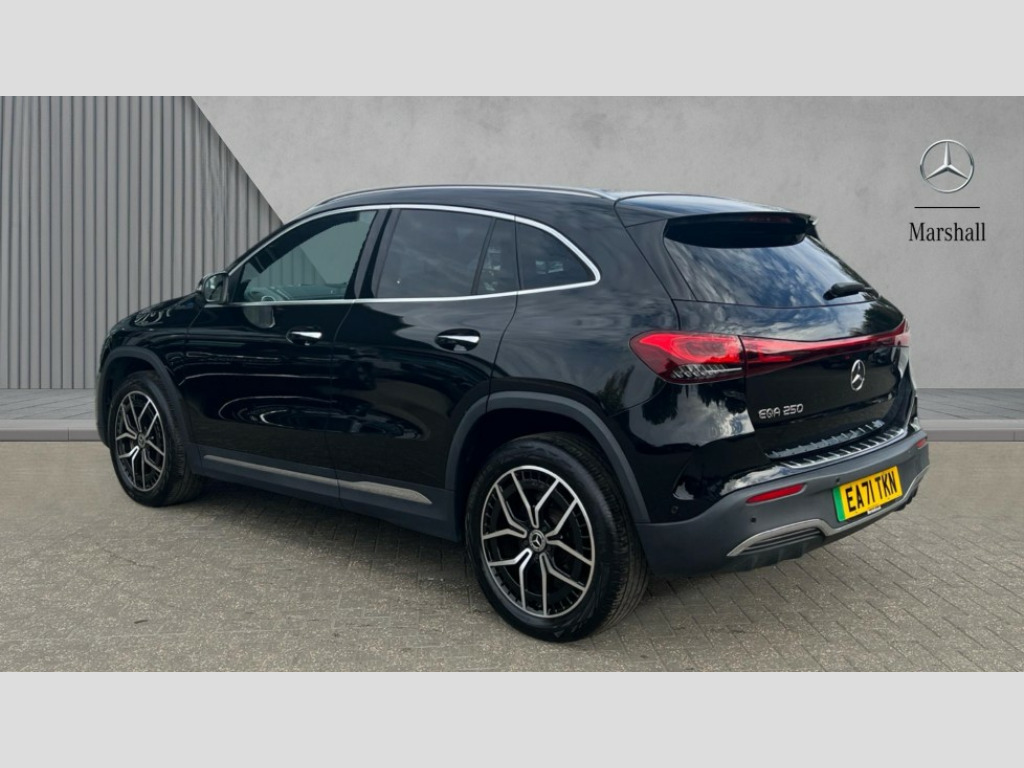 Mercedes-Benz Eqa EQA 250 140kW AMG Line Premium 66.5kWh 5dr Auto Acoustic ambient protection, DYNAMIC SELECT with a choice of driving modes (max range, ECO, comfort and sport), Easy-pack tailgate, EQ navigation services - map (range display), display charging stations, programming of charging settings and pre entry climate control, Hard-disk navigation, Mercedes Benz emergency call system, Mercedes me connect, Service indicator, Smartphone integration with Apple CarPlay and Android auto, Trip computer, Wireless charging system for mobile devices, 100KW DC onboard charger, 11KW onboard charger, Charging cable for domestic plug socket, Type G (Mode 2) 5m, Charging cable for wall box and public charging station - Type 2(mode 3) 5m, Combined charging system CCS-2 connector, Comfort suspension, Advanced sound system with 10 speakers and a total system output of 225 watts, DAB Digital radio, MBUX multimedia system with 10" Digital instrument cluster and 10" media display with touchscreen, 3rd brake light, AMG Line bodystyling including AMG front apron with integrated air curtain and AMG rear apron with diffusor optics, Black panel radiator grille with twin blade design in chrome, Body colour bumpers, Daytime running lights, Electric front windows, Electric rear windows, Electrically operated panoramic glass sunroof, Front and rear LED light band, Front fog lights, LED High performance headlamps with adaptive highbeam assist, Polished aluminium roof rails, Privacy glass - heat insulating dark tinted glass, Rain sensor windscreen wipers, Rear wing door, Rear wiper, Surround lighting with projection of brand logo, 3 seat bench in 2nd row, 3 spoke AMG multifunction sports flat bottom steering wheel in nappa leather with galvanised shift paddles, 40:20:40 split folding rear seats, Ambient lighting with choice of 64 colour settings, AMG brushed stainless steel sports pedals with aluminium rubber studs, AMG sports seats, Artico man-made leather/ Dinamica microfiber upholstery, Double Cupholder, Front and rear head restraints, Heated front seats, Illuminated door sills with EQA lettering, Reach and rake adjustable steering column, Rear armrest with storage + through load, Roof lining - Black fabric, Single front passenger seat, Stowage compartment with retractable cover, THERMOTRONIC automatic climate control, Velour floor mats with AMG lettering, Interior light package - EQA, Keyless go comfort package - EQA, Mirror package - EQA, Parking package with reversing camera - EQA, Seat comfort pack - EQA, Stowage package - EQA, 3 rear seatbelts, 6 airbags - Driver, front passenger, curtain and side airbags, ABS, Child locks on rear doors, ESP, Isofix child seat anchor points on outer rear seats, Knee bags, Radar-based recuperation, Remote central locking, Urban guard vehicle protection, Light longitudinal grain aluminium trim painted, 19" AMG 5 twin spoke light alloy wheels, Summer tyres, Tirefit