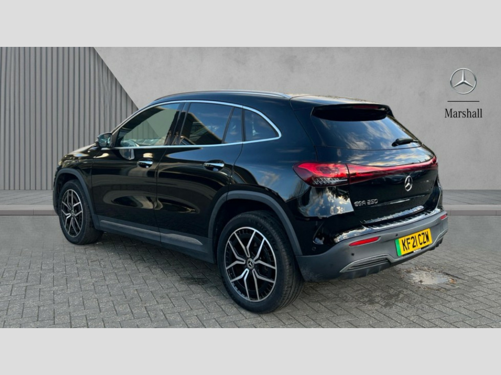 Mercedes-Benz Eqa EQA 250 140kW AMG Line Premium 66.5kWh 5dr Auto Acoustic ambient protection, DYNAMIC SELECT with a choice of driving modes (max range, ECO, comfort and sport), Easy-pack tailgate, EQ navigation services - map (range display), display charging stations, programming of charging settings and pre entry climate control, Hard-disk navigation, Mercedes Benz emergency call system, Mercedes me connect, Service indicator, Smartphone integration with Apple CarPlay and Android auto, Trip computer, Wireless charging system for mobile devices, 100KW DC onboard charger, 11KW onboard charger, Charging cable for domestic plug socket, Type G (Mode 2) 5m, Charging cable for wall box and public charging station - Type 2(mode 3) 5m, Combined charging system CCS-2 connector, Comfort suspension, DAB Digital radio, MBUX multimedia system with 10" Digital instrument cluster and 10" media display with touchscreen, Mercedes Benz advanced sound system, AMG Line bodystyling including AMG front apron with integrated air curtain and AMG rear apron with diffusor optics, Auto dimming interior mirror, Black panel radiator grille with twin blade design in chrome, Body colour bumpers, Electric front windows, Electric rear windows, Electric sliding sunroof, Front and rear LED light band, Front fog lights, LED High performance headlamps with adaptive highbeam assist, Polished aluminium roof rails, Privacy glass - heat insulating dark tinted glass, Rain sensor windscreen wipers, Rear wiper, Surround lighting with projection of brand logo, 3 spoke AMG multifunction sports flat bottom steering wheel in nappa leather with galvanised shift paddles, 40:20:40 split folding rear seats, Ambient lighting with choice of 64 colour settings, AMG brushed stainless steel sports pedals with aluminium rubber studs, AMG sports seats, Artico man-made leather/ Dinamica microfiber upholstery, Double Cupholder, Front and rear head restraints, Heated front seats, Illuminated door sills with EQA lettering, Reach and rake adjustable steering column, Rear armrest with storage + through load, Roof lining - Black fabric, Stowage compartment with retractable cover, THERMOTRONIC automatic climate control, Velour floor mats with AMG lettering, Interior light package - EQA, Keyless go comfort package - EQA, Mirror package - EQA, Parking package with reversing camera - EQA, Seat comfort pack - EQA, Stowage package - EQA, 3 rear seatbelts, 6 airbags - Driver, front passenger, curtain and side airbags, ABS, ESP, Isofix child seat anchor points on outer rear seats, Knee bags, Radar-based recuperation, Remote central locking, Urban guard vehicle protection, Light longitudinal grain aluminium trim painted, 19" AMG 5 twin spoke light alloy wheels, Summer tyres, Tirefit