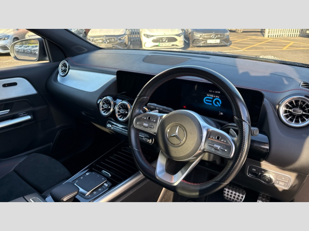 Mercedes-Benz Eqa EQA 250 140kW AMG Line Premium 66.5kWh 5dr Auto Acoustic ambient protection, DYNAMIC SELECT with a choice of driving modes (max range, ECO, comfort and sport), Easy-pack tailgate, EQ navigation services - map (range display), display charging stations, programming of charging settings and pre entry climate control, Hard-disk navigation, Mercedes Benz emergency call system, Mercedes me connect, Service indicator, Smartphone integration with Apple CarPlay and Android auto, Trip computer, Wireless charging system for mobile devices, 100KW DC onboard charger, 11KW onboard charger, Charging cable for domestic plug socket, Type G (Mode 2) 5m, Charging cable for wall box and public charging station - Type 2(mode 3) 5m, Combined charging system CCS-2 connector, Comfort suspension, DAB Digital radio, MBUX multimedia system with 10" Digital instrument cluster and 10" media display with touchscreen, Mercedes Benz advanced sound system, AMG Line bodystyling including AMG front apron with integrated air curtain and AMG rear apron with diffusor optics, Auto dimming interior mirror, Black panel radiator grille with twin blade design in chrome, Body colour bumpers, Electric front windows, Electric rear windows, Electric sliding sunroof, Front and rear LED light band, Front fog lights, LED High performance headlamps with adaptive highbeam assist, Polished aluminium roof rails, Privacy glass - heat insulating dark tinted glass, Rain sensor windscreen wipers, Rear wiper, Surround lighting with projection of brand logo, 3 spoke AMG multifunction sports flat bottom steering wheel in nappa leather with galvanised shift paddles, 40:20:40 split folding rear seats, Ambient lighting with choice of 64 colour settings, AMG brushed stainless steel sports pedals with aluminium rubber studs, AMG sports seats, Artico man-made leather/ Dinamica microfiber upholstery, Double Cupholder, Front and rear head restraints, Heated front seats, Illuminated door sills with EQA lettering, Reach and rake adjustable steering column, Rear armrest with storage + through load, Roof lining - Black fabric, Stowage compartment with retractable cover, THERMOTRONIC automatic climate control, Velour floor mats with AMG lettering, Interior light package - EQA, Keyless go comfort package - EQA, Mirror package - EQA, Parking package with reversing camera - EQA, Seat comfort pack - EQA, Stowage package - EQA, 3 rear seatbelts, 6 airbags - Driver, front passenger, curtain and side airbags, ABS, ESP, Isofix child seat anchor points on outer rear seats, Knee bags, Radar-based recuperation, Remote central locking, Urban guard vehicle protection, Light longitudinal grain aluminium trim painted, 19" AMG 5 twin spoke light alloy wheels, Summer tyres, Tirefit