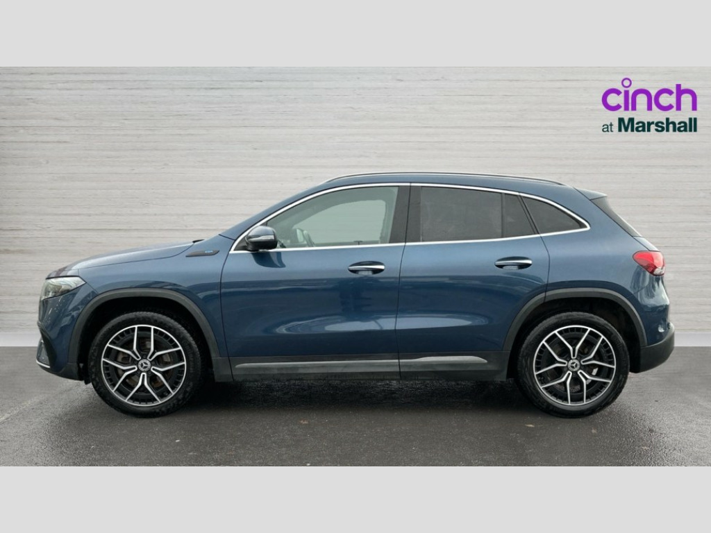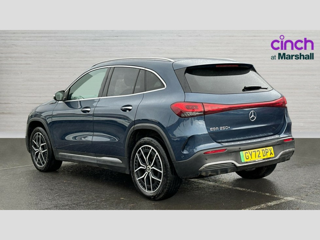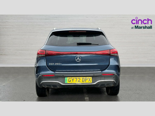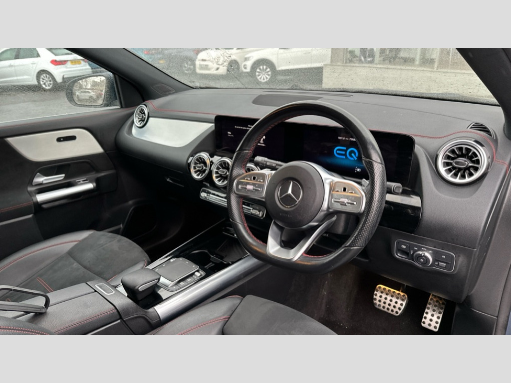 Mercedes-Benz Eqa EQA 250+ 140kW AMG Line Premium 70.5kWh 5dr Auto Acoustic ambient protection, Active lane keeping assist, Active speed limit assist, Blind spot assist with exit warning function, Cruise control, DYNAMIC SELECT with a choice of driving modes (max range, ECO, comfort and sport), Easy-pack tailgate, EQ navigation services - map (range display), display charging stations, programming of charging settings and pre entry climate control, Hard-disk navigation, MBUX augmented reality for navigation, Mercedes Benz emergency call system, Mercedes me connect, PAS, Service indicator, Smartphone integration with Apple CarPlay and Android auto, Trip computer, Wireless charging system for mobile devices, 100KW DC onboard charger, 11KW onboard charger, Charging cable for wall box and public charging station - Type 2(mode 3) 5m, Combined charging system CCS-2 connector, Comfort suspension, Advanced sound system with 10 speakers and a total system output of 225 watts, DAB Digital radio, MBUX multimedia system with 10" Digital instrument cluster and 10" media display with touchscreen, 3rd brake light, AMG Line bodystyling including AMG front apron with integrated air curtain and AMG rear apron with diffusor optics, Black panel radiator grille with twin blade design in chrome, Body colour bumpers, Body colour roof spoiler, Daytime running lights, Electric front windows, Electric rear windows, Electrically adjustable door mirrors, Electrically operated panoramic glass sunroof, Front and rear LED light band, Front fog lights, LED High performance headlamps with adaptive highbeam assist, Polished aluminium roof rails, Privacy glass - heat insulating dark tinted glass, Rain sensor windscreen wipers, Rear side wing doors, Rear wing door, Rear wiper, Surround lighting with projection of brand logo, 3 seat bench in 2nd row, 3 spoke AMG multifunction sports flat bottom steering wheel in nappa leather with galvanised shift paddles, 40:20:40 split folding rear seats, Ambient lighting with choice of 64 colour settings, AMG brushed stainless steel sports pedals with aluminium rubber studs, AMG sports seats, ARTICO man-made leather / MICROCUT microfibre upholstery, Double Cupholder, Front and rear head restraints, Front centre armrest, Front cigarette lighter, Heated front seats, Illuminated door sills with EQA lettering, Reach and rake adjustable steering column, Rear armrest with storage + through load, Roof lining - Black fabric, Single front passenger seat, Stowage compartment with retractable cover, THERMOTRONIC automatic climate control, Velour floor mats with AMG lettering, Interior light package - EQA, Keyless go comfort package - EQA, Mirror package without dimming interior and drivers exterior mirrors- EQA, Parking package with reversing camera - EQA, Seat comfort pack - EQA, Stowage package - EQA, 3 rear seatbelts, 6 airbags - Driver, front passenger, curtain and side airbags, ABS, Active brake assist, Child locks on rear doors, Electric parking brake, ESP, Front passenger airbag deactivation, Isofix child seat anchor points on outer rear seats, Knee bags, Radar-based recuperation, Seatbelt warning, Guard 360 degree vehicle protection, Remote central locking, Light longitudinal grain aluminium trim painted, 19" AMG 5 twin spoke light alloy wheels, Summer tyres, Tirefit