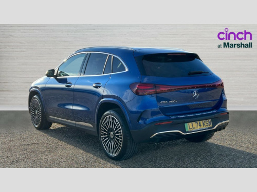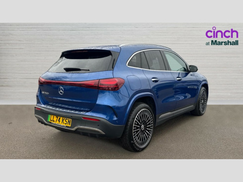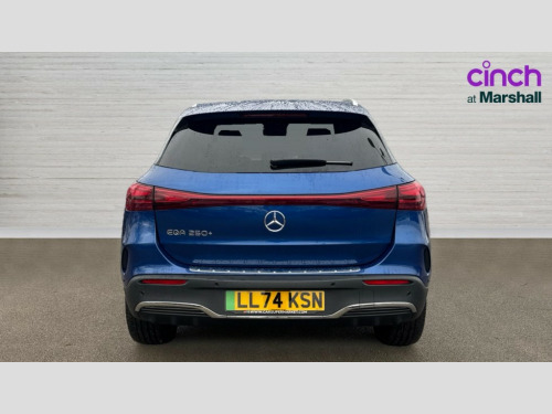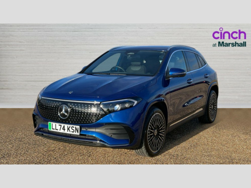 Mercedes-Benz Eqa EQA 250+ 140kW AMG Line Premium 70.5kWh 5dr Auto Acoustic ambient protection, DYNAMIC SELECT with a choice of driving modes (max range, ECO, comfort and sport), Easy-pack tailgate, EQ navigation services - map (range display), display charging stations, programming of charging settings and pre entry climate control, Finger print scanner, Hard-disk navigation, Mercedes Benz emergency call system, Mercedes me connect, PAS, Service indicator, Smartphone integration with Apple CarPlay and Android auto, Trip computer, Wireless charging system for mobile devices, 100KW DC onboard charger, 11KW onboard charger, Charging cable for wall box and public charging station - Type 2(mode 3) 5m, Combined charging system CCS-2 connector, Comfort suspension with ride height lowering, Advanced sound system with 10 speakers and a total system output of 225 watts, DAB Digital radio, MBUX multimedia system with 10" Digital instrument cluster and 10" media display with touchscreen, 3rd brake light, AMG Line bodystyling including AMG front apron with integrated air curtain and AMG rear apron with diffusor optics, Body colour bumpers, Daytime running lights, Electric front windows, Electric rear windows, Electrically adjustable door mirrors, Front and rear LED light band, Front fog lights, Grille with star pattern in chrome, Heated door mirrors, LED High performance headlamps with adaptive highbeam assist, Polished aluminium roof rails, Privacy glass - heat insulating dark tinted glass, Rain sensor windscreen wipers, Rear side wing doors, Rear wiper, Wheel arch liners in the colour of the vehicle, 3 seat bench in 2nd row, 3 spoke AMG multifunction sports flat bottom steering wheel in nappa leather with galvanised shift paddles, 40:20:40 split folding rear seats, Ambient lighting with choice of 64 colour settings, AMG brushed stainless steel sports pedals with aluminium rubber studs, AMG floor mats, AMG sports seats, Double Cupholder, Fluorescent jacket, Front and rear head restraints, Heated front seats, Illuminated door sills with EQA lettering, Reach and rake adjustable steering column, Rear armrest with storage + through load, Roof lining - Black fabric, Single front passenger seat, Stowage compartment with retractable cover, THERMOTRONIC automatic climate control, Interior light package - EQA, Keyless go comfort package - EQA, Mirror package without dimming interior and drivers exterior mirrors- EQA, Parking package with 360 degree camera - EQA, Seat comfort pack - EQA, Stowage package - EQA, 3 rear seatbelts, 6 airbags - Driver, front passenger, curtain and side airbags, ABS, Child locks on rear doors, Electric parking brake, ESP, Front passenger airbag deactivation, Isofix child seat anchor points on outer rear seats, Knee bags, Radar-based recuperation, Guard 360 degree vehicle protection, Hands free access, Remote central locking, Light longitudinal grain aluminium trim painted, 20" AMG multi spoke alloy wheels aerodynamically optimised painted in high gloss black with high sheen finish, Summer tyres, Tirefit