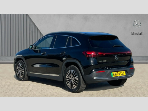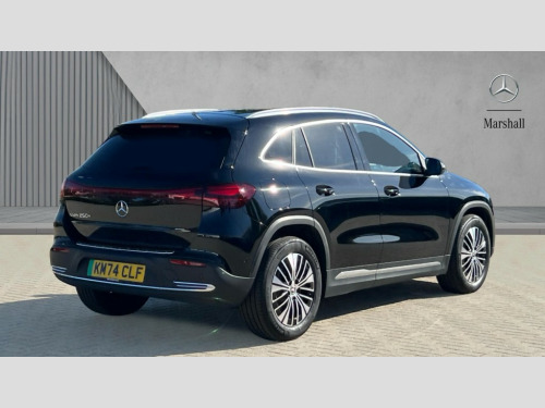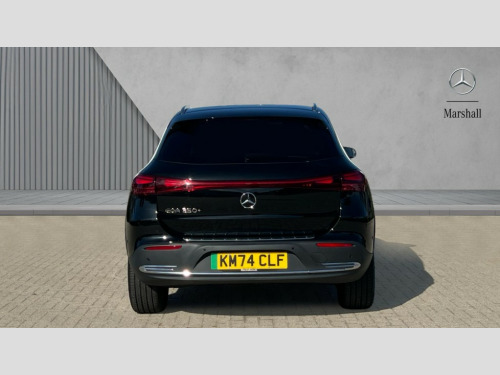 Mercedes-Benz Eqa EQA 250+ 140kW Sport Executive 70.5kWh 5dr Auto Acoustic ambient protection, DYNAMIC SELECT with a choice of driving modes (max range, ECO, comfort and sport), Easy-pack tailgate, EQ navigation services - map (range display), display charging stations, programming of charging settings and pre entry climate control, Hard-disk navigation, Mercedes Benz emergency call system, Mercedes me connect, PAS, Service indicator, Smartphone integration with Apple CarPlay and Android auto, Trip computer, 100KW DC onboard charger, 11KW onboard charger, Charging cable for wall box and public charging station - Type 2(mode 3) 5m, Combined charging system CCS-2 connector, Comfort suspension with ride height lowering, DAB Digital radio, MBUX multimedia system with 10" Digital instrument cluster and 10" media display with touchscreen, Mercedes-Benz sound system, 3rd brake light, Body colour bumpers, Daytime running lights, Electric front windows, Electric rear windows, Electrically adjustable door mirrors, Front and rear LED light band, Front fog lights, Heated door mirrors, LED High performance headlamps with adaptive highbeam assist, Polished aluminium roof rails, Privacy glass - heat insulating dark tinted glass, Rain sensor windscreen wipers, Rear side wing doors, Rear wiper, 3 seat bench in 2nd row, 3 spoke multifunction sport steering wheel in ARTICO man made leather, 40:20:40 split folding rear seats, Ambient lighting with choice of 64 colour settings, Artico man-made leather upholstery, Double Cupholder, Fluorescent jacket, Front and rear head restraints, Gearshift paddles on steering wheel, Heated front seats, Reach and rake adjustable steering column, Rear armrest with storage + through load, Roof lining - Black fabric, Single front passenger seat, Stowage compartment with retractable cover, THERMATIC automatic climate control, Velour floor mats, Interior light package - EQA, Mirror package without dimming interior and drivers exterior mirrors- EQA, Parking package with reversing camera - EQA, Seat comfort pack - EQA, Stowage package - EQA, 3 rear seatbelts, 6 airbags - Driver, front passenger, curtain and side airbags, ABS, Child locks on rear doors, Electric parking brake, ESP, Front passenger airbag deactivation, Isofix child seat anchor points on outer rear seats, Knee bags, Radar-based recuperation, Guard 360 degree vehicle protection, Remote central locking, Star pattern trim elements, 18" Multi spoke light alloy wheels aerodynamically optimised painted in black with high sheen finish, Summer tyres, Tirefit