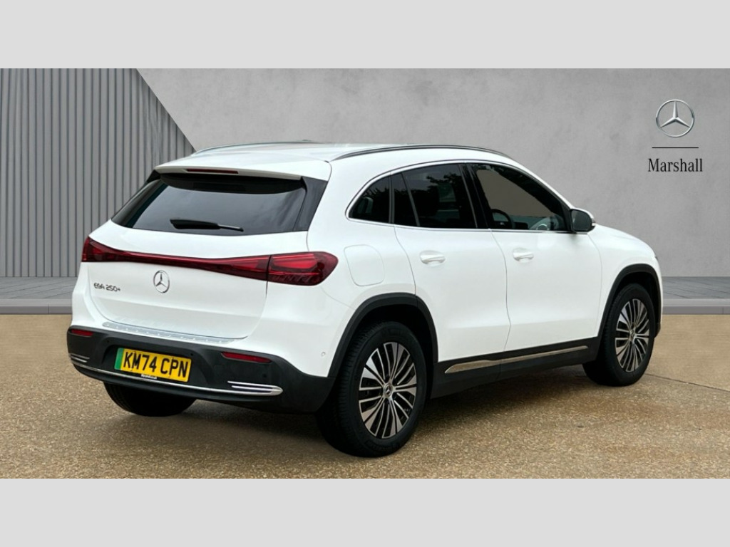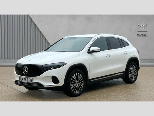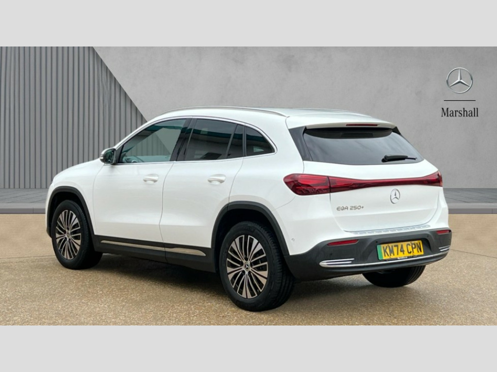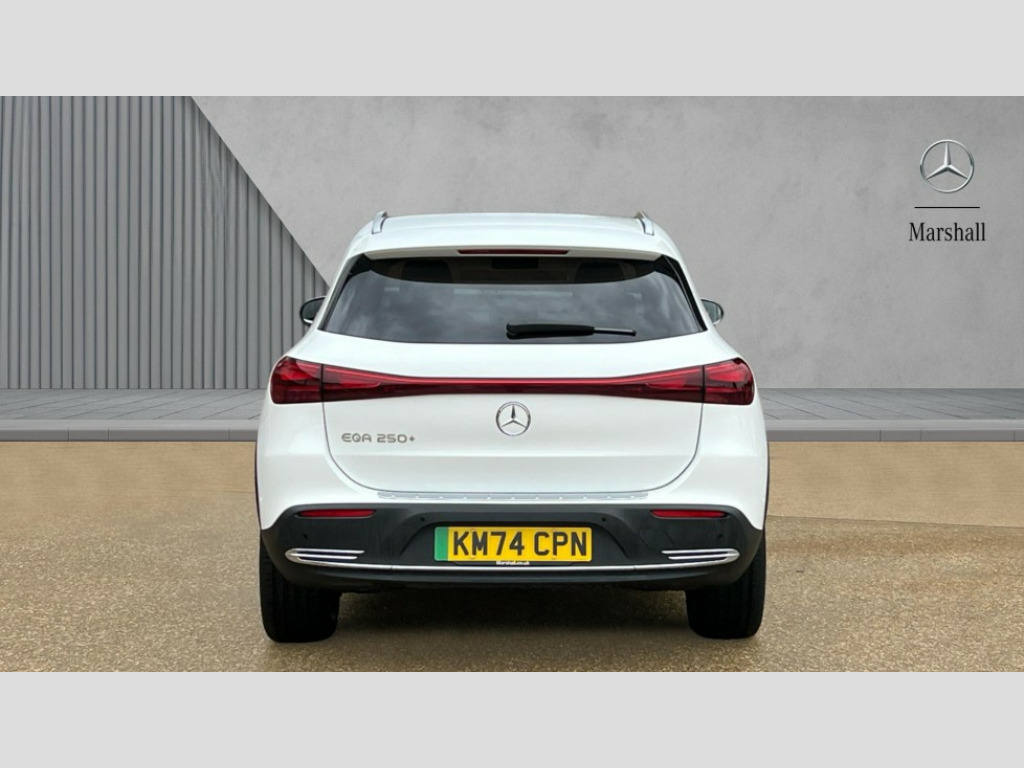 Mercedes-Benz Eqa EQA 250+ 140kW Sport Executive 70.5kWh 5dr Auto Acoustic ambient protection, DYNAMIC SELECT with a choice of driving modes (max range, ECO, comfort and sport), Easy-pack tailgate, EQ navigation services - map (range display), display charging stations, programming of charging settings and pre entry climate control, Hard-disk navigation, Mercedes Benz emergency call system, Mercedes me connect, PAS, Service indicator, Smartphone integration with Apple CarPlay and Android auto, Trip computer, 100KW DC onboard charger, 11KW onboard charger, Charging cable for wall box and public charging station - Type 2(mode 3) 5m, Combined charging system CCS-2 connector, Comfort suspension with ride height lowering, DAB Digital radio, MBUX multimedia system with 10" Digital instrument cluster and 10" media display with touchscreen, Mercedes-Benz sound system, 3rd brake light, Body colour bumpers, Daytime running lights, Electric front windows, Electric rear windows, Electrically adjustable door mirrors, Front and rear LED light band, Front fog lights, Heated door mirrors, LED High performance headlamps with adaptive highbeam assist, Polished aluminium roof rails, Privacy glass - heat insulating dark tinted glass, Rain sensor windscreen wipers, Rear side wing doors, Rear wiper, 3 seat bench in 2nd row, 3 spoke multifunction sport steering wheel in ARTICO man made leather, 40:20:40 split folding rear seats, Ambient lighting with choice of 64 colour settings, Artico man-made leather upholstery, Double Cupholder, Fluorescent jacket, Front and rear head restraints, Gearshift paddles on steering wheel, Heated front seats, Reach and rake adjustable steering column, Rear armrest with storage + through load, Roof lining - Black fabric, Single front passenger seat, Stowage compartment with retractable cover, THERMATIC automatic climate control, Velour floor mats, Interior light package - EQA, Mirror package without dimming interior and drivers exterior mirrors- EQA, Parking package with reversing camera - EQA, Seat comfort pack - EQA, Stowage package - EQA, 3 rear seatbelts, 6 airbags - Driver, front passenger, curtain and side airbags, ABS, Child locks on rear doors, Electric parking brake, ESP, Front passenger airbag deactivation, Isofix child seat anchor points on outer rear seats, Knee bags, Radar-based recuperation, Guard 360 degree vehicle protection, Remote central locking, Star pattern trim elements, 18" Multi spoke light alloy wheels aerodynamically optimised painted in black with high sheen finish, Summer tyres, Tirefit