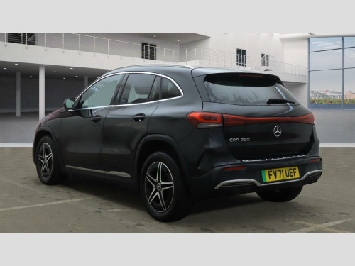 VIEW BY APPOINTMENT PLEASE TEL 01617248877 TODAY, LOW MILEAGE LUXURY PRESTIG EXECUTIVE SPACIOUS ECONOMICAL ELECTRIC SPORTS SUV IN GLEAMING SHOWROOM CONDITIUON DONT MISS IT EXACT MILEAGE ON REQUEST SALE NOW ON TEL 01617248877 TODAY PCP/HP APPLYNTODAY TEL 01617248877 NOW, This 2022 Mercedes Benz EQA 250 AMG Line is a superb example, having had only one owner since new. As an electric vehicle, it offers a smooth and quiet driving experience, powered by a 73 kWh battery that provides a maximum range of up to 262 miles when new. This EQA 250 AMG Line comes equipped with the desirable AMG Line trim, enhancing its sporty appeal. Notable features include THERMOTRONIC automatic climate control for perfect cabin temperature, a Parking Package with a reversing camera for effortless manoeuvring, and heated front seats for added comfort. Youll also enjoy the Mercedes Benz Sound System for an immersive audio experience and LED High Performance Headlights for excellent visibility. Charging this electric Mercedes Benz is convenient, with a full charge at home using a 7kW charger taking approximately 11 hours and 6 minutes, ideal for overnight top ups. For faster charging on the go, it can reach 80% capacity from empty in just 34 minutes at a compatible public charging station. These specifications, combined with its single owner provenance and comprehensive feature set, position this EQA 250 AMG Line as an excellent choice for those seeking a premium electric vehicle that excels in both comfort and technology.