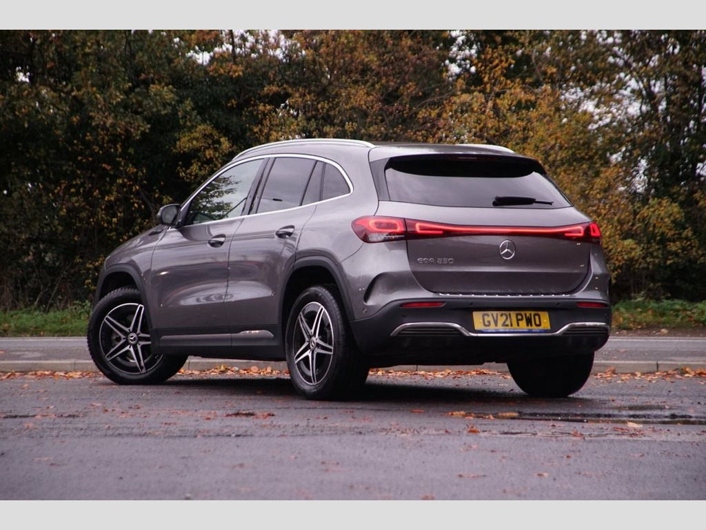 Prestige Car Supermarket in York presents this executive and highly appealing 2021 Mercedes-Benz EQA 250 AMG Line SUV. Finished in optional Mountain Grey metallic paintwork, costing £595.00, and featuring a sporting interior with Black Artico Leather and Dinamica Microfibre with Red Contrast Stitching, this automatic electric SUV delivers a smooth 190 horsepower performance and an excellent range. It rides on 18in AMG Light 5-Spoke alloy wheels and features AMG Line Bodystyling, Polished Aluminium Roof Rails, a Black Panel Radiator Grille, and Dark Tinted Heat Insulating Glass. Illumination is provided by LED High Performance Headlights with Adaptive High Beam Assist and distinctive Front and Rear LED Light Bands. Step inside the highly appointed cabin to find Heated Front Sports Seats, a Sports Multifunction Steering Wheel in Nappa Leather with Galvanised Shift Paddles, and THERMOTRONIC Automatic Climate Control. Technology is cutting-edge with the MBUX Multimedia System, 10in Digital Instrument Cluster, 10in Digital Media Display, and Hard-Disc Navigation. Convenience is a priority with the EASY-PACK Electric Tailgate, Mirror Package, Parking Package with Reversing Camera, and Ambient Lighting with 64 Colours. Safety and driver assistance systems are extensive, including Active Lane Keeping Assist, Blind Spot Assist, and Active Brake Assist, ensuring a secure and well-connected drive. Artico Leather-Dinamica Microfibre - Bla, Mountain Grey, 100kW DC On-Board Charger, 10in Digital Instrument Cluster, 10in Digital Media Display, 11kW On-Board Charger, 18in Alloy Wheels - AMG Light 5-Spoke, ABS - Anti-Lock Braking System, AMG Line Bodystyling, Active Brake Assist, Active Lane Keeping Assist, Active Speed Limit Assist, Airbag - Driver, Airbags - Kneebag, Airbags - Passenger, Ambient Lighting - 64 Colours, Automatically Dimming Rear View Mirror, Black Panel Radiator Grille in a Twin-Bl, Blind Spot Assist with Exit Warning Func, CCS-2 Connector - Combined Charging Syst, Charging Cable for Domestic Plug Socket , Charging Cable for Wallbox and Public Ch, Comfort Suspension, Cruis