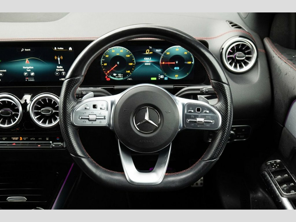 Prestige Car Supermarket in York presents this highly specified and modern 2021 Mercedes-Benz EQA 250 AMG Line SUV. Finished in optional Cosmos Black metallic paintwork, costing £595.00, and featuring a sporting Black Artico Leather and Dinamica Microfibre interior with Red Contrast Stitching and a Black Fabric Roof Lining, this automatic electric SUV delivers 190 horsepower. It rides on 18in AMG Light 5-Spoke alloy wheels and features AMG Line Bodystyling, a Black Panel Radiator Grille in a Twin-Blade Design, and Polished Aluminium Roof Rails. Exterior lighting is distinctive with Front and Rear LED Light Bands and LED High Performance Headlights with Adaptive High Beam Assist. Step inside the premium cabin to find Heated Sports Seats, a Sports Multifunction Steering Wheel in Nappa Leather, and THERMOTRONIC Automatic Climate Control. Technology is exceptional with the twin 10in Digital Instrument Cluster and Media Display screens, Hard-Disc Navigation with EQ Services, MBUX Multimedia System, and Ambient Lighting with 64 Colours. Convenience and safety are paramount with the EASY-PACK Electric Tailgate, Blind Spot Assist, Active Lane Keeping Assist, Parking Package with Reversing Camera, and URBAN GUARD Vehicle Protection, ensuring a secure and well-equipped drive. Artico Leather-Dinamica Microfibre - Bla, Cosmos Black, 100kW DC On-Board Charger, 10in Digital Instrument Cluster, 10in Digital Media Display, 11kW On-Board Charger, 18in Alloy Wheels - AMG Light 5-Spoke, ABS - Anti-Lock Braking System, AMG Line Bodystyling, Active Brake Assist, Active Lane Keeping Assist, Active Speed Limit Assist, Airbag - Driver, Airbags - Kneebag, Airbags - Passenger, Ambient Lighting - 64 Colours, Automatically Dimming Rear View Mirror, Black Panel Radiator Grille in a Twin-Bl, Blind Spot Assist with Exit Warning Func, CCS-2 Connector - Combined Charging Syst, Charging Cable for Domestic Plug Socket , Charging Cable for Wallbox and Public Ch, Comfort Suspension, Cruise