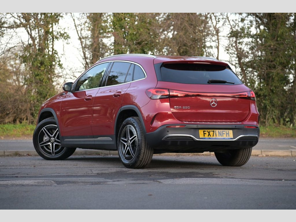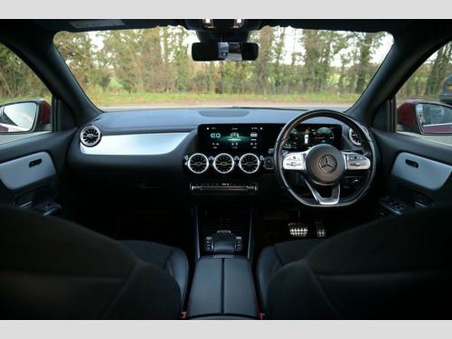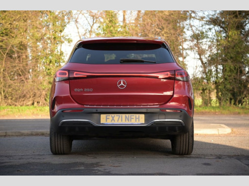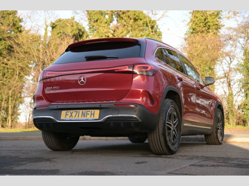 Prestige Car Supermarket in York presents this 2021 Mercedes-Benz EQA 250 AMG Line, a fully electric compact SUV finished in Patagonia Red with black Artico Leather-Dinamica Microfibre upholstery featuring red contrast stitching, delivering 190 ps and equipped with both 100kW DC and 11kW AC on-board charging capability. The AMG Line exterior incorporates 18in AMG light 5-spoke alloy wheels, AMG bodystyling, polished aluminium roof rails, heat-insulating dark tinted glass, LED High Performance headlights with Adaptive High Beam Assist, front and rear LED light bands and a chrome twin-blade black panel grille, with EASY-PACK powered tailgate and rain-sensing wipers adding daily convenience. The technology suite features a 10in digital instrument cluster, 10in digital media display, MBUX multimedia system, DAB radio, hard-disc navigation, EQ navigation services, live traffic, smartphone integration, geofencing, parked vehicle locator, remote status retrieval, remote locking, Send2Car and auxiliary heating/ventilation programming, supported by ambient lighting with 64 colours and illuminated EQA door sills. The cabin delivers heated sports seats, seat comfort package, Nappa leather multifunction steering wheel with galvanised paddles, mirror package, stowage package, retractable-cover centre compartment, rear armrest with through-loading and black fabric roof lining, complemented by light longitudinal-grain aluminium trim. Safety and assistance systems include Active Brake Assist Artico Leather-Dinamica Microfibre - Bla, Patagonia Red, 100kW DC On-Board Charger, 10in Digital Instrument Cluster, 10in Digital Media Display, 11kW On-Board Charger, 18in Alloy Wheels - AMG Light 5-Spoke, ABS - Anti-Lock Braking System, AMG Line Bodystyling, Active Brake Assist, Active Lane Keeping Assist, Active Speed Limit Assist, Airbag - Driver, Airbags - Kneebag, Airbags - Passenger, Ambient Lighting - 64 Colours, Black Panel Radiator Grille in a Twin-Bl, CCS-2 Connector - Combined Charging Syst, Charging Cable for Domestic Plug Socket , Charging Cable for Wallbox and Public Ch, Comfort Suspension, Cruise Control, DAB Digital Radio, Door Sill Panels - Illuminated with EQA , Double Cup