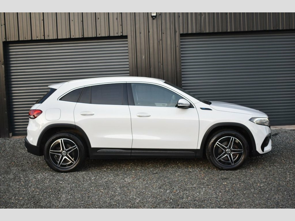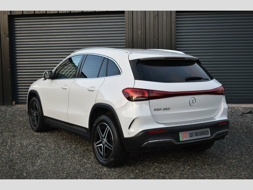 This is a fantastic opportunity to own one of the best looking EQA'S on the market! This model is finished in a white solid exterior. It comes with the 18-inch AMG alloy wheels: with great service history it's been well cared for by its 1 former keeper. The huge specification is listed below: Factory satellite navigation, 360° camera, power tailgate, white mirrors, dynamic sport function, flat bottom multi-function steering wheel, black leather/ Cloth interior, heated seats, DAB radio, Bluetooth telephone & music streaming, onboard computer, steering wheel gear change, cruise control, manual steering column, dual climate control, air conditioning, automatic lights and wipers, ambient lighting, black headlining, electric handbrake, Mercedes me/ apps, power folding mirrors, electric windows x4, Isofix child seat anchors, rear headrests, USB AUX connection, front centre armrest, remote locking alarm, LED running lights, LED high-performance headlights, front & rear parking sensors, silver roof rails, privacy glass, superb example. 100kW DC On-Board Charger, 10in Digital Instrument Cluster, 10in Digital Media Display, 11kW On-Board Charger, 18in Alloy Wheels - AMG Light 5-Spoke, ABS - Anti-Lock Braking System, AMG Line Bodystyling, Active Brake Assist, Active Lane Keeping Assist, Active Speed Limit Assist, Airbag - Driver, Airbags - Kneebag, Airbags - Passenger, Ambient Lighting - 64 Colours, Automatically Dimming Rear View Mirror, Black Panel Radiator Grille in a Twin-Bl, Blind Spot Assist with Exit Warning Func, CCS-2 Connector - Combined Charging Syst, Charging Cable for Domestic Plug Socket , Charging Cable for Wallbox and Public Ch, Comfort Suspension, Cruise Control, DAB Digital Radio, Door Sill Panels - Illumina