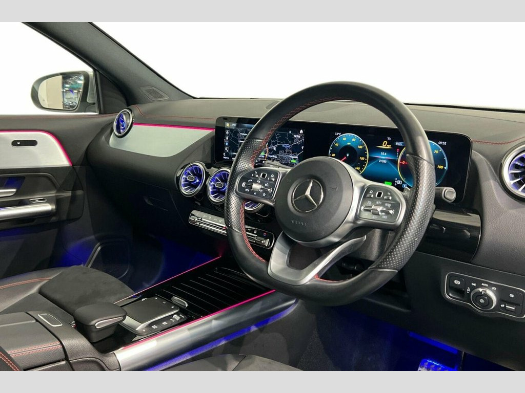 This 2022 Mercedes Benz EQA 250 AMG Line boasts exceptionally low mileage for its age, having covered just 21,275 miles, and benefits from an MOT valid until June 2026 with a clear vehicle history check. As an electric vehicle, it offers a substantial battery total capacity of 73 kWh, providing a maximum range of 262 miles when new. This EQA 250 AMG Line comes equipped with the desirable AMG Line trim, enhancing its sporty appeal. Inside, you will find the Mercedes Benz Sound System for an immersive audio experience, LED High Performance Headlights for excellent visibility, and THERMOTRONIC automatic climate control to ensure comfort in all conditions. Smartphone integration with Android Auto and Apple CarPlay keeps you connected, while heated front seats add an extra touch of luxury. The charging capabilities of this Mercedes Benz EQA are impressive, with a full charge at home using a 7kW charger taking approximately 11 hours and 6 minutes, and the fastest public charging time from empty to 80% achievable in just 34 minutes. These charging times indicate a more convenient ownership experience compared to many other electric vehicles. The combination of its electric powertrain, advanced technology, and the premium AMG Line specification makes this 2022 Mercedes Benz EQA 250 a compelling choice for those seeking a sophisticated and efficient driving experience. 100kW DC On-Board Charger, 10in Digital Instrument Cluster, 10in Digital Media Display, 11kW On-Board Charger, 18in Alloy Wheels - AMG Light 5-Spoke, ABS - Anti-Lock Braking System, Active Brake Assist, Active Lane Keeping Assist, Active Speed Limit Assist, Airbag - Driver, Airbags - Kneebag, Airbags - Passenger, Ambient Lighting - 64 Colours, AMG Line Bodystyling, Artico Leather-Dinamica Microfibre - Bla, Black Panel Radiator Grille in a Twin-Bl, CCS-2 Connector - Combined Charging Syst, Charging Cable for Domestic Plug Socket , Charging Cable for Wallbox and Public Ch, Comfort Suspension, Cruise Control, DAB Digital Radio, Door Sill Panels - Illuminated with EQA , Double Cupholder, Dynamic