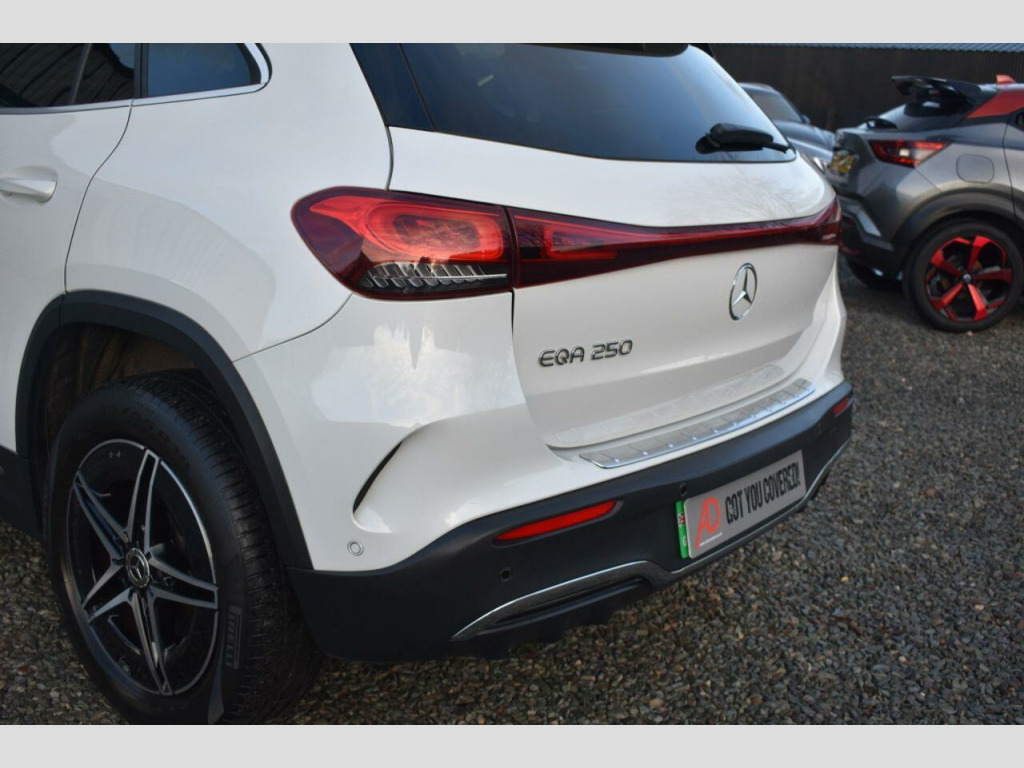 . 100kW DC On-Board Charger, 10in Digital Instrument Cluster, 10in Digital Media Display, 11kW On-Board Charger, 18in Alloy Wheels - AMG Light 5-Spoke, ABS - Anti-Lock Braking System, AMG Line Bodystyling, Active Brake Assist, Active Lane Keeping Assist, Active Speed Limit Assist, Airbag - Driver, Airbags - Kneebag, Airbags - Passenger, Ambient Lighting - 64 Colours, Automatically Dimming Rear View Mirror, Black Panel Radiator Grille in a Twin-Blade Design in Chrome, Blind Spot Assist with Exit Warning Function, CCS-2 Connector - Combined Charging System - Compatible with AC and DC, Charging Cable for Domestic Plug Socket - Type G - Mode 2 - 5m, Charging Cable for Wallbox and Public Charging Stations - Type 2 - Mode 3 - 5m, Comfort Suspension, Cruise Control, DAB Digital Radio, Door Sill Panels - Illuminated with EQA Lettering, Double Cupholder, Dynamic Select, EASY-PACK Electric Tailgate, EQ Navigation Services, Electric Windows - Front, Floor Mats - AMG, Front and Rear LED Light Bands, Geofencing, Hard-Disc Navigation, Headlights - Adaptive High Beam Assist, Heat Insulating Dark Tinted Glass, Heated Front Seats, IONITY 1 Year, Interior Lighting Package, LED High Performance Headlights, Live Traffic Information - Free for the First Three Years, MBUX Multimedia System, Mercedes Me Charge - 3 Years, Mercedes-Benz Emergency Call System, Mercedes-Benz Sound System, Mirror Package, Notification when Exceeding the Road Speed, Parked Vehicle Locator, Parking Damage and Theft Notification, Parking Package with Reversing Camera, Pedals - Aluminium with Rubber Studs, Power Steering - Electric, Programming of Auxiliary Heating - Ventilation, Rear Armrest with Through-Loading Feature, Remote Door Locking and Unlocking, Remote Retrieval of Vehicle Status, Remote Vehicle Finder, Roof Lining - Black Fabric, Roof Rails - Polished Aluminium, Seat Comfort Package, Seats - Sports, Send2Car Function, Smartphone Integration, Steering Wheel - Galvanised Shift Paddles, Steering Wheel - Sports Multifunction in Nappa Leather, Stowage Compartment with Retractable Cover, Stowage Package, Summer Tyres, Surround Lighting with Projection of Brand Logo, THERMOTRONIC - Automatic Climate Control, TIREFIT, Trim - Light Longitudinal-Grain Aluminium, URBAN GUARD Vehicle Protection, Vehicle Set-Up and Vehicle Monitoring - 3 Years, Windscreen Wipers with Rain Sensor.