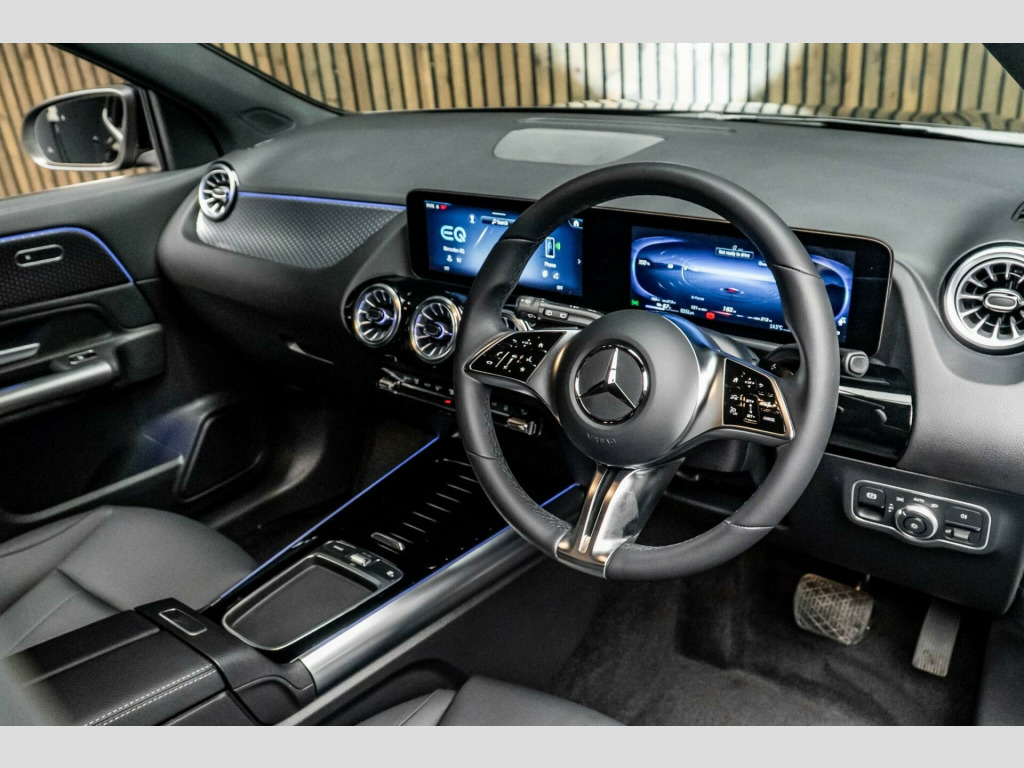 This 2024 Mercedes Benz EQA 250+ Sport (Executive) is a superb example, having covered a mere 3214 miles and boasting a single owner from new. As an all electric vehicle, it offers a substantial battery total capacity of 78 kWh, providing an impressive maximum range of 346 miles when new. This EQA is equipped with LED High Performance Headlights, Smartphone Integration including Android Auto and Apple CarPlay, and a Parking Package with a Reversing Camera for enhanced convenience. You can also enjoy the premium Mercedes Benz Sound System and THERMATIC Climate Control, ensuring a comfortable and enjoyable driving experience.The charging capabilities of this electric Mercedes Benz are noteworthy, with a full home charging time of 10 hours 45 minutes using a 7kW charger, and a rapid fastest public charging time of just 40 minutes to reach 80% capacity from empty. These figures indicate how this vehicle offers excellent usability for both daily commutes and longer journeys, setting it apart from many other electric vehicles. The exceptional low mileage for its 2024 registration year further underlines its excellent condition and careful ownership.. 100kW DC On-Board Charger, 11kW On-Board Charger, 18in Alloy Wheels - AMG Multi-Spoke - Aerodynamically Optimised - Painted Black with a High-Sheen Finish, ABS - Anti-Lock Braking System, Acoustic Ambient Protection, Active Brake Assist, Active Lane Keeping Assist, Active Speed Limit Assist, Airbag - Driver, Airbags - Kneebag, Airbags - Passenger, Ambient Lighting - 64 Colours, Blind Spot Assist, CCS-2 Connector - Combined Charging System - Compatible with AC and DC, Charging Cable for Wallbox and Public Charging Stations - Type 2 - Mode 3 - 5m, Comfort Suspension, Cruise Control, DAB Digital Radio, Double Cupholder, Dynamic Select, EASY-PACK Electric Tailgate, Electric Windows - Front, Exit Warning Function, Floor Mats - Velour, GUARD 360 Vehicle Protection, Hard-Disc Navigation, Headlights - Adaptive High Beam Assist, Heat Insulating Dark Tinted Glass, Heated Front Seats, IONITY 1 Year, LED High Performance Headlights, Live Traffic Information - Free for the First Three Years, MBUX Multimedia System, Mercedes Me Charge - 3 Years, Mercedes-Benz Emergency Call System, Mercedes-Benz Sound System, Mercedes-EQ Navigation Services, Mirror Package, Parking Package with Reversing Camera, Power Steering, Pre-Entry Climate Control, Radar-Based Recuperation, Rear Armrest with Through-Loading Feature, Roof Lining - Black Fabric, Roof Rails - Polished Aluminium, Seat Comfort Package, Seats - Comfort, Smartphone Integration, Steering Wheel - Multifunction Sports Steering Wheel in ARTICO Man-Made Leather, Stowage Compartment with Retractable Cover, Stowage Package, Summer Tyres, THERMATIC Climate Control, TIREFIT, Trim - Star Pattern - Elements, Vehicle Set-Up and Vehicle Monitoring - 3 Years, Windscreen Wipers with Rain Sensor.