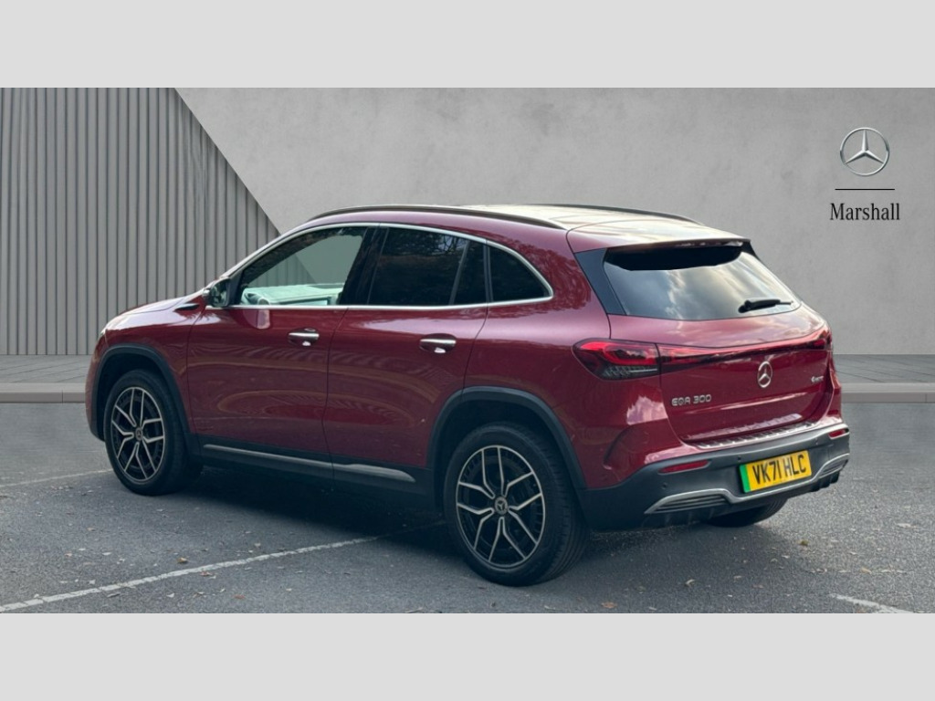 Mercedes-Benz Eqa EQA 300 4M 168kW AMG Line Premium 66.5kWh 5dr Auto Acoustic ambient protection, DYNAMIC SELECT with a choice of driving modes (max range, ECO, comfort and sport), Easy-pack tailgate, EQ navigation services - map (range display), display charging stations, programming of charging settings and pre entry climate control, Hard-disk navigation, Mercedes Benz emergency call system, Mercedes me connect, Service indicator, Smartphone integration with Apple CarPlay and Android auto, Trip computer, Wireless charging system for mobile devices, 100KW DC onboard charger, 11KW onboard charger, Charging cable for domestic plug socket, Type G (Mode 2) 5m, Charging cable for wall box and public charging station - Type 2(mode 3) 5m, Combined charging system CCS-2 connector, Comfort suspension, Advanced sound system with 10 speakers and a total system output of 225 watts, DAB Digital radio, MBUX multimedia system with 10" Digital instrument cluster and 10" media display with touchscreen, 3rd brake light, AMG Line bodystyling including AMG front apron with integrated air curtain and AMG rear apron with diffusor optics, Black panel radiator grille with twin blade design in chrome, Body colour bumpers, Daytime running lights, Electric front windows, Electric rear windows, Electrically operated panoramic glass sunroof, Front and rear LED light band, Front fog lights, LED High performance headlamps with adaptive highbeam assist, Polished aluminium roof rails, Privacy glass - heat insulating dark tinted glass, Rain sensor windscreen wipers, Rear wing door, Rear wiper, Surround lighting with projection of brand logo, 3 seat bench in 2nd row, 3 spoke AMG multifunction sports flat bottom steering wheel in nappa leather with galvanised shift paddles, 40:20:40 split folding rear seats, Ambient lighting with choice of 64 colour settings, AMG brushed stainless steel sports pedals with aluminium rubber studs, AMG sports seats, Artico man-made leather/ Dinamica microfiber upholstery, Double Cupholder, Front and rear head restraints, Heated front seats, Illuminated door sills with EQA lettering, Reach and rake adjustable steering column, Rear armrest with storage + through load, Roof lining - Black fabric, Single front passenger seat, Stowage compartment with retractable cover, THERMOTRONIC automatic climate control, Velour floor mats with AMG lettering, Interior light package - EQA, Keyless go comfort package - EQA, Mirror package - EQA, Parking package with reversing camera - EQA, Seat comfort pack - EQA, Stowage package - EQA, 3 rear seatbelts, 6 airbags - Driver, front passenger, curtain and side airbags, ABS, Child locks on rear doors, ESP, Isofix child seat anchor points on outer rear seats, Knee bags, Radar-based recuperation, Remote central locking, Urban guard vehicle protection, Light longitudinal grain aluminium trim painted, 19" AMG 5 twin spoke light alloy wheels, Summer tyres, Tirefit
