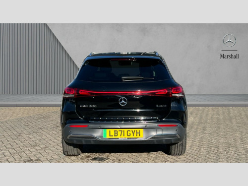 Mercedes-Benz Eqa EQA 300 4M 168kW AMG Line Premium 66.5kWh 5dr Auto Acoustic ambient protection, DYNAMIC SELECT with a choice of driving modes (max range, ECO, comfort and sport), Easy-pack tailgate, EQ navigation services - map (range display), display charging stations, programming of charging settings and pre entry climate control, Hard-disk navigation, Mercedes Benz emergency call system, Mercedes me connect, Service indicator, Smartphone integration with Apple CarPlay and Android auto, Trip computer, Wireless charging system for mobile devices, 100KW DC onboard charger, 11KW onboard charger, Charging cable for domestic plug socket, Type G (Mode 2) 5m, Charging cable for wall box and public charging station - Type 2(mode 3) 5m, Combined charging system CCS-2 connector, Comfort suspension, Advanced sound system with 10 speakers and a total system output of 225 watts, DAB Digital radio, MBUX multimedia system with 10" Digital instrument cluster and 10" media display with touchscreen, 3rd brake light, AMG Line bodystyling including AMG front apron with integrated air curtain and AMG rear apron with diffusor optics, Black panel radiator grille with twin blade design in chrome, Body colour bumpers, Daytime running lights, Electric front windows, Electric rear windows, Electrically operated panoramic glass sunroof, Front and rear LED light band, Front fog lights, LED High performance headlamps with adaptive highbeam assist, Polished aluminium roof rails, Privacy glass - heat insulating dark tinted glass, Rain sensor windscreen wipers, Rear wing door, Rear wiper, Surround lighting with projection of brand logo, 3 seat bench in 2nd row, 3 spoke AMG multifunction sports flat bottom steering wheel in nappa leather with galvanised shift paddles, 40:20:40 split folding rear seats, Ambient lighting with choice of 64 colour settings, AMG brushed stainless steel sports pedals with aluminium rubber studs, AMG sports seats, Artico man-made leather/ Dinamica microfiber upholstery, Double Cupholder, Front and rear head restraints, Heated front seats, Illuminated door sills with EQA lettering, Reach and rake adjustable steering column, Rear armrest with storage + through load, Roof lining - Black fabric, Single front passenger seat, Stowage compartment with retractable cover, THERMOTRONIC automatic climate control, Velour floor mats with AMG lettering, Interior light package - EQA, Keyless go comfort package - EQA, Mirror package - EQA, Parking package with reversing camera - EQA, Seat comfort pack - EQA, Stowage package - EQA, 3 rear seatbelts, 6 airbags - Driver, front passenger, curtain and side airbags, ABS, Child locks on rear doors, ESP, Isofix child seat anchor points on outer rear seats, Knee bags, Radar-based recuperation, Remote central locking, Urban guard vehicle protection, Light longitudinal grain aluminium trim painted, 19" AMG 5 twin spoke light alloy wheels, Summer tyres, Tirefit