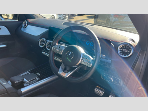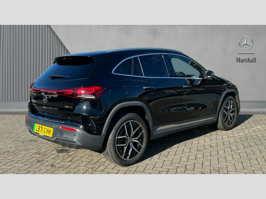 Mercedes-Benz Eqa EQA 300 4M 168kW AMG Line Premium 66.5kWh 5dr Auto Acoustic ambient protection, DYNAMIC SELECT with a choice of driving modes (max range, ECO, comfort and sport), Easy-pack tailgate, EQ navigation services - map (range display), display charging stations, programming of charging settings and pre entry climate control, Hard-disk navigation, Mercedes Benz emergency call system, Mercedes me connect, Service indicator, Smartphone integration with Apple CarPlay and Android auto, Trip computer, Wireless charging system for mobile devices, 100KW DC onboard charger, 11KW onboard charger, Charging cable for domestic plug socket, Type G (Mode 2) 5m, Charging cable for wall box and public charging station - Type 2(mode 3) 5m, Combined charging system CCS-2 connector, Comfort suspension, Advanced sound system with 10 speakers and a total system output of 225 watts, DAB Digital radio, MBUX multimedia system with 10" Digital instrument cluster and 10" media display with touchscreen, 3rd brake light, AMG Line bodystyling including AMG front apron with integrated air curtain and AMG rear apron with diffusor optics, Black panel radiator grille with twin blade design in chrome, Body colour bumpers, Daytime running lights, Electric front windows, Electric rear windows, Electrically operated panoramic glass sunroof, Front and rear LED light band, Front fog lights, LED High performance headlamps with adaptive highbeam assist, Polished aluminium roof rails, Privacy glass - heat insulating dark tinted glass, Rain sensor windscreen wipers, Rear wing door, Rear wiper, Surround lighting with projection of brand logo, 3 seat bench in 2nd row, 3 spoke AMG multifunction sports flat bottom steering wheel in nappa leather with galvanised shift paddles, 40:20:40 split folding rear seats, Ambient lighting with choice of 64 colour settings, AMG brushed stainless steel sports pedals with aluminium rubber studs, AMG sports seats, Artico man-made leather/ Dinamica microfiber upholstery, Double Cupholder, Front and rear head restraints, Heated front seats, Illuminated door sills with EQA lettering, Reach and rake adjustable steering column, Rear armrest with storage + through load, Roof lining - Black fabric, Single front passenger seat, Stowage compartment with retractable cover, THERMOTRONIC automatic climate control, Velour floor mats with AMG lettering, Interior light package - EQA, Keyless go comfort package - EQA, Mirror package - EQA, Parking package with reversing camera - EQA, Seat comfort pack - EQA, Stowage package - EQA, 3 rear seatbelts, 6 airbags - Driver, front passenger, curtain and side airbags, ABS, Child locks on rear doors, ESP, Isofix child seat anchor points on outer rear seats, Knee bags, Radar-based recuperation, Remote central locking, Urban guard vehicle protection, Light longitudinal grain aluminium trim painted, 19" AMG 5 twin spoke light alloy wheels, Summer tyres, Tirefit