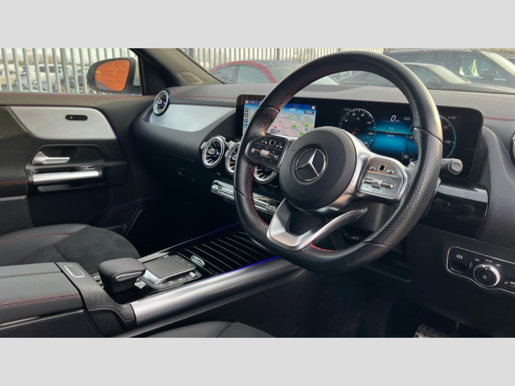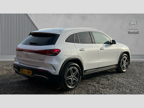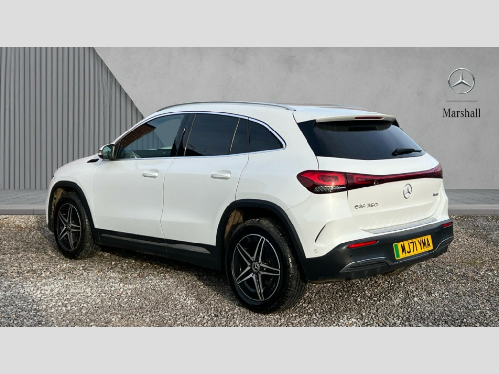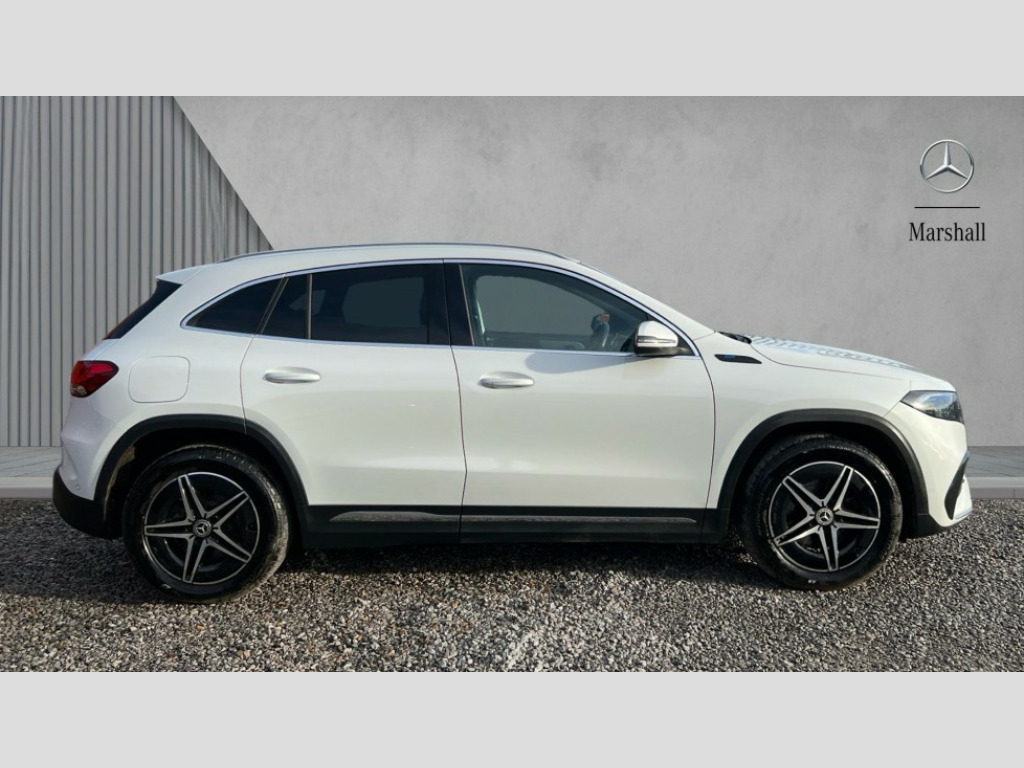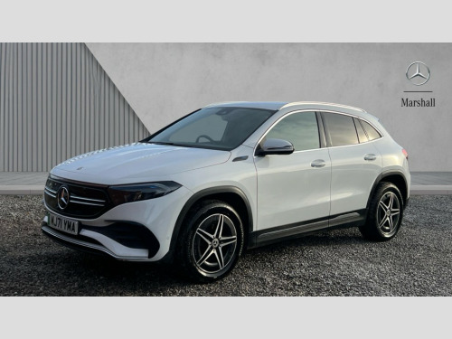 Mercedes-Benz Eqa EQA 350 4Matic 215kW AMG Line 66.5kWh 5dr Auto Acoustic ambient protection, DYNAMIC SELECT with a choice of driving modes (max range, ECO, comfort and sport), Easy-pack tailgate, EQ navigation services - map (range display), display charging stations, programming of charging settings and pre entry climate control, Hard-disk navigation, Mercedes Benz emergency call system, Mercedes me connect, Service indicator, Smartphone integration with Apple CarPlay and Android auto, Trip computer, 100KW DC onboard charger, 11KW onboard charger, Charging cable for domestic plug socket, Type G (Mode 2) 5m, Charging cable for wall box and public charging station - Type 2(mode 3) 5m, Combined charging system CCS-2 connector, Comfort suspension, DAB Digital radio, MBUX multimedia system with 10" Digital instrument cluster and 10" media display with touchscreen, Mercedes benz sound system, AMG Line bodystyling including AMG front apron with integrated air curtain and AMG rear apron with diffusor optics, Auto dimming interior mirror, Black panel radiator grille with twin blade design in chrome, Body colour bumpers, Electric front windows, Electric rear windows, Front and rear LED light band, Front fog lights, LED High performance headlamps with adaptive highbeam assist, Polished aluminium roof rails, Privacy glass - heat insulating dark tinted glass, Rain sensor windscreen wipers, Rear wiper, Surround lighting with projection of brand logo, 3 spoke AMG multifunction sports flat bottom steering wheel in nappa leather with galvanised shift paddles, 40:20:40 split folding rear seats, Ambient lighting with choice of 64 colour settings, AMG brushed stainless steel sports pedals with aluminium rubber studs, AMG sports seats, Artico man-made leather/ Dinamica microfiber upholstery, Double Cupholder, Front and rear head restraints, Heated front seats, Illuminated door sills with EQA lettering, Reach and rake adjustable steering column, Rear armrest with storage + through load, Roof lining - Black fabric, Stowage compartment with retractable cover, THERMOTRONIC automatic climate control, Velour floor mats with AMG lettering, Interior light package - EQA, Mirror package - EQA, Parking package with reversing camera - EQA, Seat comfort pack - EQA, Stowage package - EQA, 3 rear seatbelts, 6 airbags - Driver, front passenger, curtain and side airbags, ABS, ESP, Isofix child seat anchor points on outer rear seats, Knee bags, Radar-based recuperation, Remote central locking, Urban guard vehicle protection, Light longitudinal grain aluminium trim painted, 18" AMG 5 spoke light alloy wheels, Summer tyres, Tirefit