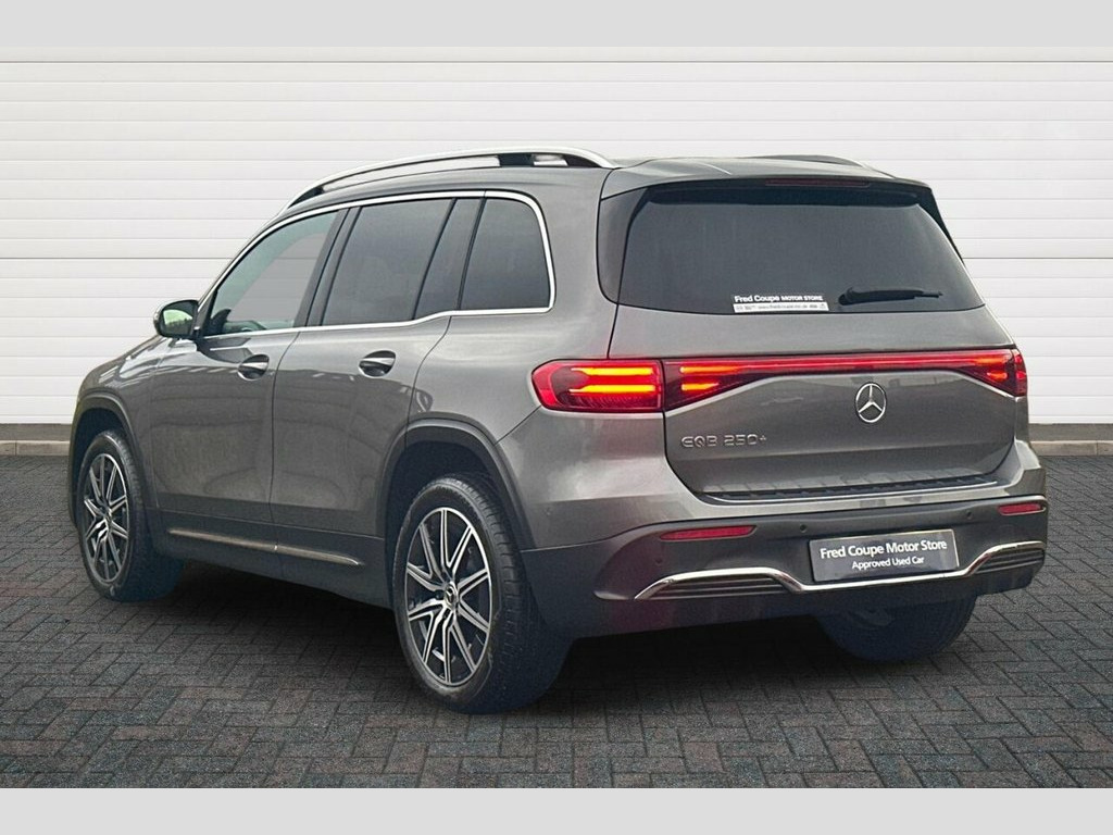 Don't miss this stunning example of this sought after MERCEDES-BENZ EQB EQB 250+ 70.5kWh AMG Line (Executive) SUV 5dr Electric Auto (190 ps) finished in Grey metallic with a charcoal leather/ cloth interior. This 2024 Mercedes-Benz EQB 250+ AMG Line Executive boasts exceptionally low mileage for its age, having covered just 6700 miles. As a 100% all electric vehicle, it offers a substantial battery total capacity of 78 kWh, providing a maximum range of 300 miles when new. This seven seat model, presented in the sporty AMG Line trim, also features THERMATIC automatic climate control, smartphone integration with both Android Auto and Apple CarPlay, and LED high performance headlamps with adaptive highbeam assist. Further enhancing your driving experience are the Blind Spot Assist system and the premium Mercedes-Benz sound system. The EQB 250+ AMG Line Executive stands out with its impressive 300 mile maximum range from new, indicating excellent efficiency for an electric vehicle of its kind. Charging is convenient, with a full charge at home using a 7kW charger taking approximately 11 hours and 56 minutes, while rapid public charging can take you from empty to 80% in just 36 minutes. You will also appreciate the generous boot space, making it a practical choice for families and those needing extra room for luggage or shopping. 100kW DC On-Board Charger, 11kW On-Board Charger, 19in Alloy Wheels - AMG 10-Spoke - Light, ABS - Anti-Lock Braking System, AMG Line Bodystyling, Acoustic Ambient Protection, Active Brake Assist, Active Lane Keeping Assist, Active Speed Limit Assist, Airbag - Driver, Airbag - Passenger, Airbags - Kneebag, Ambient Lighting, Black Panel Radiator Shell and Mercedes-, Blind Spot Assist, CCS-2 Connector - DC Charging with Combi, Charging Cable - Type 2 - Mode 3, Charging System - AC Charging System 11k, Charging System - DC Charging System Rat, Comfort Suspension, Cruise Control, Digital Radio, Door Sills - Illuminated with 'EQB&, Double Cupholder, Dynamic Select, EASY-PACK Electric Tailgate