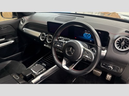 Mercedes-Benz Eqb EQB 300 4M 168kW AMG Line Premium 66.5kWh 5dr Auto Acoustic ambient protection, Active lane keeping assist, Active speed limit assist, Cruise control, DYNAMIC SELECT with a choice of driving modes (max range, ECO, comfort and sport), Easy-pack tailgate, EQ nav services - map(range dis),dis charging stations,program of charging set/pre entry climate control incl remote retrival of charging status/range, Hard-disk navigation, MBUX augmented reality for navigation, Mercedes Benz emergency call system, Mercedes me connect, PAS, Service indicator, Smartphone integration, Trip computer, Wireless charging system for mobile devices, 100KW DC onboard charger, 11KW onboard charger, Charging cable for wall box and public charging station - Type 2(mode 3) 5m, Combined charging system CCS-2 connector, Comfort suspension, Advanced sound system with 10 speakers and a total system output of 225 watts, DAB Digital radio, MBUX multimedia system with widescreen cockpit (2X10" displays with touchpad), Aluminium rubber studs, AMG Line bodystyling including AMG front apron with integrated air curtain and AMG rear apron with diffusor optics, Black panel radiator grille with twin blade design in chrome, Body colour bumpers, Electric adjustable door mirrors, Electric front windows, Electric rear windows, Electrically operated panoramic glass sunroof, Front and rear LED light band, Front fog lights, Heat insulating dark tinted glass, LED daytime running lights, LED High performance headlamps with adaptive highbeam assist, LED third brake light, Polished aluminium roof rails, Rain sensor windscreen wipers, Rear side wing doors, Rear wiper, Surround lighting with projection of brand logo, 2 Individual seats in 3rd row, 3 seat bench in 2nd row, 3 spoke multifunction sports flat bottom steering wheel in nappa leather with galvanised shift paddles, 40:20:40 split folding rear seats, Ambient lighting with choice of 64 colour settings, ARTICO man-made leather / MICROCUT microfibre upholstery, Double Cupholder, Front and rear head restraints, Heated front seats, Illuminated door sills with EQB lettering, Reach and rake adjustable steering column, Rear armrest with storage + through load, Roof lining - Black fabric, Single front passenger seat, Sports seats, Stainless steel sports pedals, Stowage compartment with retractable cover, THERMOTRONIC automatic climate control, Velour floor mats with AMG lettering, Interior light package - EQB, Keyless go comfort package - EQB, Mirror package - EQB, Parking package with reversing camera - EQB, Seat comfort pack - EQB, Stowage package - EQB, 3 rear seatbelts, 6 airbags - Driver, front passenger, curtain and side airbags, ABS, Active brake assist, Electric child locks, ESP, Isofix child seat anchor points on outer rear seats, Knee bags, Radar-based recuperation, Guard 360 degree vehicle protection, Remote central locking, Black open pore linden wood trim, 19" AMG 5 twin spoke light alloy wheels, Summer tyres, Tirefit