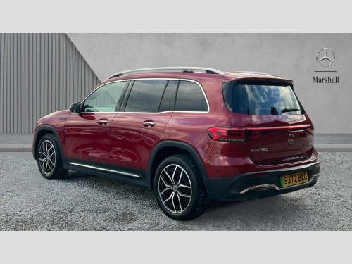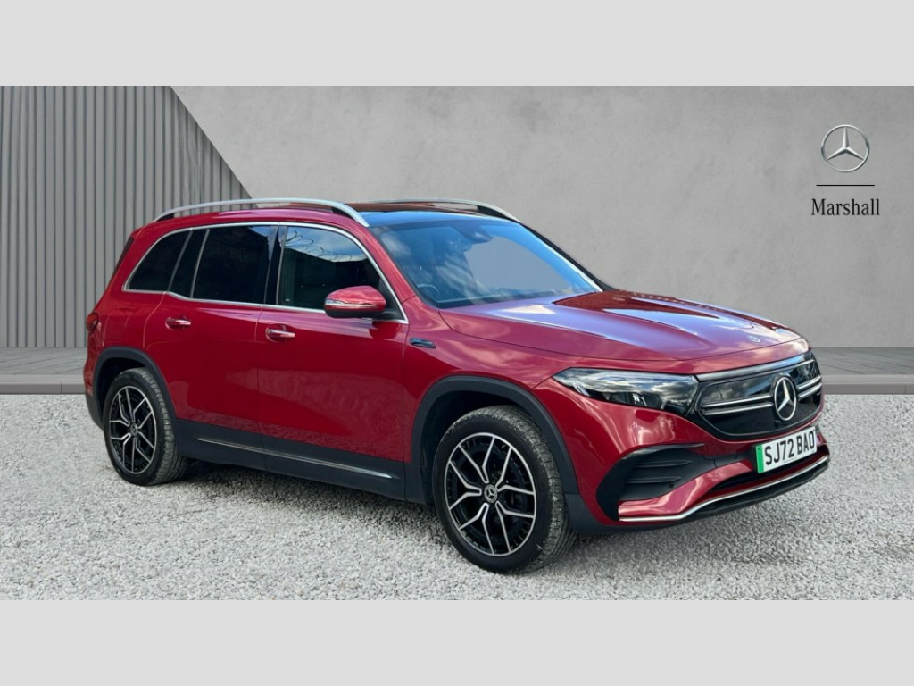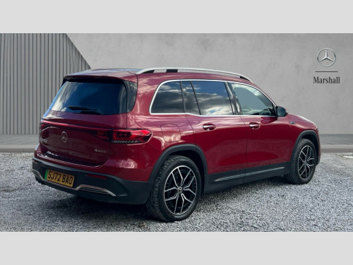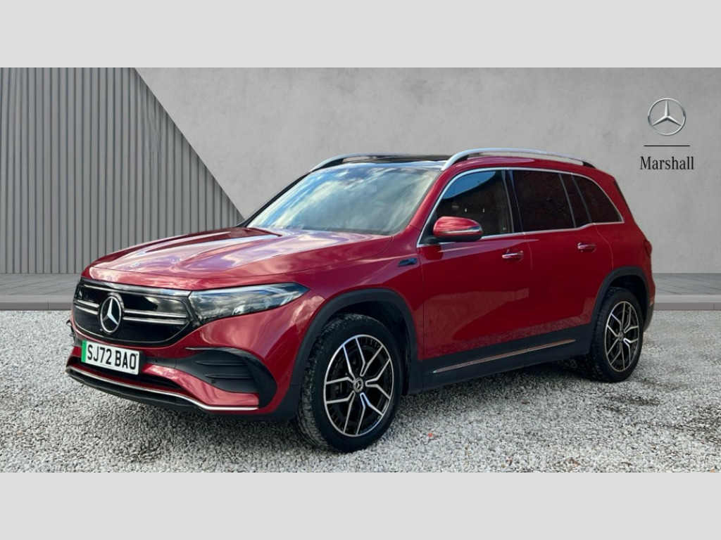 Mercedes-Benz Eqb EQB 350 4M 215kW AMG Line Premium 66.5kWh 5dr Auto Acoustic ambient protection, Active lane keeping assist, Active speed limit assist, Cruise control, DYNAMIC SELECT with a choice of driving modes (max range, ECO, comfort and sport), Easy-pack tailgate, EQ nav services - map(range dis),dis charging stations,program of charging set/pre entry climate control incl remote retrival of charging status/range, Hard-disk navigation, Mercedes Benz emergency call system, Mercedes me connect, PAS, Service indicator, Smartphone integration, Trip computer, Wireless charging system for mobile devices, 100KW DC onboard charger, 11KW onboard charger, Charging cable for wall box and public charging station - Type 2(mode 3) 5m, Combined charging system CCS-2 connector, Comfort suspension, Advanced sound system with 10 speakers and a total system output of 225 watts, DAB Digital radio, MBUX multimedia system with widescreen cockpit (2X10" displays with touchpad), Aluminium rubber studs, AMG Line bodystyling including AMG front apron with integrated air curtain and AMG rear apron with diffusor optics, Black panel radiator grille with twin blade design in chrome, Body colour bumpers, Electric adjustable door mirrors, Electric front windows, Electric rear windows, Electrically operated panoramic glass sunroof, Front and rear LED light band, Front fog lights, Heat insulating dark tinted glass, LED daytime running lights, LED High performance headlamps with adaptive highbeam assist, LED third brake light, Polished aluminium roof rails, Rain sensor windscreen wipers, Rear side wing doors, Rear wiper, Surround lighting with projection of brand logo, 2 Individual seats in 3rd row, 3 spoke multifunction sports flat bottom steering wheel in nappa leather with galvanised shift paddles, 40:20:40 split folding rear seats, Ambient lighting with choice of 64 colour settings, Artico man-made leather/ Dinamica microfiber upholstery, Double Cupholder, Front and rear head restraints, Heated front seats, Illuminated door sills with EQB lettering, Reach and rake adjustable steering column, Rear armrest with storage + through load, Roof lining - Black fabric, Single front passenger seat, Sports seats, Stainless steel sports pedals, Stowage compartment with retractable cover, THERMOTRONIC automatic climate control, Velour floor mats with AMG lettering, Interior light package - EQB, Keyless go comfort package - EQB, Mirror package - EQB, Parking package with reversing camera - EQB, Seat comfort pack - EQB, Stowage package - EQB, 3 rear seatbelts, 6 airbags - Driver, front passenger, curtain and side airbags, ABS, Active brake assist, Electric child locks, ESP, Isofix child seat anchor points on outer rear seats, Knee bags, Radar-based recuperation, Remote central locking, Urban guard, Black open pore linden wood trim, 19" AMG 5 twin spoke light alloy wheels, Summer tyres, Tirefit