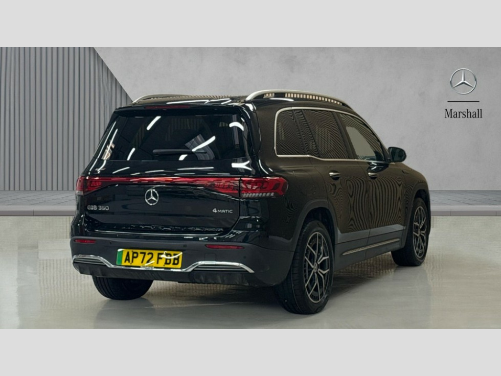 Mercedes-Benz Eqb EQB 350 4M 215kW AMG Line Premium 66.5kWh 5dr Auto Acoustic ambient protection, Active lane keeping assist, Active speed limit assist, Cruise control, DYNAMIC SELECT with a choice of driving modes (max range, ECO, comfort and sport), Easy-pack tailgate, EQ nav services - map(range dis),dis charging stations,program of charging set/pre entry climate control incl remote retrival of charging status/range, Hard-disk navigation, MBUX augmented reality for navigation, Mercedes Benz emergency call system, Mercedes me connect, PAS, Service indicator, Smartphone integration, Trip computer, Wireless charging system for mobile devices, 100KW DC onboard charger, 11KW onboard charger, Charging cable for wall box and public charging station - Type 2(mode 3) 5m, Combined charging system CCS-2 connector, Comfort suspension, Advanced sound system with 10 speakers and a total system output of 225 watts, DAB Digital radio, MBUX multimedia system with widescreen cockpit (2X10" displays with touchpad), Aluminium rubber studs, AMG Line bodystyling including AMG front apron with integrated air curtain and AMG rear apron with diffusor optics, Black panel radiator grille with twin blade design in chrome, Body colour bumpers, Electric adjustable door mirrors, Electric front windows, Electric rear windows, Electrically operated panoramic glass sunroof, Front and rear LED light band, Front fog lights, Heat insulating dark tinted glass, LED daytime running lights, LED High performance headlamps with adaptive highbeam assist, LED third brake light, Polished aluminium roof rails, Rain sensor windscreen wipers, Rear side wing doors, Rear wiper, Surround lighting with projection of brand logo, 2 Individual seats in 3rd row, 3 seat bench in 2nd row, 3 spoke multifunction sports flat bottom steering wheel in nappa leather with galvanised shift paddles, 40:20:40 split folding rear seats, Ambient lighting with choice of 64 colour settings, ARTICO man-made leather / MICROCUT microfibre upholstery, Double Cupholder, Front and rear head restraints, Heated front seats, Illuminated door sills with EQB lettering, Reach and rake adjustable steering column, Rear armrest with storage + through load, Roof lining - Black fabric, Single front passenger seat, Sports seats, Stainless steel sports pedals, Stowage compartment with retractable cover, THERMOTRONIC automatic climate control, Velour floor mats with AMG lettering, Interior light package - EQB, Keyless go comfort package - EQB, Mirror package - EQB, Parking package with reversing camera - EQB, Seat comfort pack - EQB, Stowage package - EQB, 3 rear seatbelts, 6 airbags - Driver, front passenger, curtain and side airbags, ABS, Active brake assist, Electric child locks, ESP, Isofix child seat anchor points on outer rear seats, Knee bags, Radar-based recuperation, Guard 360 degree vehicle protection, Remote central locking, Black open pore linden wood trim, 19" AMG 5 twin spoke light alloy wheels, Summer tyres, Tirefit