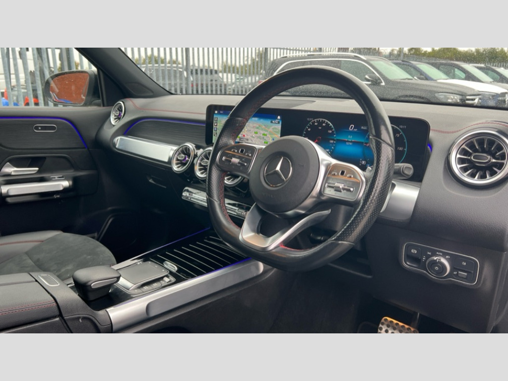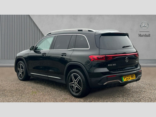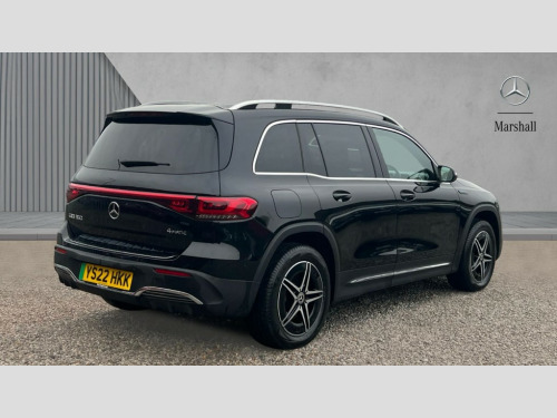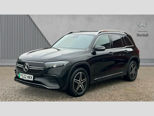 Mercedes-Benz Eqb EQB 350 4Matic 215kW AMG Line 66.5kWh 5dr Auto Acoustic ambient protection, DYNAMIC SELECT with a choice of driving modes (max range, ECO, comfort and sport), Easy-pack tailgate, EQ nav services - map(range dis),dis charging stations,program of charging set/pre entry climate control incl remote retrival of charging status/range, Hard-disk navigation, Mercedes Benz emergency call system, Mercedes me connect, PAS, Service indicator, Smartphone integration, Trip computer, 100KW DC onboard charger, 11KW onboard charger, Charging cable for wall box and public charging station - Type 2(mode 3) 5m, Combined charging system CCS-2 connector, Comfort suspension, DAB Digital radio, MBUX multimedia system with widescreen cockpit (2X10" displays with touchpad), Mercedes benz sound system, Aluminium rubber studs, AMG Line bodystyling including AMG front apron with integrated air curtain and AMG rear apron with diffusor optics, Black panel radiator grille with twin blade design in chrome, Body colour bumpers, Electric adjustable door mirrors, Electric front windows, Electric rear windows, Front and rear LED light band, Front fog lights, Heat insulating dark tinted glass, LED daytime running lights, LED High performance headlamps with adaptive highbeam assist, LED third brake light, Polished aluminium roof rails, Rain sensor windscreen wipers, Rear side wing doors, Rear wiper, Surround lighting with projection of brand logo, 2 Individual seats in 3rd row, 3 spoke multifunction sports flat bottom steering wheel in nappa leather with galvanised shift paddles, 40:20:40 split folding rear seats, Ambient lighting with choice of 64 colour settings, Artico man-made leather/ Dinamica microfiber upholstery, Double Cupholder, Front and rear head restraints, Heated front seats, Illuminated door sills with EQB lettering, Reach and rake adjustable steering column, Rear armrest with storage + through load, Roof lining - Black fabric, Single front passenger seat, Sports seats, Stainless steel sports pedals, Stowage compartment with retractable cover, THERMOTRONIC automatic climate control, Velour floor mats with AMG lettering, Interior light package - EQB, Mirror package - EQB, Parking package with reversing camera - EQB, Seat comfort pack - EQB, Stowage package - EQB, 3 rear seatbelts, 6 airbags - Driver, front passenger, curtain and side airbags, ABS, Electric child locks, ESP, Isofix child seat anchor points on outer rear seats, Knee bags, Radar-based recuperation, Remote central locking, Urban guard, Black open pore linden wood trim, 18" AMG 5 spoke light alloy wheels, Summer tyres, Tirefit