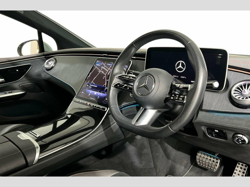 This 2023 Mercedes Benz EQE 300 AMG Line is a superb example, having had only one owner since new. As an all electric vehicle, it offers a remarkable battery maximum range of 376 miles, making it ideal for both daily commutes and longer journeys. The AMG Line trim enhances its sporty appeal with 19in AMG 5-twin-spoke alloy wheels, aerodynamically optimised and painted black with a high-sheen finish. Inside, you'll find comfort and convenience features such as THERMOTRONIC two-zone automatic climate control and ambient lighting, creating a pleasant cabin environment. For seamless connectivity, it includes wireless smartphone charging in the front, and the Parking Package with parking assist and a reversing camera ensures effortless manoeuvring. The EQE 300 AMG Line provides an exceptional electric driving experience. Its substantial 96 kWh battery capacity supports a full charging time at home of 14 hours 10 minutes using a 7kW charger, while the fastest public charging time from empty to 80% is an impressive 35 minutes. These charging capabilities, combined with its extensive 376 mile range, position this Mercedes Benz EQE as a highly practical and efficient choice, offering a superior ownership proposition compared to many other electric vehicles on the market. 11kW On-Board Charger, 12.3in Digital Instrument Cluster Displa, 12.8in Media Display, 170kW DC On-Board Charger, 19in Alloy Wheels - AMG 5-Twin-Spoke Des, 5G Communications Module, ABS - Anti-Lock Braking System, Active Traffic Sign Assist, Air Quality Package, Airbag - Driver, Airbags - Passenger, Ambient Lighting, AMG Brushed Stainless Steel Sports Pedal, AMG Exterior Styling, AMG Interior Styling, AMG Multifunction Sports Steering Wheel , ARTICO Man-Made Leather-MICROCUT Microfi, CCS-2 Connector - DC Charging with Combi, Charging Cable for Wallbox and Public Ch, Charging Socket, Comfort Suspension, Dashboard in Leather Look, Digital Radio, Dynamic Select, Electric Windows - Front, EQ Nav