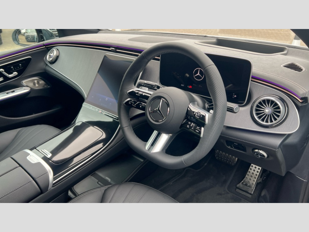 Mercedes-Benz Eqe EQE 350+ 215kW AMG Line Nt Ed Prem+ 96kWh 4dr Auto 5G Communications module, Active traffic sign assist, DYNAMIC SELECT with a choice of driving modes (ECO, Comfort, Sport and Individual), Electric charging flap, EQ navigation services - map (range display), display charging stations, programming of charging settings and pre entry climate control, Finger print scanner, Geofencing, Hard-disk navigation, Head up Display, MBUX Interior assistant, Mercedes Benz emergency call system, Mercedes me charge, Mercedes me connect, Mercedes me services, Multifunction telephony, Parked vehicle locator, PAS, Pre-installation for private car sharing, Remote parking function, Remote vehicle finder, Wireless smartphone integration, 11KW onboard charger, 170kW DC onboard charger, 96kWh battery, CCS-2 connector - DC charging with combined charging system and compatible with AC and DC, Charging cable for wall box and public charging station - Type 2(mode 3) 5m, Five recuperation levels, Burmester surround sound system with dolby atmos, DAB Digital radio, Digital TV tuner, MBUX multimedia system, ZYNC In car entertainment, AMG exterior styling, AMG front bumper in vehicle colour with A-wing in high gloss black and chrome trim, AMG performance rear boot spoiler, Body colour AMG rear apron with high-gloss black diffuser-look inserts, chrome double trim strip and flics at left/right air outlets in grained black, Daytime running lights, Digital HD LED headlight with projection functions and adaptive high beam plus, Frameless windows, Front and rear electric windows, Heated windscreen washer system, High-gloss chrome front splitter with flics and fins at the left and right air inlets in high-gloss black with chrome trim, LED High level third brake light, LED rear tail lamps with 3D helix design, Panoramic sliding sunroof with remote closing and opening including ventilation function, Privacy glass, Rear boot, Rear side wing doors, Seamless door handles, Side skirts in high-gloss black with chrome inserts, Star pattern radiator grille, Windows with remote closing and opening including ventilation function, 3 seat bench in 2nd row, Ambient lighting 64 colours with direct light lines, AMG brushed stainless steel sports pedals with aluminium rubber studs, AMG multifunction sports steering wheel in nappa leather, AMG sports seats, Heat pump, HEPA air filter, Illuminated door sills with Mercedes Benz lettering, Infrared quality sensor, Roof lining - Black fabric, Single front passenger seat, Split folding rear seats, Storage compartment under center console, THERMOTRONIC automatic climate control, Acoustic comfort pack - EQE, Air balance pack - EQE, Air quality pack - EQE, AMG interior design pack - EQE Edition Midnight, Driving assistance plus pack - EQE, Easy pack tailgate, Energizing pack plus - EQE, Interior light pack - EQE, Keyless go pack - EQE, Memory pack when chosen with headup display - EQE, Mirror pack - EQE, Night pack in black chrome - EQE, Parking pack - EQE, Refinement pack - EQE, USB package - EQE, ABS, Driver airbag, ESP, Front passenger airbag, Front passenger airbag deactivation, Front seatbelt pretensioners, Front seatbelt reminder, Rear door child safety locks, Seatbelt load limiter, Three point rear seat belts, Dashcam, Guard 360 degree vehicle protection plus, Remote door locking and unlocking, Speedfencing, Valet protect, Vehicle tracking, Dashboard and belt lines in space grey ARTICO man-made leather with NEOTEX grain and red topstitching, 21" AMG multi spoke gloss black light alloy wheels, Summer tyres, Tirefit