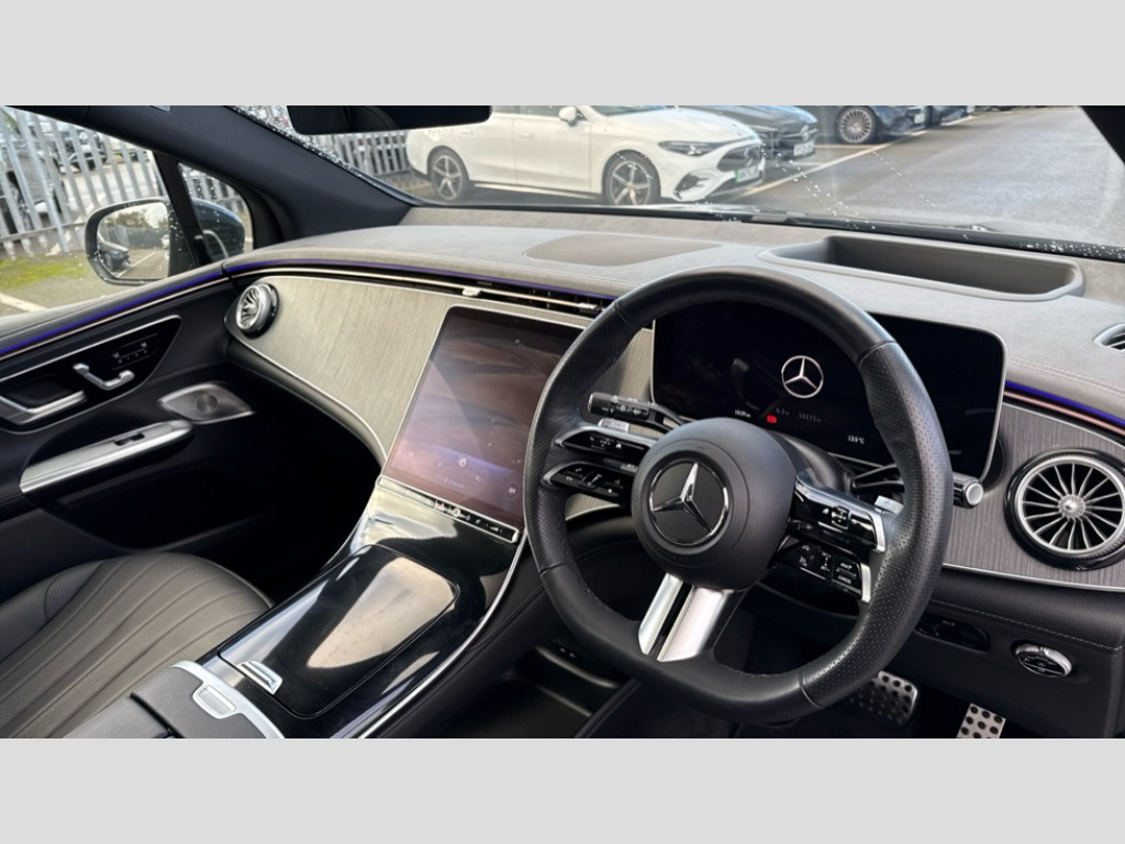 Mercedes-Benz Eqe 500 4M 300kW AMG Line Night Ed Prem+ 96kWh 5dr At 5G Communications module, Acoustic presence indicator, Active parking assist with PARKTRONIC, DYNAMIC SELECT with a choice of driving modes (ECO, Comfort, Sport and Individual), Electric charging flap, Evasive manoeuvre support, Extended MBUX functions, Fluorescent jacket for driver, Head up Display, MBUX augmented reality for navigation, MBUX navigation premium, Mercedes Benz emergency call system, Owners manual and service booklet in English, PAS, Pre-installation for digital key transfer, Pre-installation for remote and navigation services, Preinstallation for live traffic, Remote and charging services premium, Smartphone integration with Apple CarPlay/Android Auto, Tailgate, Traffic sign assist, Widescreen cockpit, Wireless charging system, AC charging up to 22kW, Adaptive damping system, Airmatic air suspension, CCS-2 connector - DC charging with combined charging system and compatible with AC and DC, Charging cable for wall box and public charging station - Type 2(mode 3) 5m, Burmester 3D surround sound system, DAB Digital radio, Digital TV tuner, MBUX multimedia system, Preinstallation for MBUX Entertainment Plus, Sound personalisation, Adaptive highbeam assist plus, AMG bodystyling, AMG Line exterior, AMG specific side skirts, Digital light LED headlights, Electric windows with one touch function, Front and rear electric windows, Heat insulating dark tinted glass, Heated door mirrors, Heated rear window, Illuminated running boards with rubber studs, LED daytime running lights, LED rear lights, LED third brake light, Panoramic sliding sunroof, Preinstallation for projection functions, Radiator grille with Mercedes benz star pattern, Rear side wing doors, Rear wash/wipe, Seamless door handles, Transparent Bonnet, 3 seat bench in 2nd row, Active ambient lighting, Ambient lighting with projection of brand logo, AMG floor mats, AMG line interior, Climatised front seats, Electrically adjustable front seats with memory function, Energizing air control plus, Flex Bottleholder, Front multi contour seats with massage function, HEPA air filter, Illuminated door sills panels with Mercedes-Benz lettering, Multifunction sports steering wheel in nappa leather, Rear head restraints, Seat heating Plus for front seats, Single front passenger seat, Split folding rear seat backrests, Storage compartment under center console, THERMOTRONIC 4 zone automatic climate control, Driving assistance plus pack - EQE, Easy pack load compartment cover, Easy pack tailgate, Hyperscreen Package - EQE, Integrated service pack - EQE, Keyless go comfort pack - EQE, Memory seat pack - EQE, Mirror pack - EQE, Night pack in black chrome - EQE, Parking pack - EQE, USB package plus - EQE, ABS, Centre airbag, Driver airbag, ESP, Front passenger airbag, Front passenger airbag deactivation, Front passenger seat occupancy sensor, Front seatbelt pretensioners, Front seatbelt reminder, Knee airbags, Rear door child safety locks, Seatbelt load limiter, Sidebags in rear, Three point rear seat belts, Tyre pressure monitor, Window airbags, Anti theft alarm system, Dashcam, Guard 360 degree vehicle protection plus, Hands free access, Identification Label under Windshield, Increased anti theft protection, Interior monitoring system, Centre console in anthracite open pore linestructure lime wood trim, Dashboard in anthracite linestructure lime wood trim, 22" AMG multi spoke Bi-colour alloy wheels, Noise reduced tyre with foam absorber, Summer tyres, TIREFIT with tyre inflation compressor