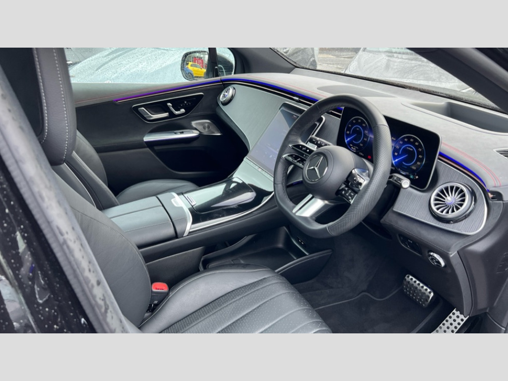 Mercedes-Benz Eqe EQE 500 4Matic 300kW AMG Line Prem+ 91kWh 5dr Auto 360 camera, Acoustic presence indicator, Evasive manoeuvre support, Fingerprint scanner, Head up Display, Intelligent parking pilot, Live traffic information, MBUX augmented reality for navigation, MBUX Interior assistant, MBUX navigation premium, Mercedes Benz emergency call system, PAS, Pre-installation for digital key transfer, Rear axle steering, Remote parking assist, Smartphone integration with Apple CarPlay/Android Auto, Tailgate, Traffic sign assist, Wireless charging in the front centre console, AC charging up to 22kW, Adaptive damping system, Airmatic air suspension, Charging cable for wall box and public charging station - Type 2(mode 3) 5m, DC charging up to 170kW, Burmester 3D surround sound system, DAB digital radio tuner, Sound personalisation, TV tuner, Adaptive highbeam assist plus, Aluminium look Illuminated running boards with rubber studs, AMG bodystyling, Automatically dimming rear view mirror, Digital light LED headlights with projection function, Electrically folding exterior mirrors, Exterior mirror - Ambient lighting with projection of brand logo, Front and rear electric windows, Heat insulating dark tinted glass, Heat insulating, noise insulating and infrared reflecting laminated glass, Heated door mirrors, Heated rear window, Heated windscreen, Heated windscreen washer system, LED daytime running lights, LED rear lights, LED third brake light, Panoramic sliding sunroof, Radiator grille with Mercedes-Benz pattern, Rear side wing doors, Rear wash/wipe, Surround Lighting with animated projection of the Mercedes Benz logo, Transparent Bonnet, 3 seat bench in 2nd row, 4 way lumbar support, Active ambient lighting, AMG floor mats, AMG line interior, AMG sports seats, Climatised front seats, Energizing air control plus, Front head restraints, Illuminated door sills panels with Mercedes-Benz lettering, Leather upholstery, Multifunction sports steering wheel in nappa leather, Partition net, Rear head restraints, Single front passenger seat, Split folding rear seat backrests, THERMOTRONIC 4 zone automatic climate control, Acoustic comfort pack - EQE, Driving assistance plus pack - EQE, Easy pack load compartment cover, Easy pack tailgate, Hyperscreen Package, Keyless go package - EQE, Memory pack - EQE, USB package plus - EQE, ABS, Centre airbag, Driver airbag, Driver knee airbag, ESP, Front passenger airbag, Front passenger airbag deactivation, Front seatbelt pretensioners, Front seatbelt reminder, Pre safe impulse side, Pre Safe system, Rear door child safety locks, Seatbelt load limiter, Sidebags in rear, Three point rear seat belts, Tyre pressure monitor, Window airbags, Anti theft alarm system, Dashcam, Guard 360 degree vehicle protection plus, Centre console in anthracite open pore lime wood, 22" AMG multi spoke light alloy wheels, TIREFIT with tyre inflation compressor
