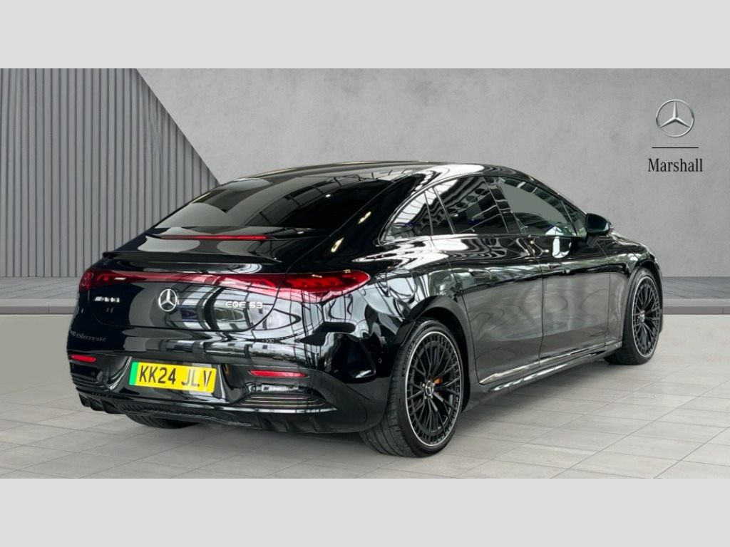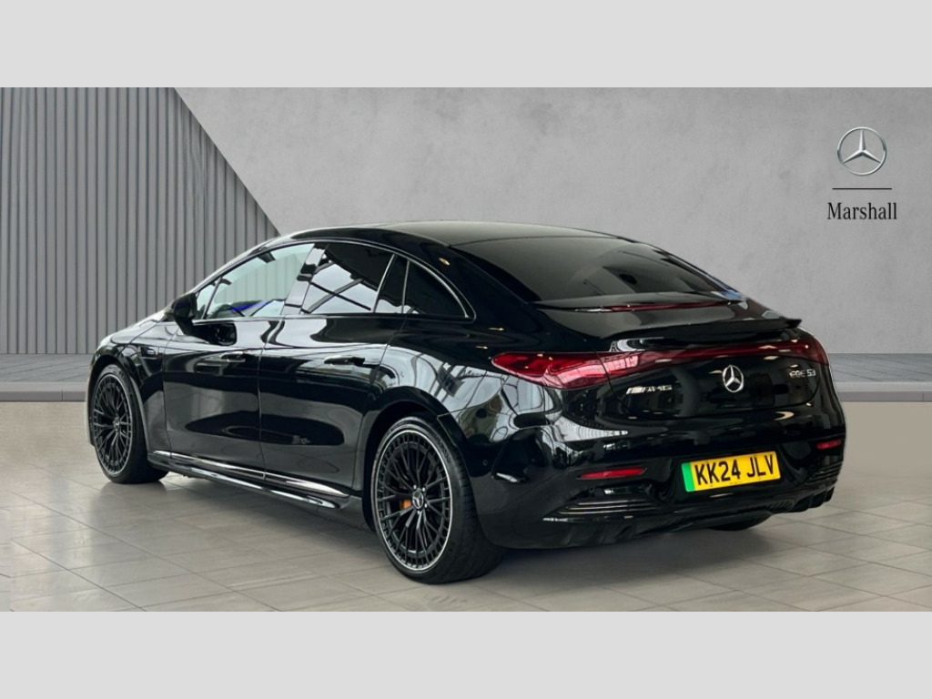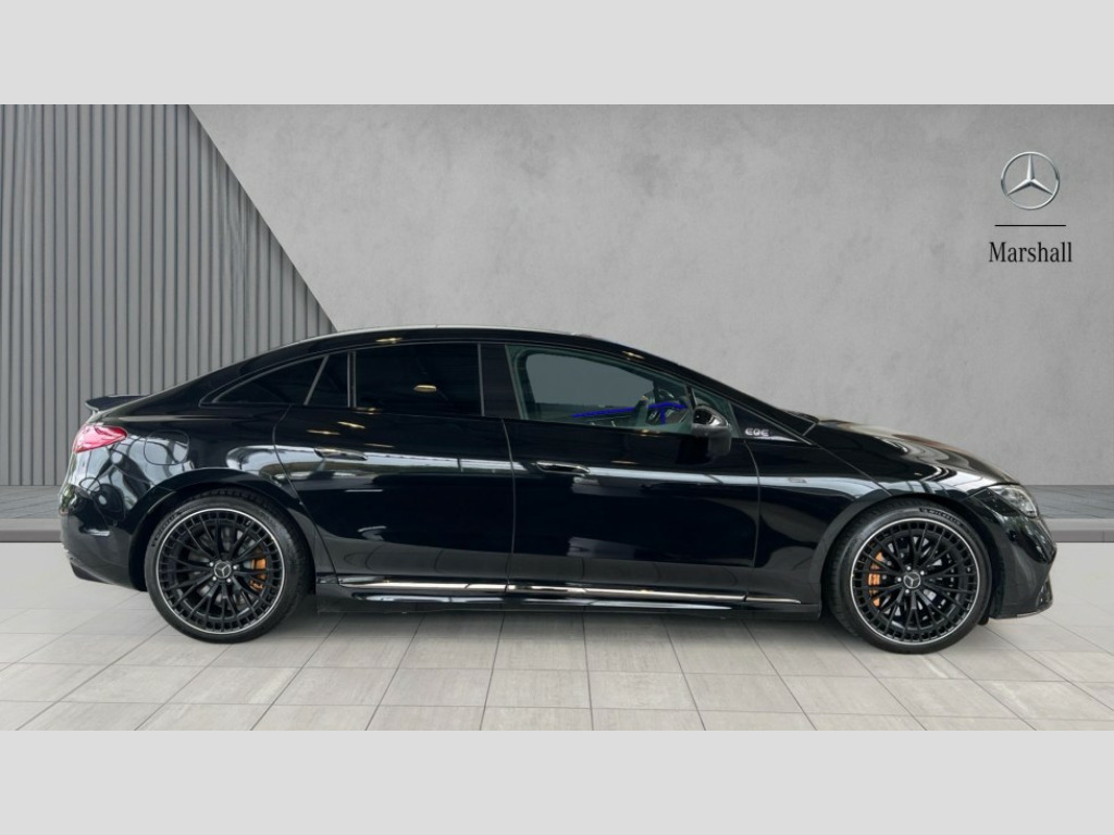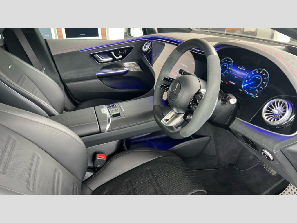 Mercedes-Benz Eqe E53 4Matic+ 460kW Edition Midnight 91kWh 4dr Auto Active traffic sign assist, AMG spoiler lip on the boot lid, DYNAMIC SELECT with a choice of driving modes (ECO, Comfort, Sport and Individual), EQ navigation services - map (range display), display charging stations, programming of charging settings and pre entry climate control, Finger print scanner, Front wireless smartphone charging, Geofencing, Hard-disk navigation, Head up Display, MBUX Interior assistant, Mercedes Benz emergency call system, Mercedes me charge, Mercedes me connect, Mercedes me services, Parked vehicle locator, PAS, Pre-installation for private car sharing, Remote parking function, Remote retrieval of vehicle status, Remote vehicle finder, Send2Car function, Smartphone integration, 170kW DC onboard charger, 22kW onboard charger, 90.6kWh battery, Airmatic air suspension, Charging cable for wall box and public charging station - Type 2(mode 3) 5m, Combined charging system CCS-2 connector, Five recuperation levels, Rear wheel steering 4.5 degrees, Burmester surround sound system with dolby atmos, DAB Digital radio, MBUX multimedia system, ZYNC In car entertainment, Acoustic privacy glass, AMG bonnet crest, AMG exterior styling, AMG front bumper in vehicle colour with A-wing in high gloss black and chrome trim, Daytime running lights, Digital HD LED headlight with ultra range high beam, cornering, and enhanced fog light, Front and rear electric windows, Heat insulating, dark tinted noise insulating and infrared reflecting laminated glass, Heated windscreen washer system, LED High level third brake light, Panoramic sliding sunroof with remote closing and opening including ventilation function, Rear boot, Rear side wing doors, Side skirts in high-gloss black with chrome inserts, Windows with remote closing and opening including ventilation function, 3 seat bench in 2nd row, Adaptive ambient lighting in 64 static colours, AMG Nappa leather upholstery, AMG performance steering wheel in leather nappa/Mikrofaser MICROCUT, AMG sports seats, Climatised front seats, Front head restraints, Front multi contour seats with massage function, Heated rear seats, Infrared quality sensor, MICROCUT microfibre roof liner in black, Programming of auxiliary heater, Rear head restraints, Single front passenger seat, Split folding rear seats, Storage compartment under center console, THERMOTRONIC automatic climate control, Air quality pack - EQE, AMG interior design pack - EQE Edition Midnight, AMG Night pack - EQE, AMG Performance Pack - EQE, Driving assistance plus pack - EQE, Easy pack tailgate, Hyperscreen pack - EQE, Interior light pack - EQE, Keyless go pack - EQE, Memory pack when chosen with headup display - EQE, Mirror pack - EQE, Parking pack - EQE, USB package - EQE, ABS, Driver airbag, ESP, Front passenger airbag, Front passenger airbag deactivation, Front seatbelt pretensioners, Front seatbelt reminder, Gold brake calipers, Rear door child safety locks, Seatbelt load limiter, Three point rear seat belts, Remote door locking and unlocking, Speedfencing, Urban guard plus anti-theft protection hardware including Alarm and immobilizer, Valet protect, Vehicle tracking, Anthracite wood main trim, Dashboard in leather look, 21" AMG Y spoke light alloy wheels in black, Summer tyres, Tirefit