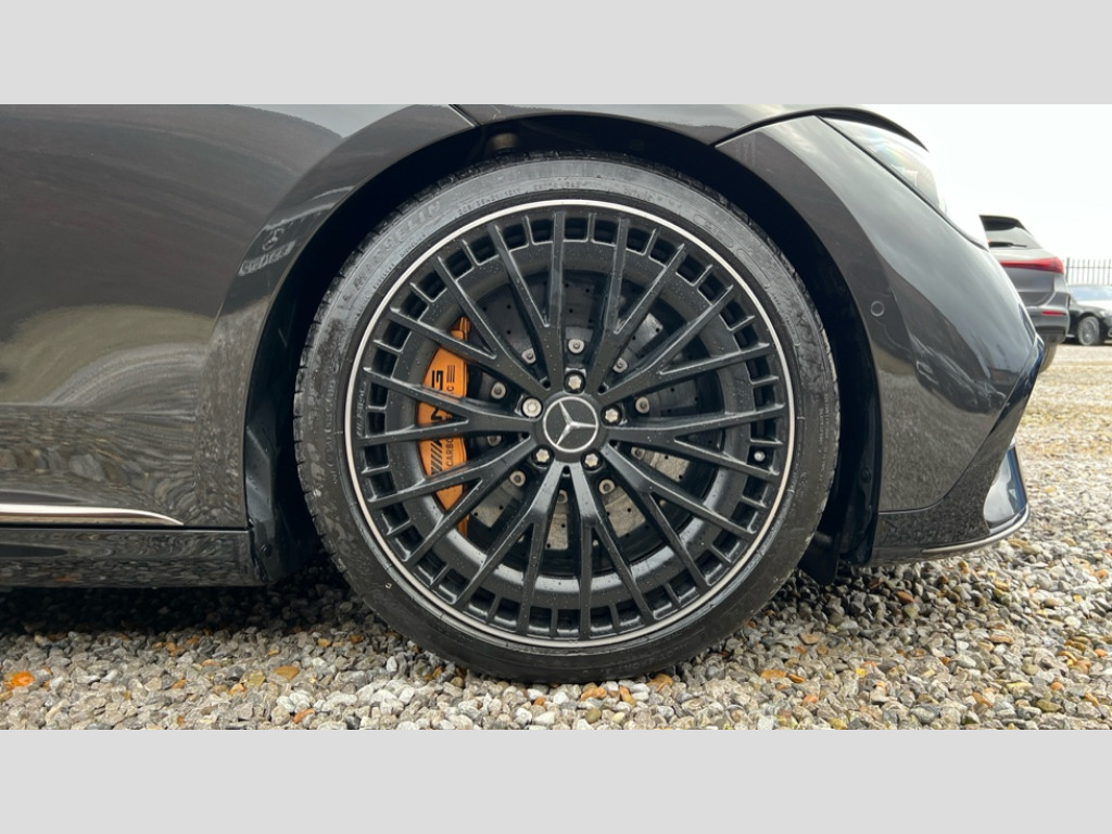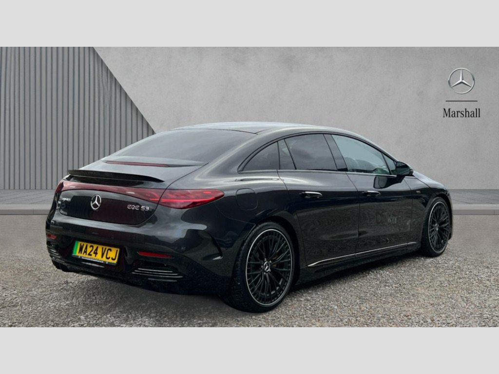 Mercedes-Benz Eqe E53 4Matic+ 460kW Edition Midnight 91kWh 4dr Auto Active traffic sign assist, AMG spoiler lip on the boot lid, DYNAMIC SELECT with a choice of driving modes (ECO, Comfort, Sport and Individual), EQ navigation services - map (range display), display charging stations, programming of charging settings and pre entry climate control, Finger print scanner, Front wireless smartphone charging, Geofencing, Hard-disk navigation, Head up Display, MBUX Interior assistant, Mercedes Benz emergency call system, Mercedes me charge, Mercedes me connect, Mercedes me services, Parked vehicle locator, PAS, Pre-installation for private car sharing, Remote parking function, Remote retrieval of vehicle status, Remote vehicle finder, Send2Car function, Smartphone integration, 170kW DC onboard charger, 22kW onboard charger, 90.6kWh battery, Airmatic air suspension, Charging cable for wall box and public charging station - Type 2(mode 3) 5m, Combined charging system CCS-2 connector, Five recuperation levels, Rear wheel steering 4.5 degrees, Burmester surround sound system with dolby atmos, DAB Digital radio, MBUX multimedia system, ZYNC In car entertainment, Acoustic privacy glass, AMG bonnet crest, AMG exterior styling, AMG front bumper in vehicle colour with A-wing in high gloss black and chrome trim, Daytime running lights, Digital HD LED headlight with ultra range high beam, cornering, and enhanced fog light, Front and rear electric windows, Heat insulating, dark tinted noise insulating and infrared reflecting laminated glass, Heated windscreen washer system, LED High level third brake light, Panoramic sliding sunroof with remote closing and opening including ventilation function, Rear boot, Rear side wing doors, Side skirts in high-gloss black with chrome inserts, Windows with remote closing and opening including ventilation function, 3 seat bench in 2nd row, Adaptive ambient lighting in 64 static colours, AMG Nappa leather upholstery, AMG performance steering wheel in leather nappa/Mikrofaser MICROCUT, AMG sports seats, Climatised front seats, Front head restraints, Front multi contour seats with massage function, Heated rear seats, Infrared quality sensor, MICROCUT microfibre roof liner in black, Programming of auxiliary heater, Rear head restraints, Single front passenger seat, Split folding rear seats, Storage compartment under center console, THERMOTRONIC automatic climate control, Air quality pack - EQE, AMG interior design pack - EQE Edition Midnight, AMG Night pack - EQE, AMG Performance Pack - EQE, Driving assistance plus pack - EQE, Easy pack tailgate, Hyperscreen pack - EQE, Interior light pack - EQE, Keyless go pack - EQE, Memory pack when chosen with headup display - EQE, Mirror pack - EQE, Parking pack - EQE, USB package - EQE, ABS, Driver airbag, ESP, Front passenger airbag, Front passenger airbag deactivation, Front seatbelt pretensioners, Front seatbelt reminder, Gold brake calipers, Rear door child safety locks, Seatbelt load limiter, Three point rear seat belts, Remote door locking and unlocking, Speedfencing, Urban guard plus anti-theft protection hardware including Alarm and immobilizer, Valet protect, Vehicle tracking, Anthracite wood main trim, Dashboard in leather look, 21" AMG Y spoke light alloy wheels in black, Summer tyres, Tirefit