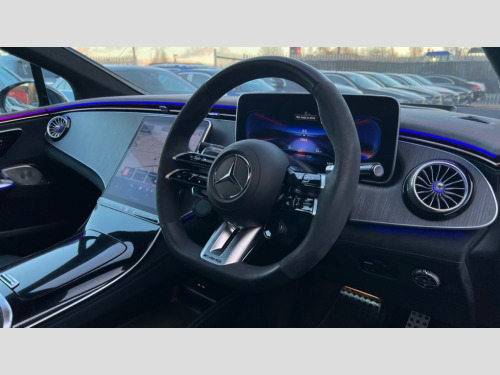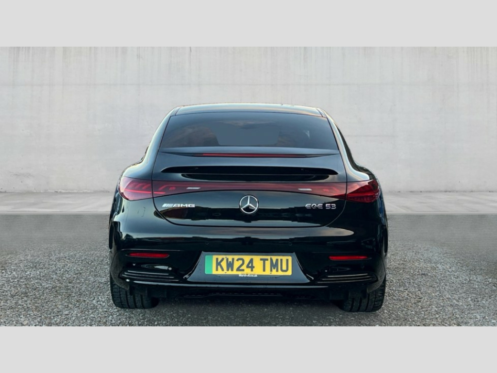 Mercedes-Benz Eqe E53 4Matic+ 460kW Night Edition 91kWh 4dr Auto Active traffic sign assist, AMG spoiler lip on the boot lid, DYNAMIC SELECT with a choice of driving modes (ECO, Comfort, Sport and Individual), EQ navigation services - map (range display), display charging stations, programming of charging settings and pre entry climate control, Finger print scanner, Front wireless smartphone charging, Geofencing, Hard-disk navigation, Head up Display, MBUX Interior assistant, Mercedes Benz emergency call system, Mercedes me charge, Mercedes me connect, Mercedes me services, Parked vehicle locator, PAS, Pre-installation for private car sharing, Remote parking function, Remote vehicle finder, Smartphone integration, 170kW DC onboard charger, 22kW onboard charger, 90.6kWh battery, Airmatic air suspension, Charging cable for wall box and public charging station - Type 2(mode 3) 5m, Combined charging system CCS-2 connector, Five recuperation levels, Rear wheel steering 4.5 degrees, Burmester surround sound system with dolby atmos, DAB Digital radio, MBUX multimedia system, ZYNC In car entertainment, Acoustic privacy glass, AMG bonnet crest, AMG exterior styling, AMG front bumper in vehicle colour with A-wing in high gloss black and chrome trim, Body colour AMG rear apron with high-gloss black diffuser-look inserts, chrome double trim strip and flics at left/right air outlets in grained black, Daytime running lights, Digital HD LED headlight with ultra range high beam, cornering, and enhanced fog light, Front and rear electric windows, Heat insulating, noise insulating and infrared reflecting laminated glass, Heated windscreen washer system, High-gloss chrome front splitter with flics and fins at the left and right air inlets in high-gloss black with chrome trim, LED High level third brake light, Panoramic sliding sunroof with remote closing and opening including ventilation function, Rear boot, Rear side wing doors, Side skirts in high-gloss black with chrome inserts, Windows with remote closing and opening including ventilation function, 3 seat bench in 2nd row, Adaptive ambient lighting in 64 static colours, AMG brushed stainless steel sports pedals with aluminium rubber studs, AMG Nappa leather upholstery, AMG performance steering wheel in leather nappa/Mikrofaser MICROCUT, AMG sports seats, Climatised front seats, Front head restraints, Front multi contour seats with massage function, Heated rear seats, HEPA air filter, Infrared quality sensor, MICROCUT microfibre roof liner in black, Rear head restraints, Single front passenger seat, Split folding rear seats, Storage compartment under center console, THERMOTRONIC automatic climate control, Air quality pack - EQE, AMG interior design pack - EQE, Driving assistance plus pack - EQE, Easy pack tailgate, Interior light pack - EQE, Keyless go pack - EQE, Memory pack when chosen with headup display - EQE, Mirror pack - EQE, Parking pack - EQE, USB package - EQE, ABS, Brake calipers in red, Driver airbag, ESP, Front passenger airbag, Front passenger airbag deactivation, Front seatbelt pretensioners, Front seatbelt reminder, Rear door child safety locks, Seatbelt load limiter, Three point rear seat belts, Remote door locking and unlocking, Speedfencing, Urban guard plus anti-theft protection hardware including Alarm and immobilizer, Valet protect, Vehicle tracking, Anthracite wood main trim, Dashboard and belt lines in space grey ARTICO man-made leather with NEOTEX grain and red topstitching, 21" AMG Y spoke light alloy wheels in black, Summer tyres, Tirefit
